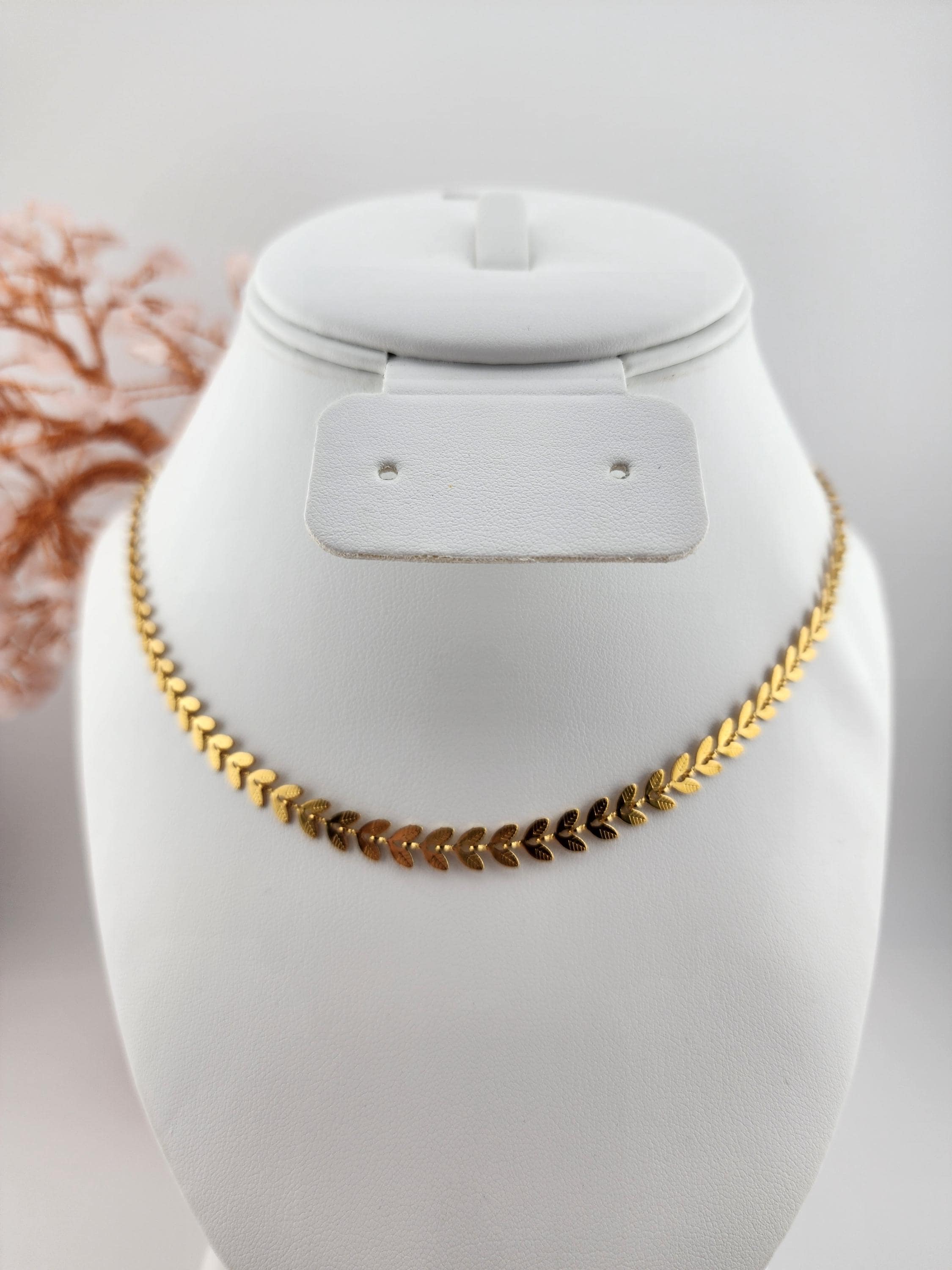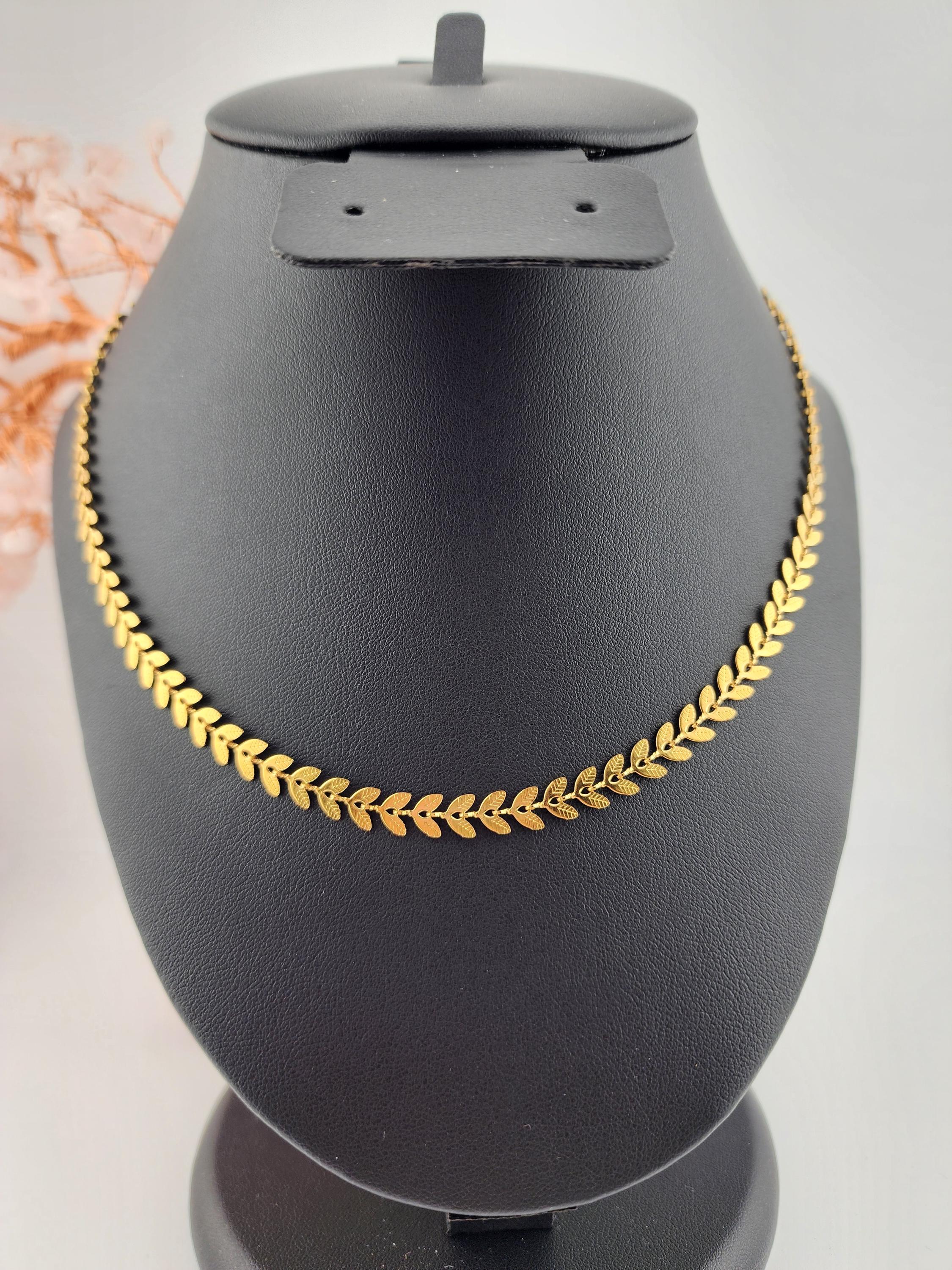 I made this little necklace using tarnish resistant 18k gold plated brass leaf-shape chain. It's so beautiful and unique! It is 19" long and may be altered upon request.