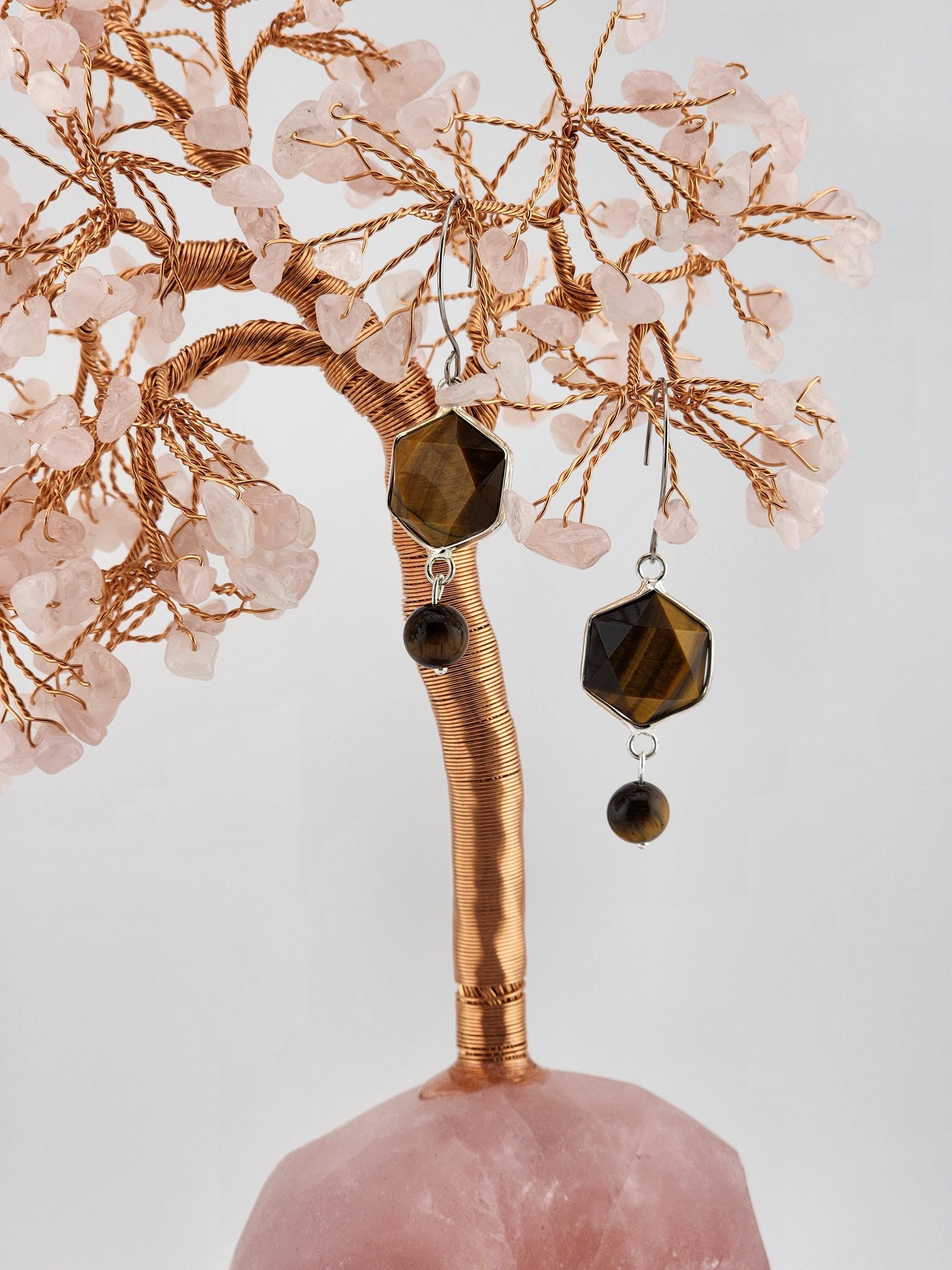 I made these earrings using silver, surgical steel, circle hooks and added amazing hexagonal shape Tiger's Eye stone charms and beads. Tiger's Eye is such a cool stone!
