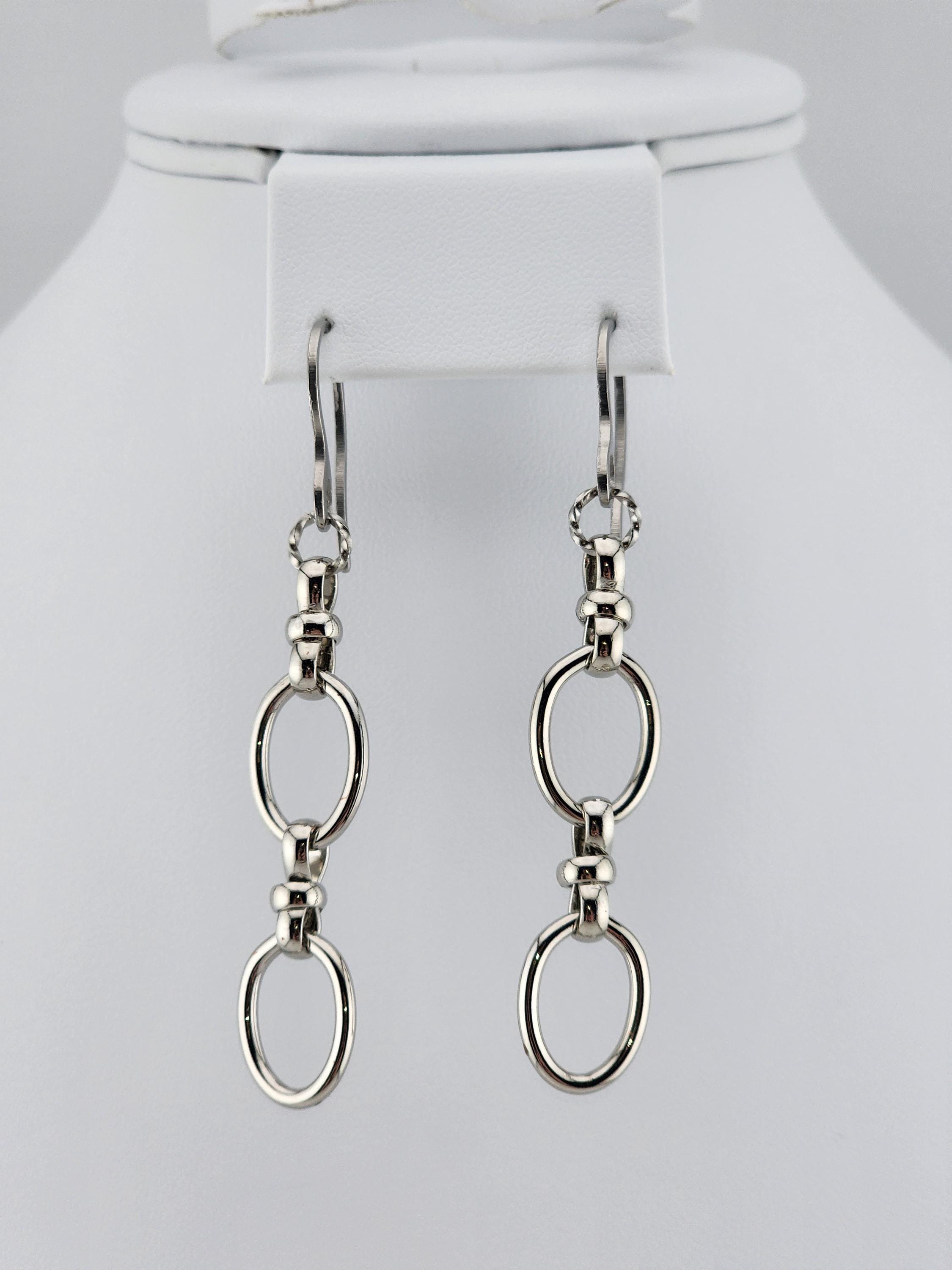 Handmade surgical steel hook earrings with white gold plated stainless steel oval rolo chain. They will go well with anything you wear & for any occasion. * Your purchase of these earrings will arrive in pretty gift packaging * Shipping is free within the U.S.
