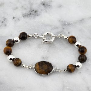 Handmade 7 & 1/4" Obsidian, Lava, Rhodochrosite & Pink Chalcedony beaded bracelet with an hexagonal shape Pink Thulite connector & a silver plated lobster clasp. I LOVE GEMSTONES! Length may be altered upon request. * Your purchase will arrive in pretty packaging * Shipping is free within the U.S.