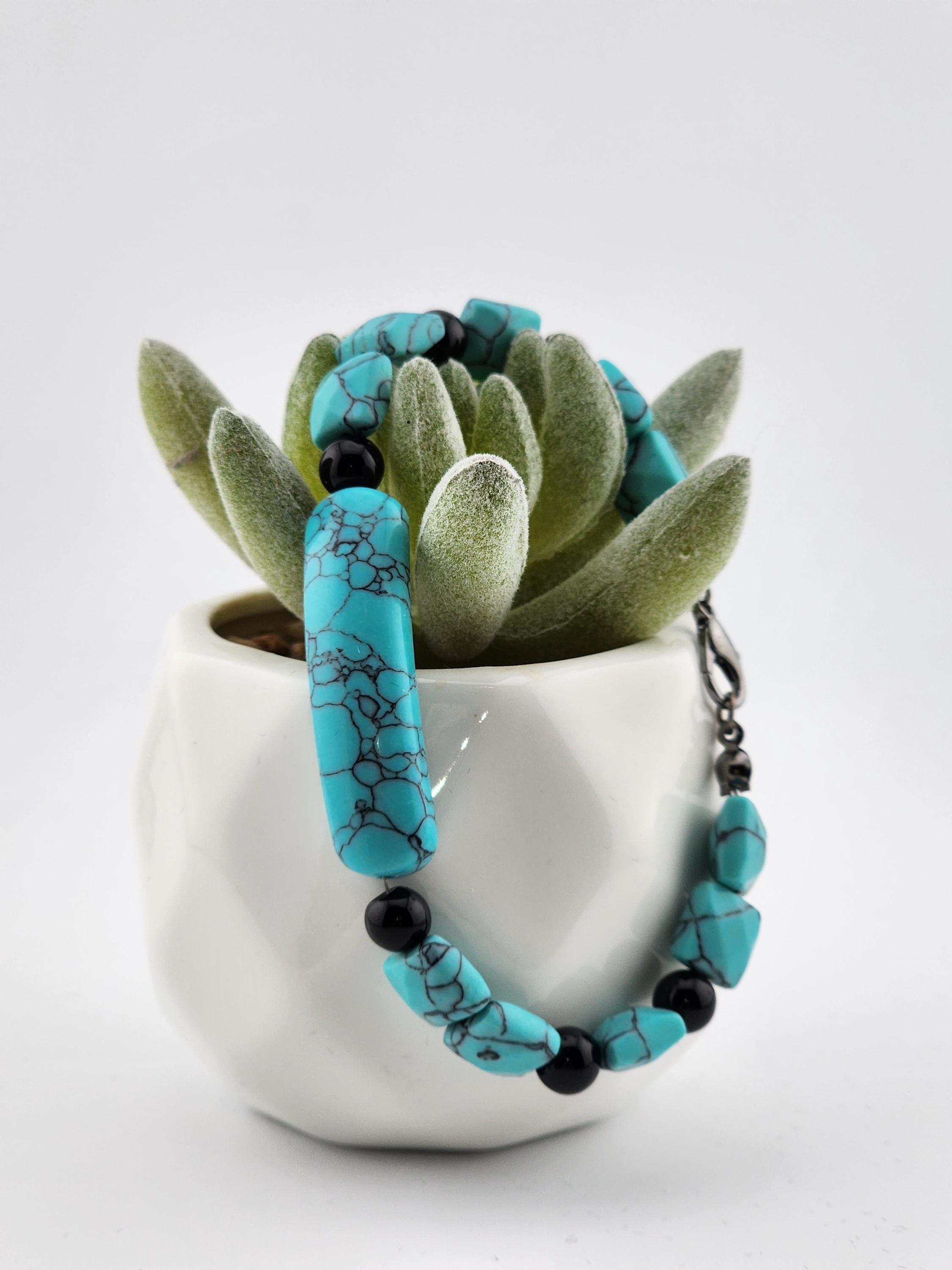 I made this bracelet using faceted square turquoise beads & round obsidian beads with a Sky blue turquoise connector. This bracelet is 7&1/4" long but may be altered upon request. * Your purchase will arrive in pretty packaging * Shipping is included
