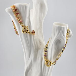 I made this beautiful natural gemstone bracelet using a Tiger's Eye bar connector, tarnish resistant 18k Gold filled metal beads, Tiger's Eye beads & Yellow Jade beads. It has an 18k Gold plated S-hook clasp & 24k Gold plated connecting rings. The length may be altered upon request. * Your purchase will arrive in pretty packaging * Shipping is included