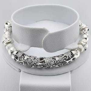 I used Silver plated Brass pattern disc posts and added two different kinds of Silver plated Brass pattern discs and wavy discs to create these dangle drop earrings.