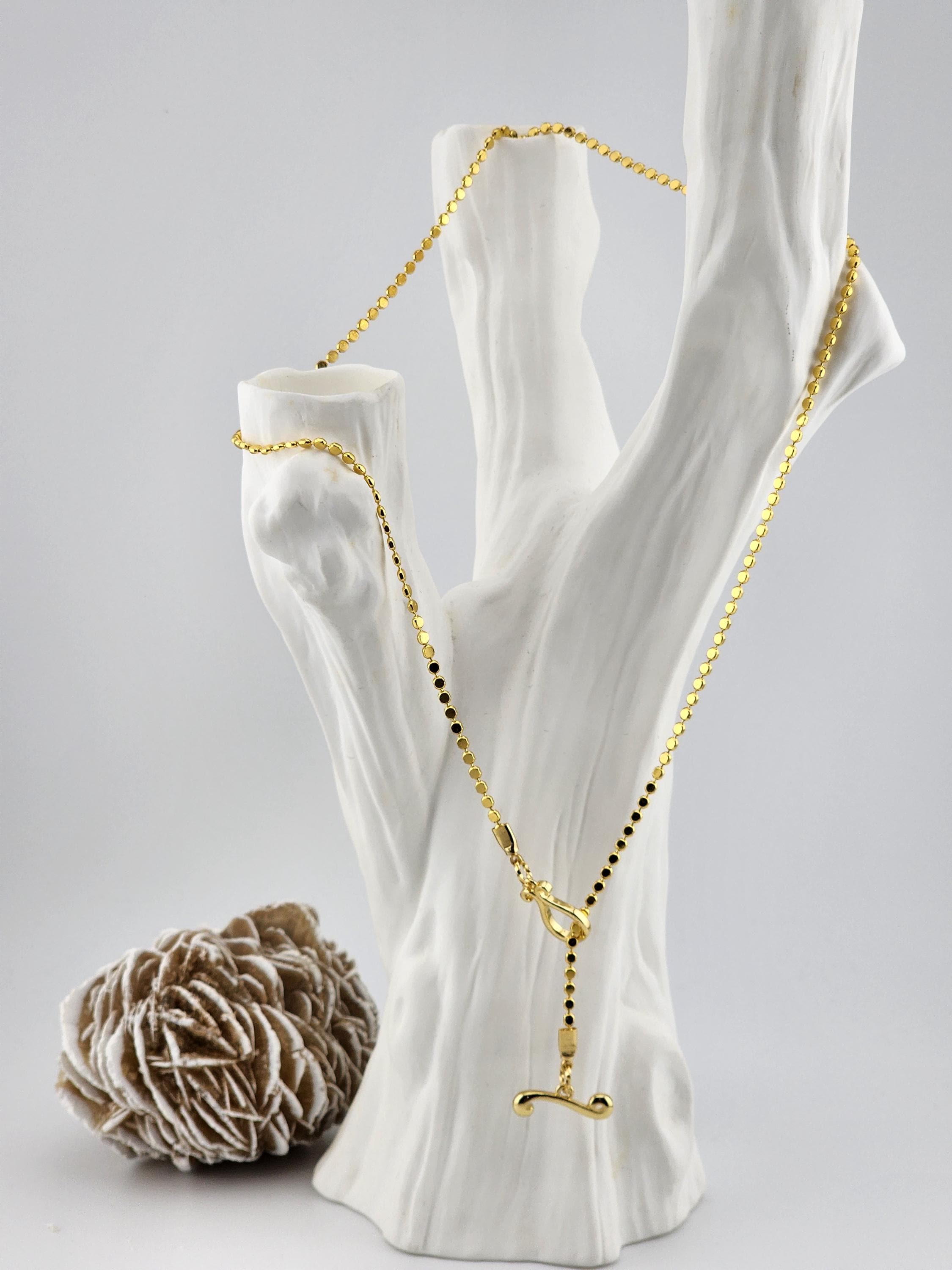 I made this stunning necklace using 18k Gold plated Brass Flat Ball chain with an 18k Gold plated Ornate brass clasp & 24k Gold plated connecting rings. I made this necklace purposely for it to hook and drape down the neckline. The length may be altered upon request. I am able to make the length as long or as short as you request. * Your purchase will arrive in pretty packaging