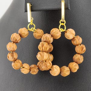 I made these earrings using gold surgical steel hooks & gold hoops. I lined the hoops alternating carved Wood Lotus Flowers & Painted Wood Cubes in various shades of Pink and Brown. They are very Boho. * Your purchase will arrive in pretty packaging * Shipping is included