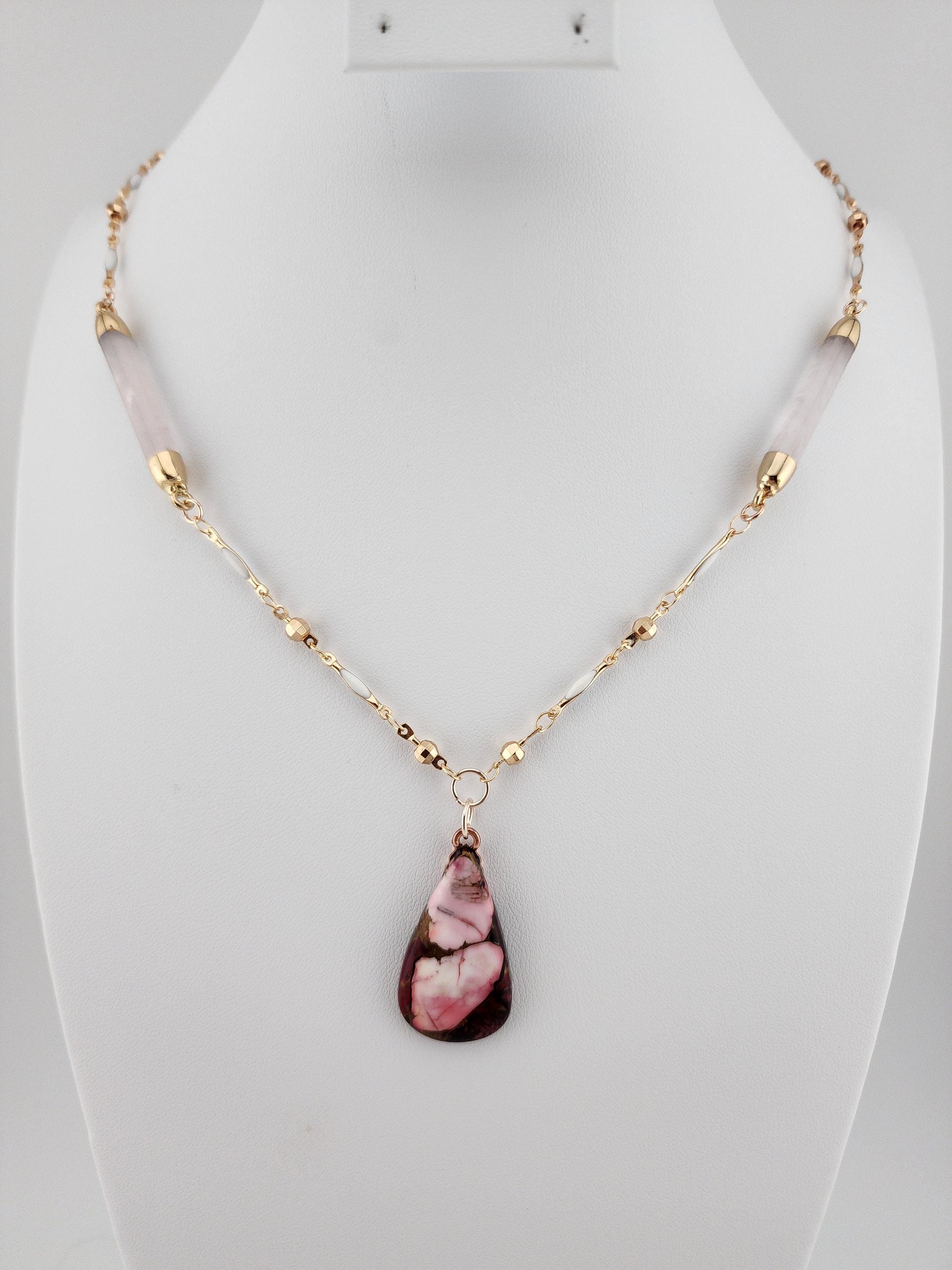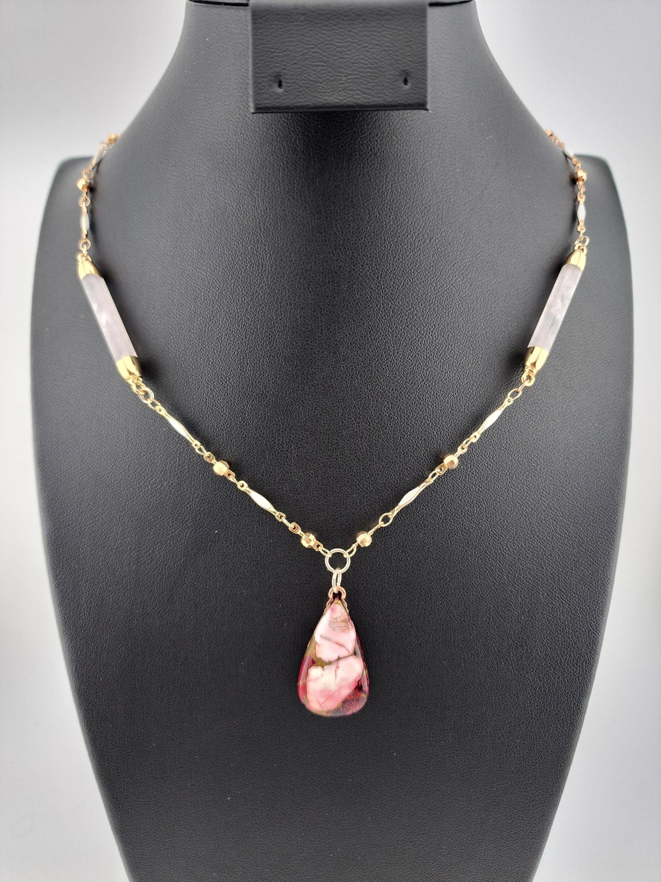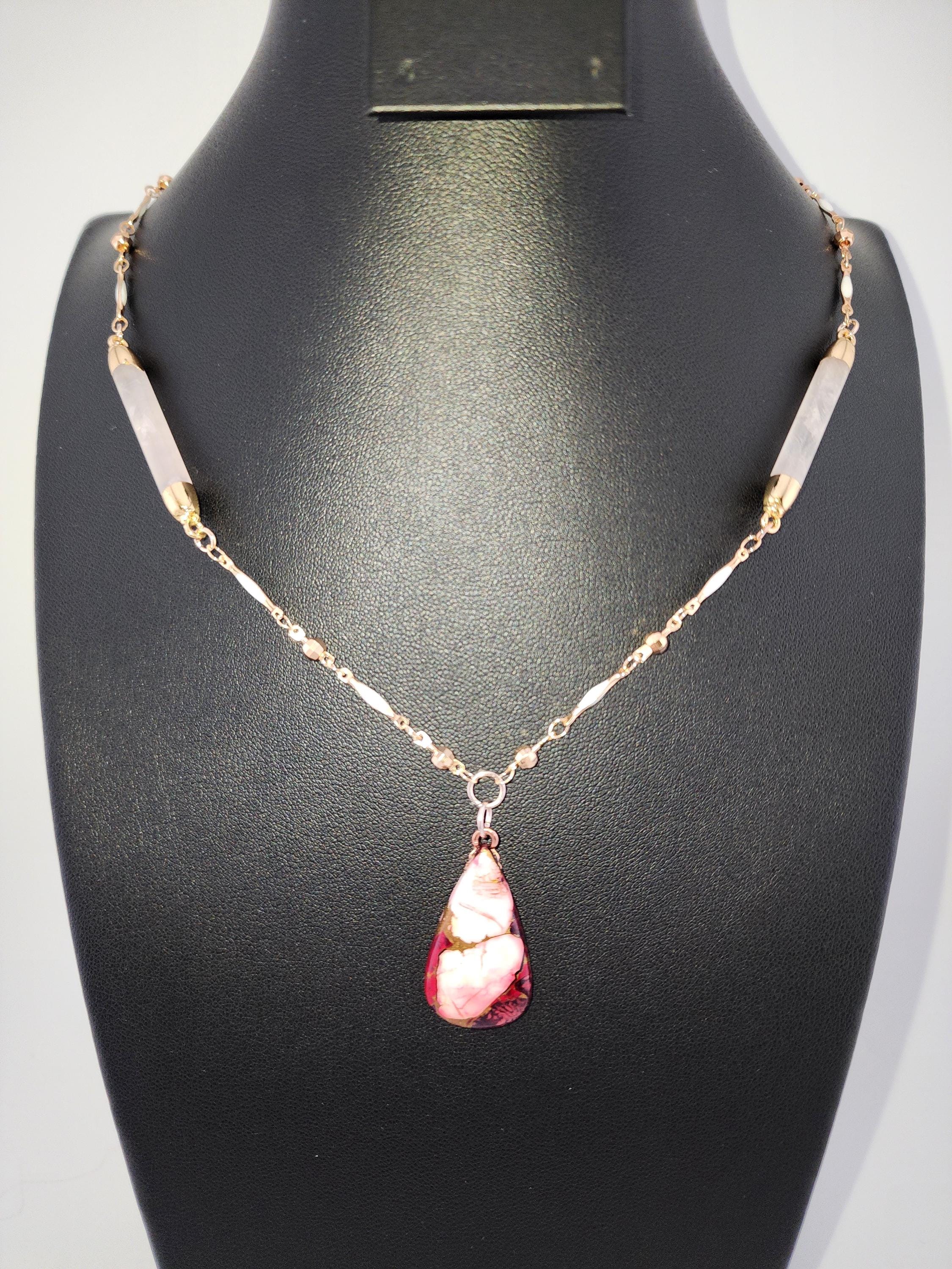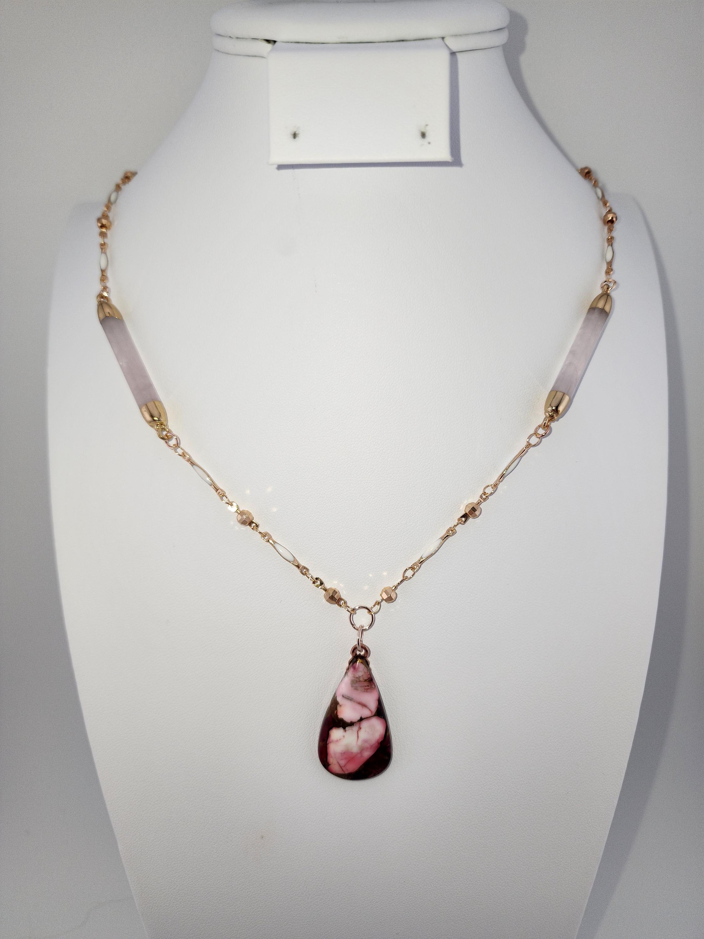 I made this uniquely beautiful necklace using Rose Gold and White Enamel ball stick chain. There are 2 long genuine Rose Quartz cylindrical connector crystals and an amazing teardrop shape Red Rose Dahlia pendant. The clasp is a round Rose Gold pave' crystal double hinge style. This necklace is one-of-kind! * Your purchase will arrive in pretty packaging * Shipping is included >>>>>>>>>>>>>>>>>>>>>>>>>>>>>>>>>>>>>>>>>>>>>>>>>>>>>>>>>>>>>>>>>>>>>>>>>>>>>>>>>>>>>>>> BENEFITS OF WEARING ROSE QUARTZ: * Promotes unconditional love * Restores trust and harmony in relationships * Supports emotional healing and well-being * Helps with stress and anxiety OR, SO THEY SAY... >>>>>>>>>>>>>>>>>>>>>>>>>>>>>>>>>>>>>>>>>>>>>>>>>>>>>>>>>>>>>>>>>>>>>>>>>>>>>>>>>>>>>>>> BENEFITS OF WEARING RED ROSE DAHLIA: * Success in career and business * Blesses you with good health * Attracts abundance and prosperity * Stable mental health * Harmonious married life OR, SO THEY SAY...