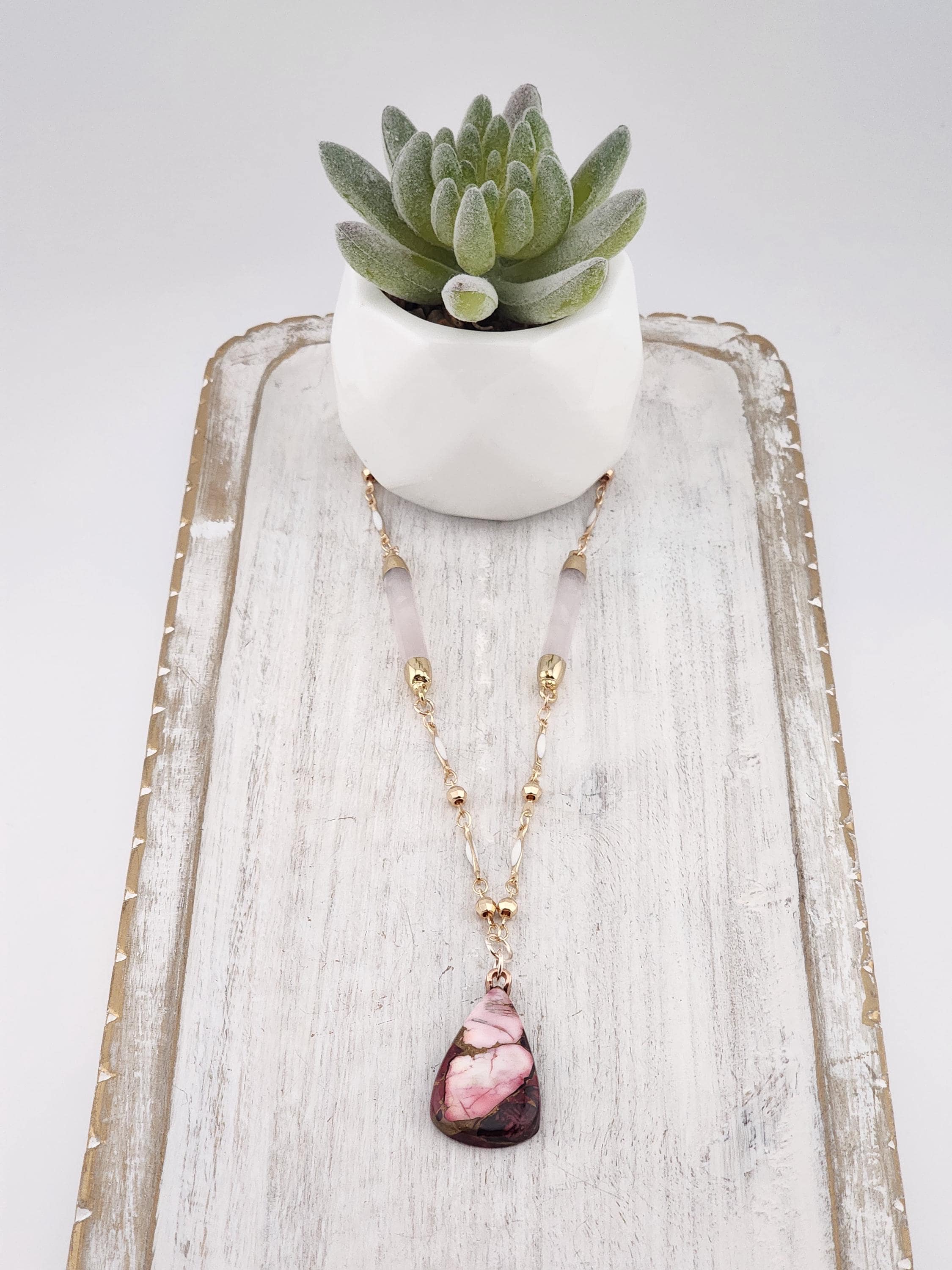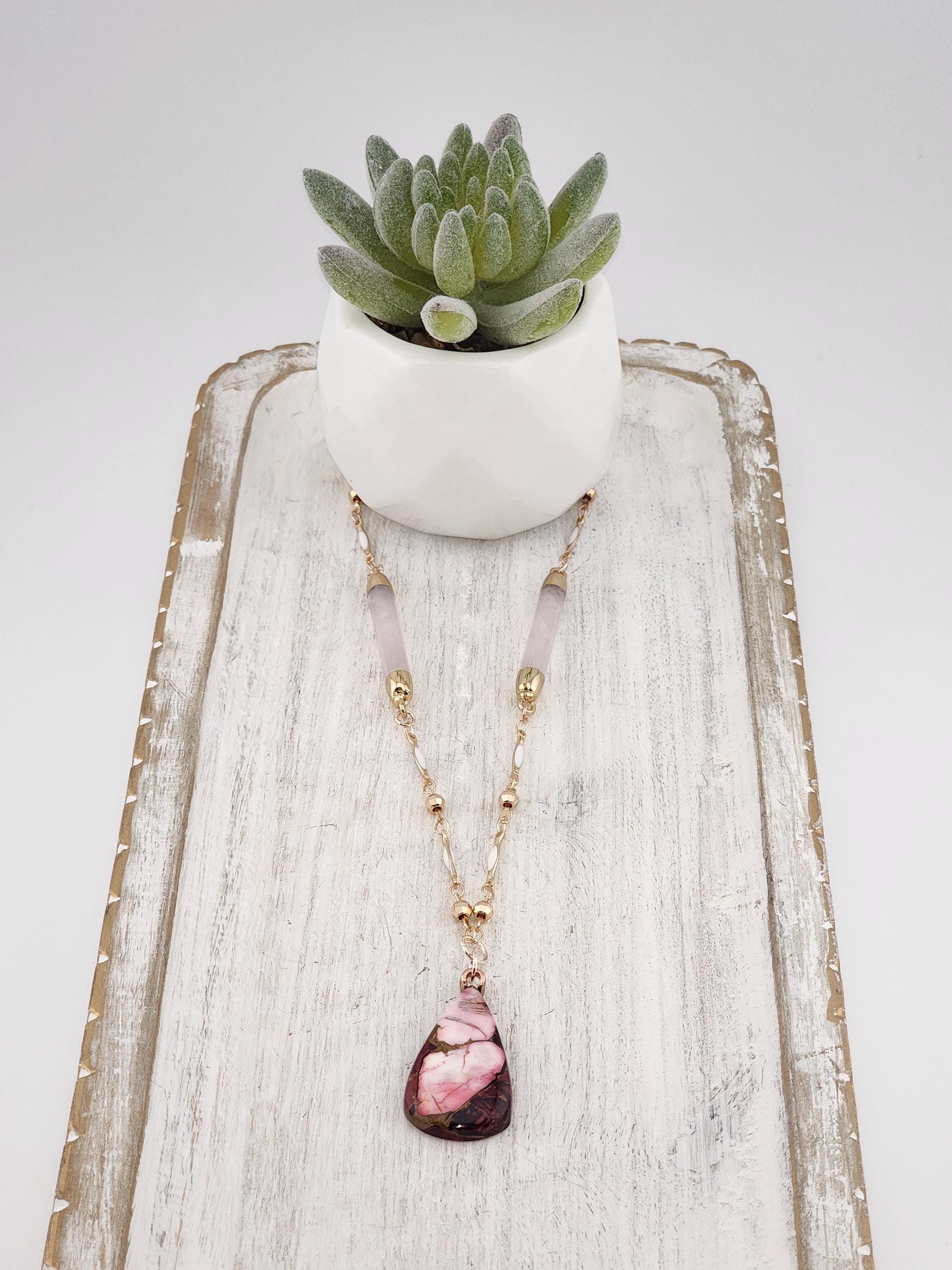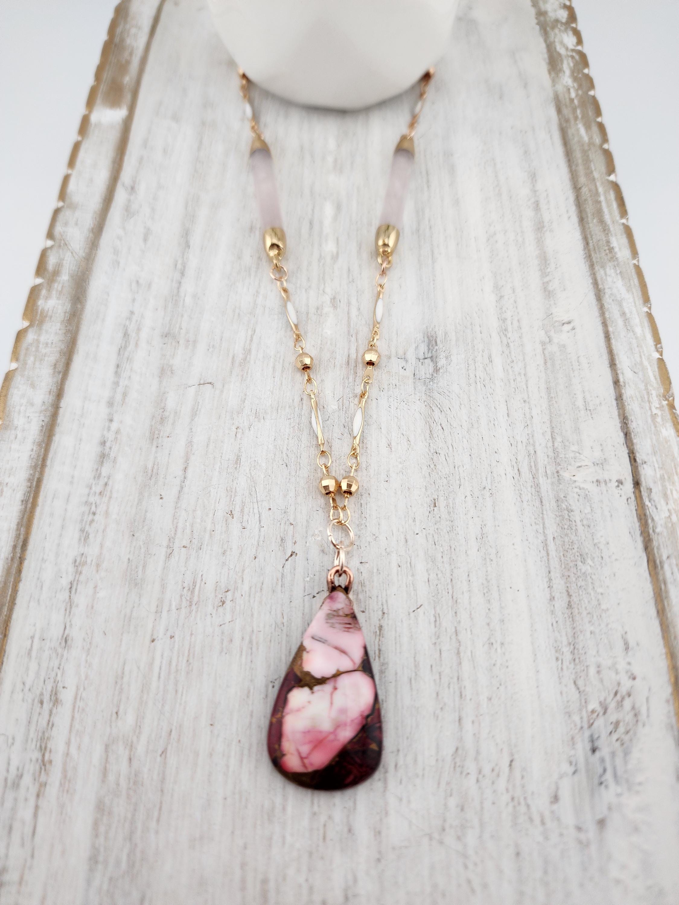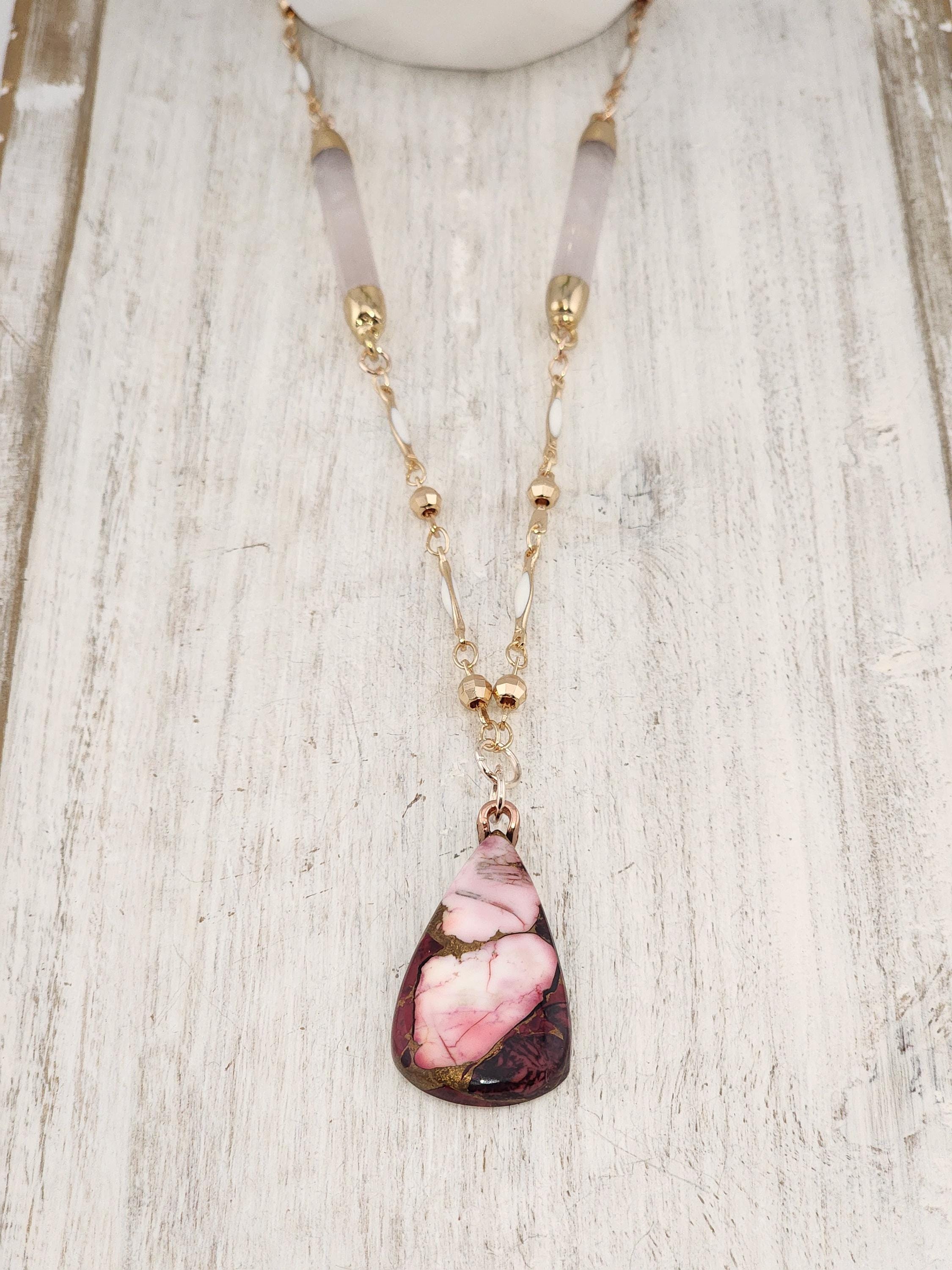 I made this uniquely beautiful necklace using Rose Gold and White Enamel ball stick chain. There are 2 long genuine Rose Quartz cylindrical connector crystals and an amazing teardrop shape Red Rose Dahlia pendant. The clasp is a round Rose Gold pave' crystal double hinge style. This necklace is one-of-kind! * Your purchase will arrive in pretty packaging * Shipping is included >>>>>>>>>>>>>>>>>>>>>>>>>>>>>>>>>>>>>>>>>>>>>>>>>>>>>>>>>>>>>>>>>>>>>>>>>>>>>>>>>>>>>>>> BENEFITS OF WEARING ROSE QUARTZ: * Promotes unconditional love * Restores trust and harmony in relationships * Supports emotional healing and well-being * Helps with stress and anxiety OR, SO THEY SAY... >>>>>>>>>>>>>>>>>>>>>>>>>>>>>>>>>>>>>>>>>>>>>>>>>>>>>>>>>>>>>>>>>>>>>>>>>>>>>>>>>>>>>>>> BENEFITS OF WEARING RED ROSE DAHLIA: * Success in career and business * Blesses you with good health * Attracts abundance and prosperity * Stable mental health * Harmonious married life OR, SO THEY SAY...
