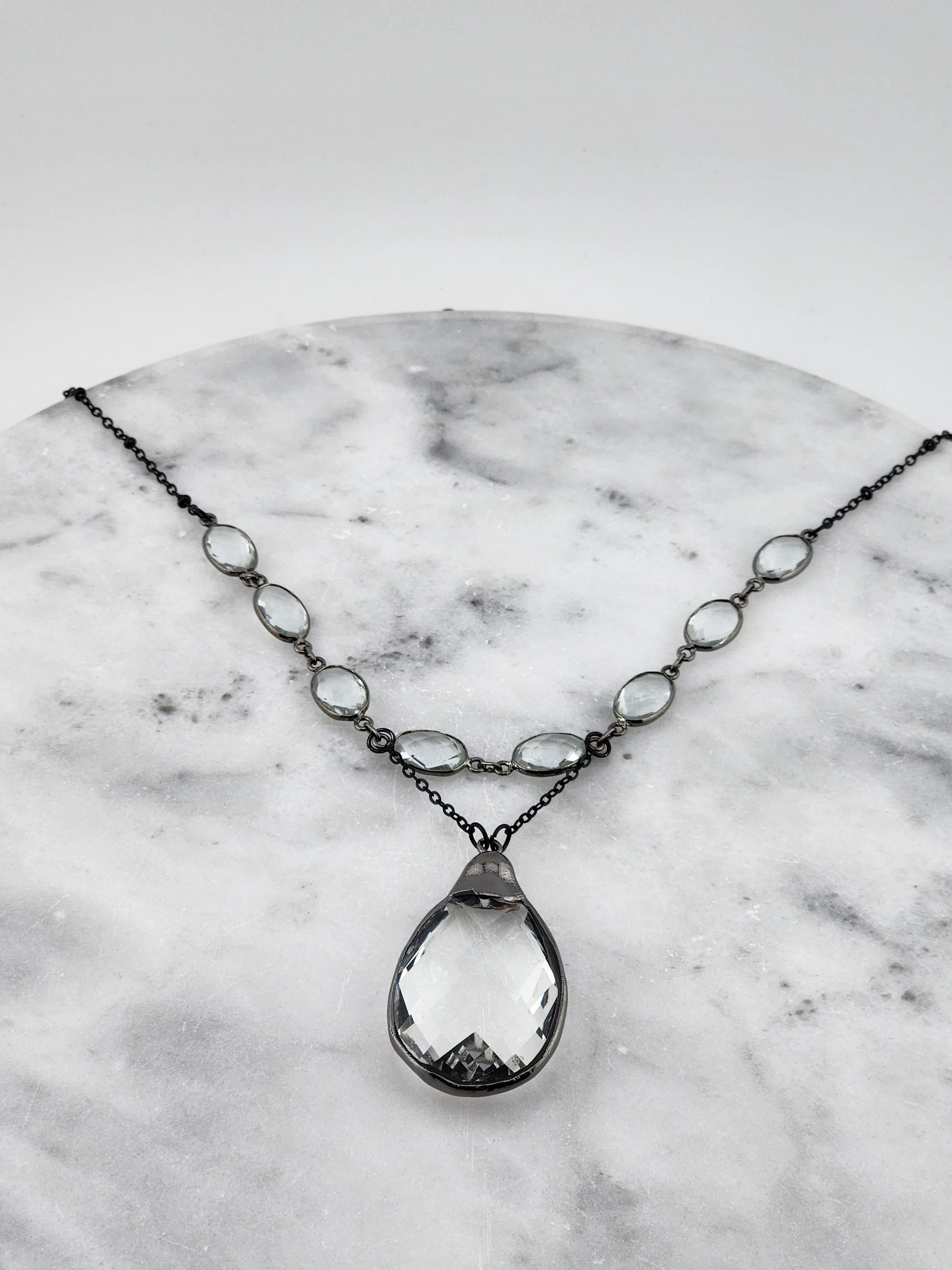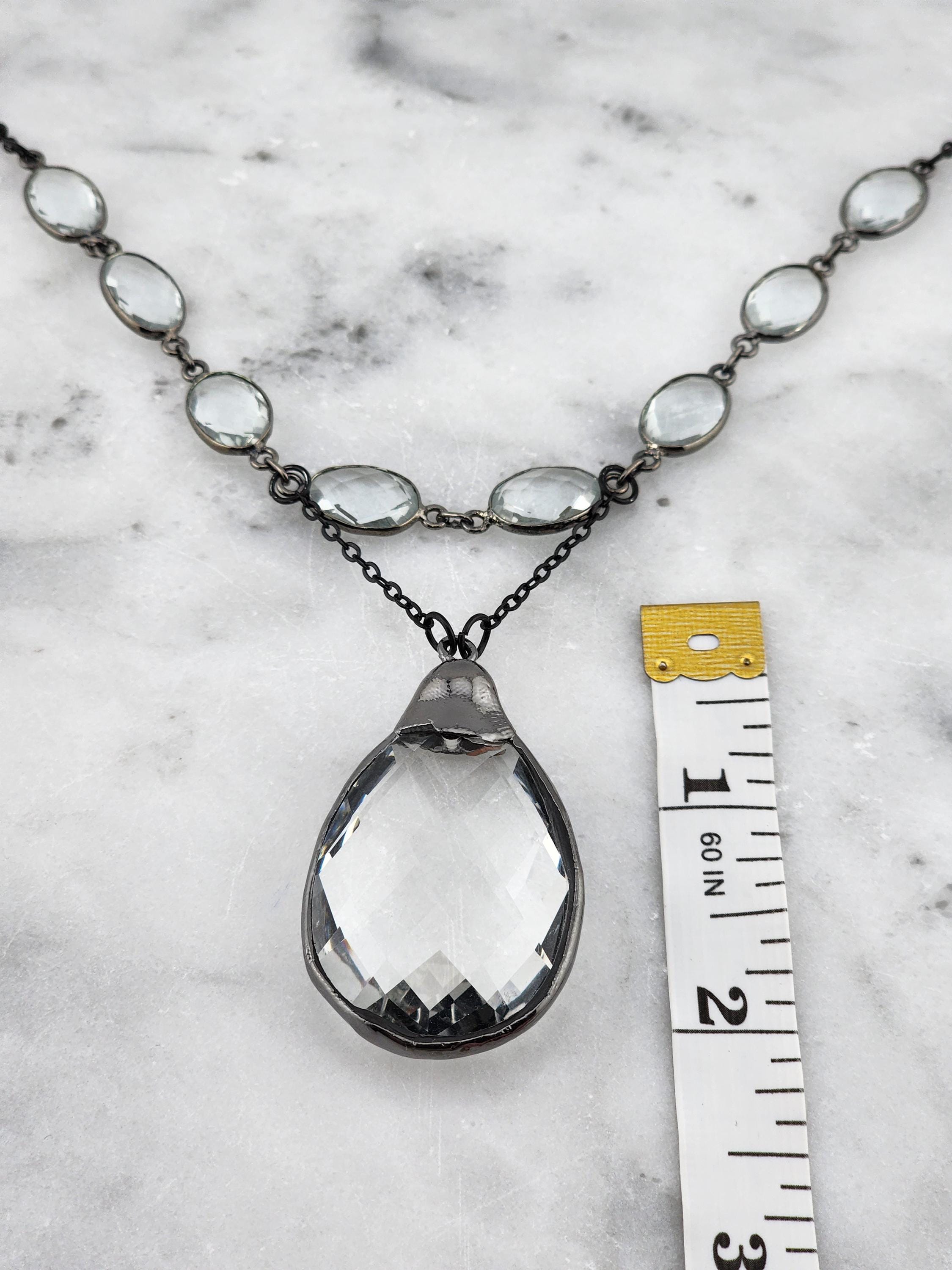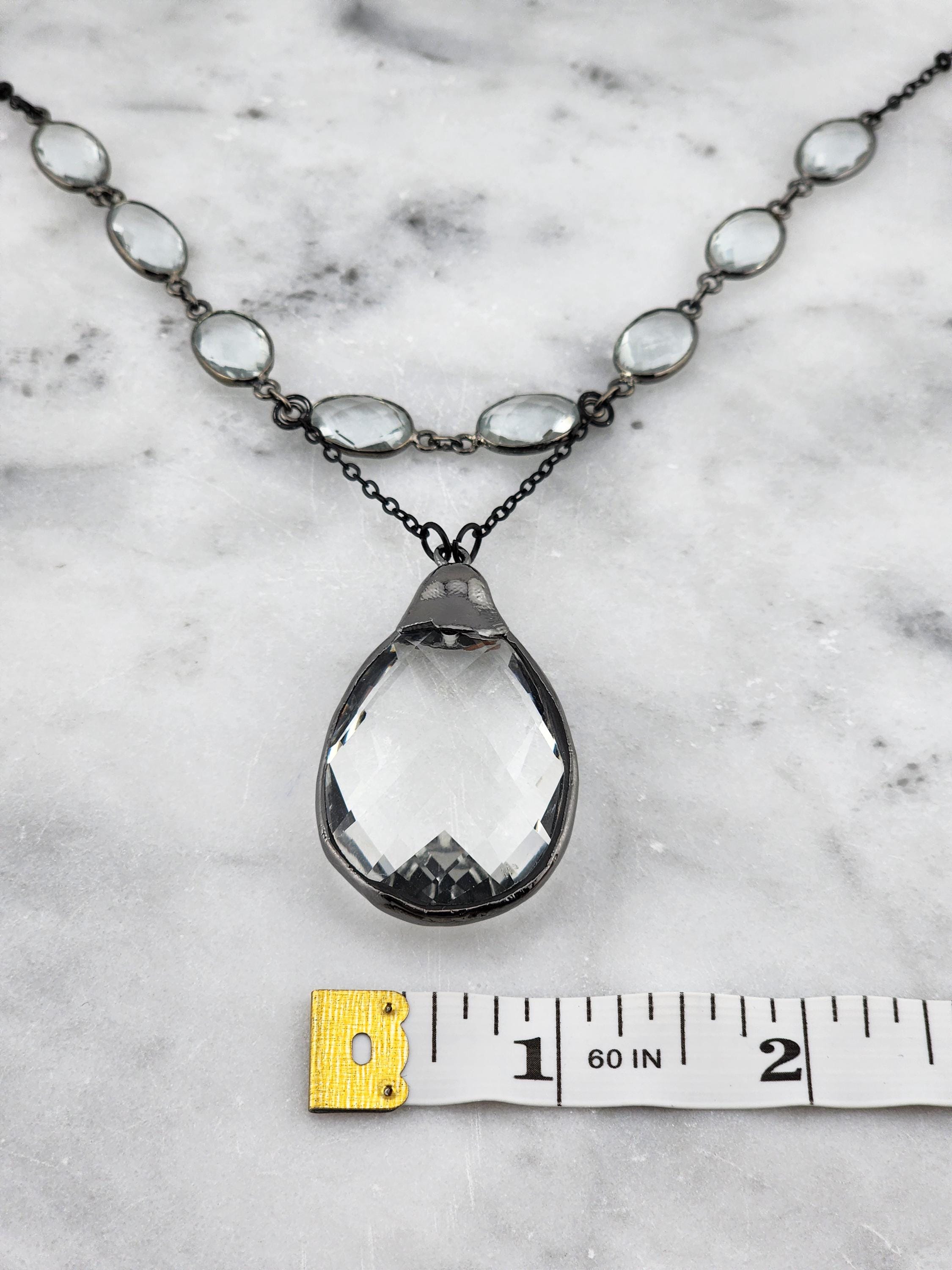 I am so proud of this Art Deco style piece! I made this necklace with black ball link chain and black rhodium soldered faceted oval crystals. Then I added this amazingly gorgeous black rhodium soldered raindrop shape faceted crystal pendant. These crystals were hand made in Jaipur, India and set to me. * Your purchase will arrive in pretty packaging * Shipping is free * Lead and Nickel free * The length may be altered upon request