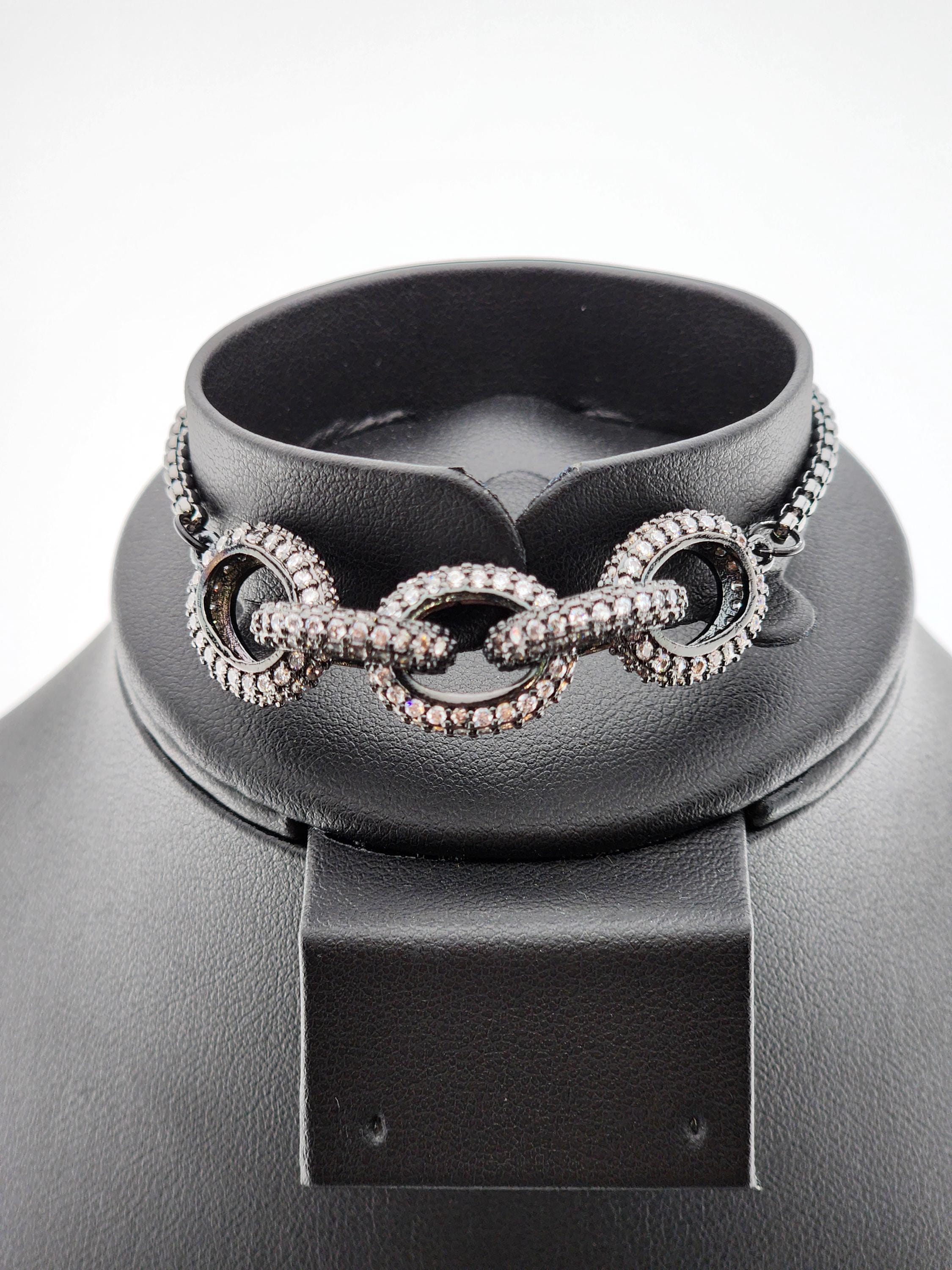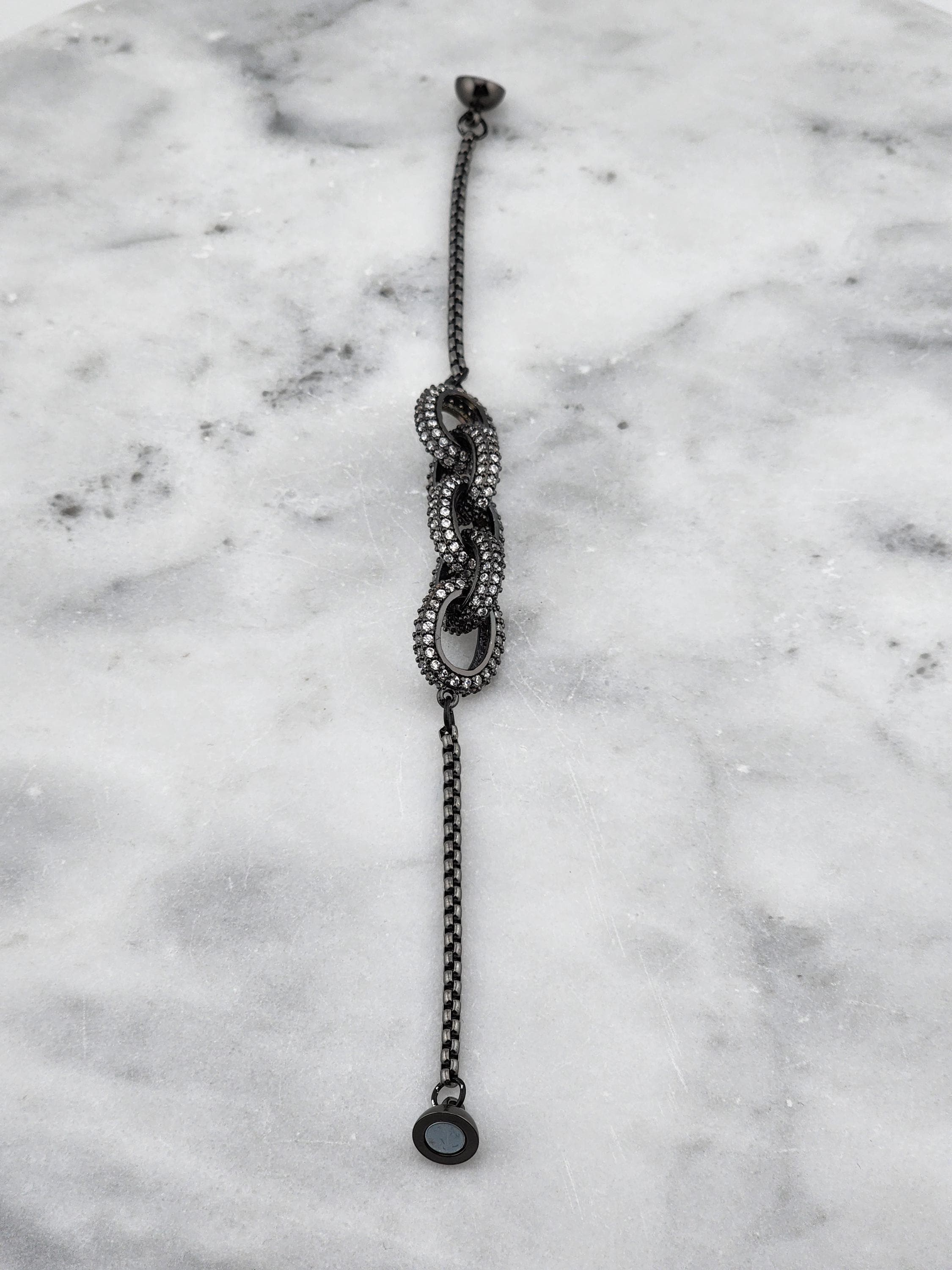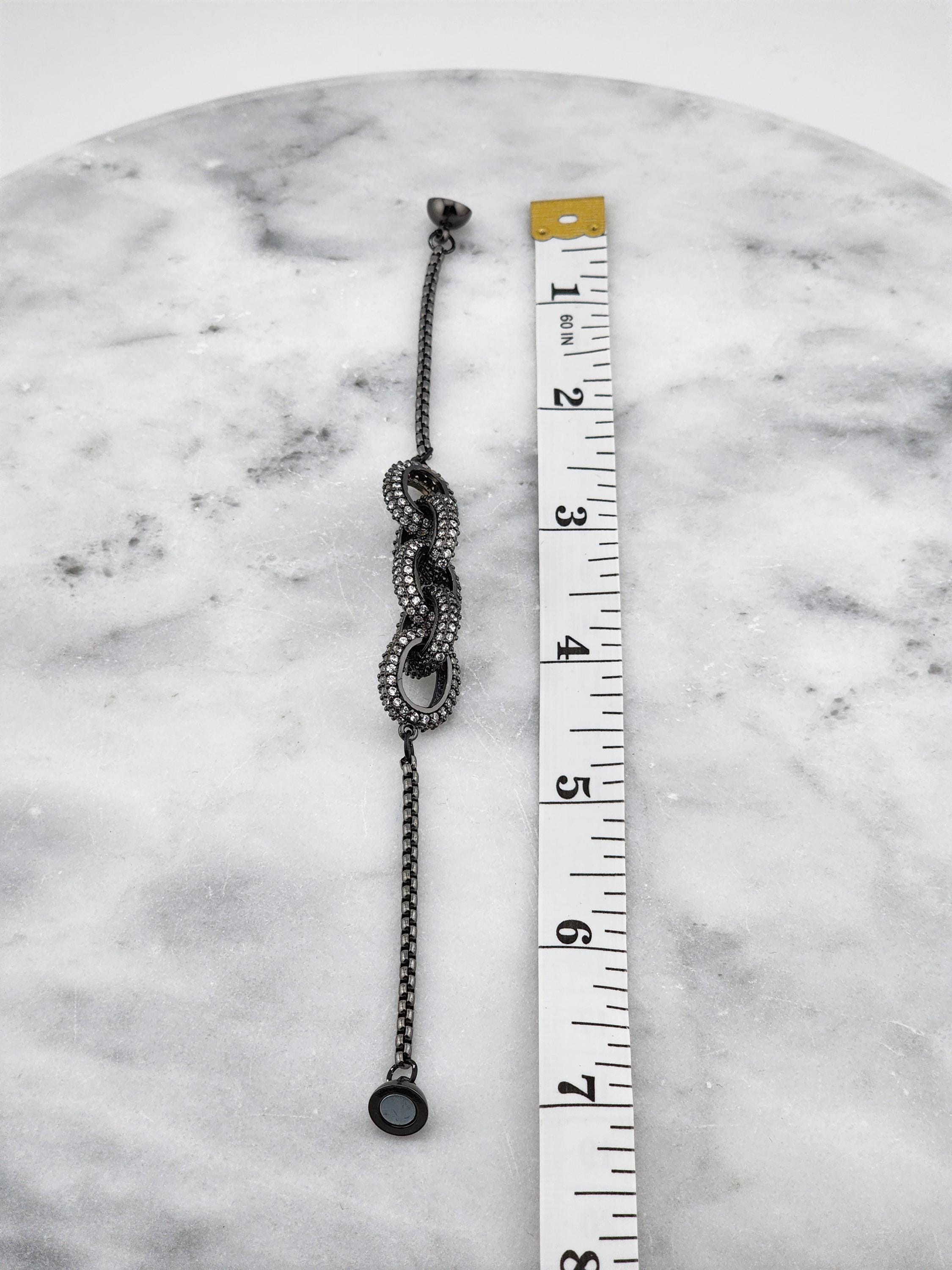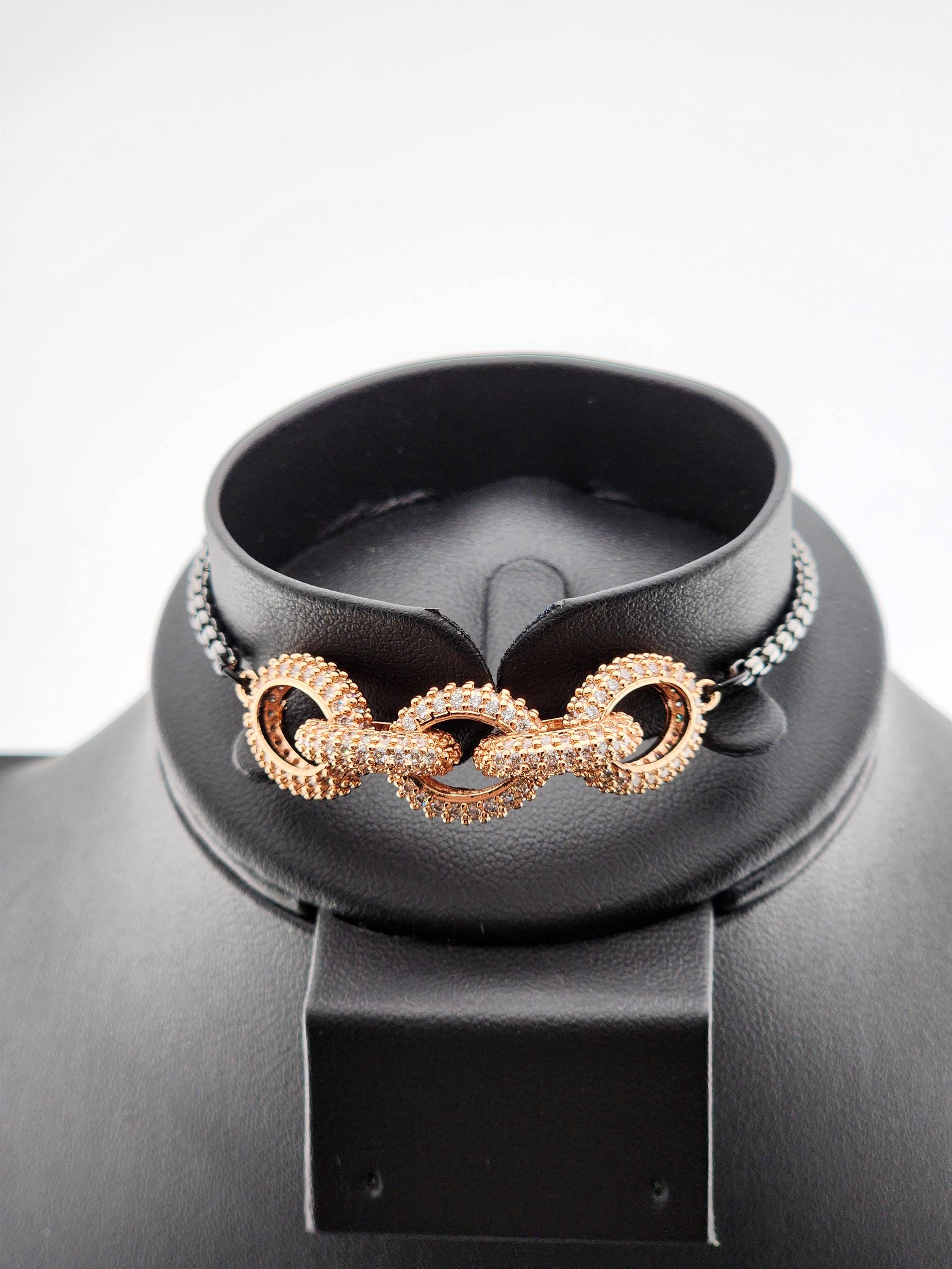 I made these bracelets giving you the choice between - #1. ROSE GOLD/BLACK - I made this bracelet using highly polished black square rolo chain. Then I added a black magnetic sphere clasp and a rose gold plated brass 5 oval link micro pave infinity connector. Or, #2. BLACK/BLACK - I made this bracelet is made using highly polished black square rolo chain. Then I added a black magnetic sphere clasp and a black rhodium 5 oval link micro pave infinity connector. * Your purchase will arrive in pretty packaging * Shipping is free in the U.S. JEWELRY CARE INSTRUCTIONS - Please avoid the collision, so as to avoid surface scratches. - Please avoid wearing it when sweating a lot, shower or sleep, etc. - Please wipe with soft cloth when cleaning the jewelry. * Take off the jewelry if you plan to get wet such as going to the beach, pool, shower, bath, spa etc. * Remove the jewelry before going to sleep, exercise or if you plan to do any physically strenuous activities. This is to avoid any unnecessary wear and tear. * Put on the jewelry last, only after you apply any make-up, skin care products, perfume, hairspray, etc. * Avoid contact with any harsh chemicals such as household cleaners, acid, alkali, corrosive substances, etc. This includes not using any chemical jewelry cleaners. * Wipe down your jewelry with a soft, lint-free polishing cloth and store in a sealed bag or box in a cool dry place.
