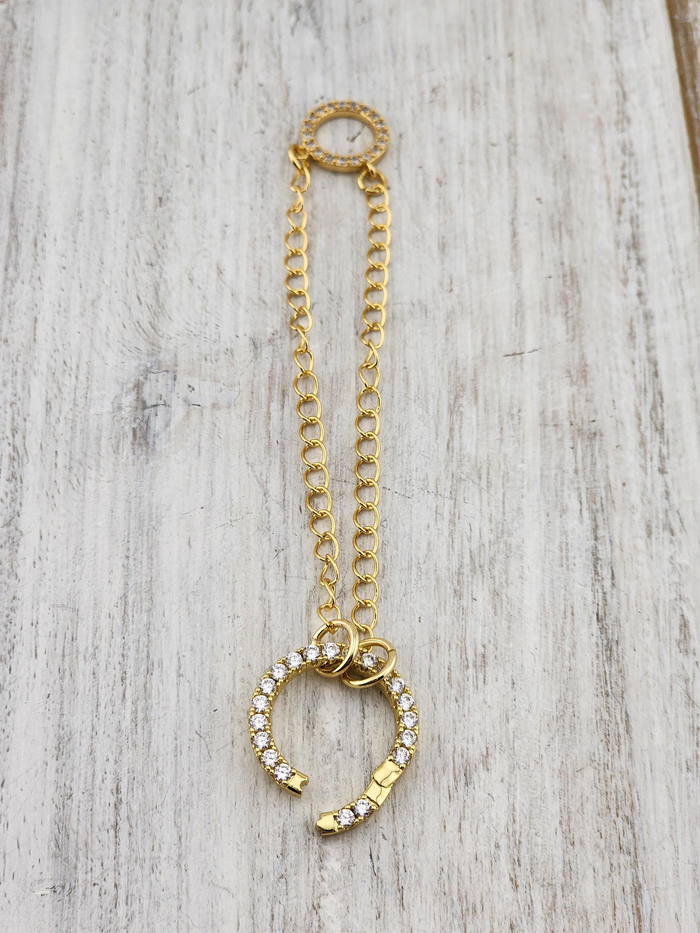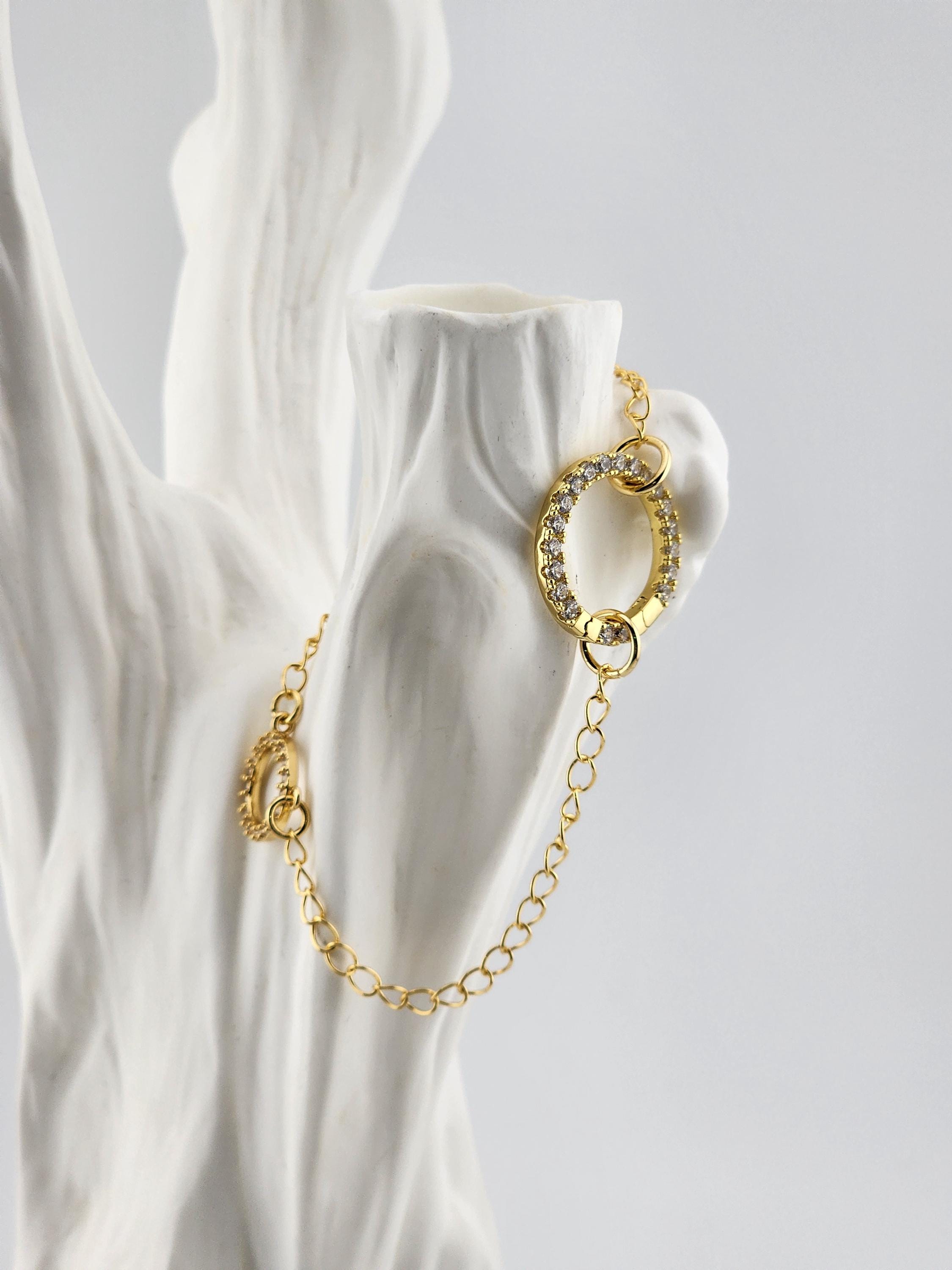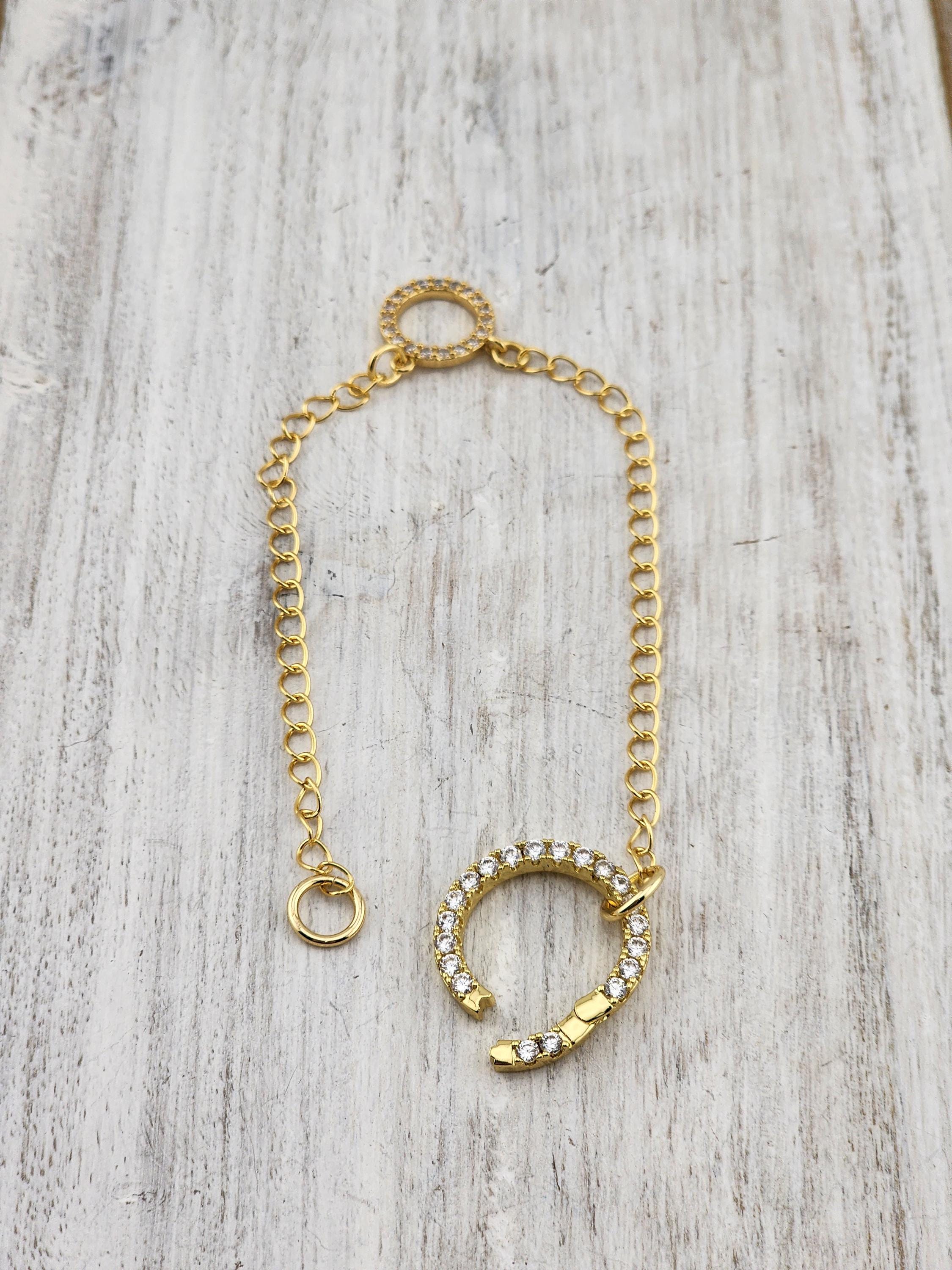 I made this bracelet using tarnish resistant 18k gold link chain. I added a gold brass micro pave circle charm and an 18k gold plated brass micro pave circle hinge clasp with 18k gold plated connecting rings. It's very Classy. * Your purchase will arrive in pretty packaging * Shipping is free within the U.S. * The length may be altered upon request