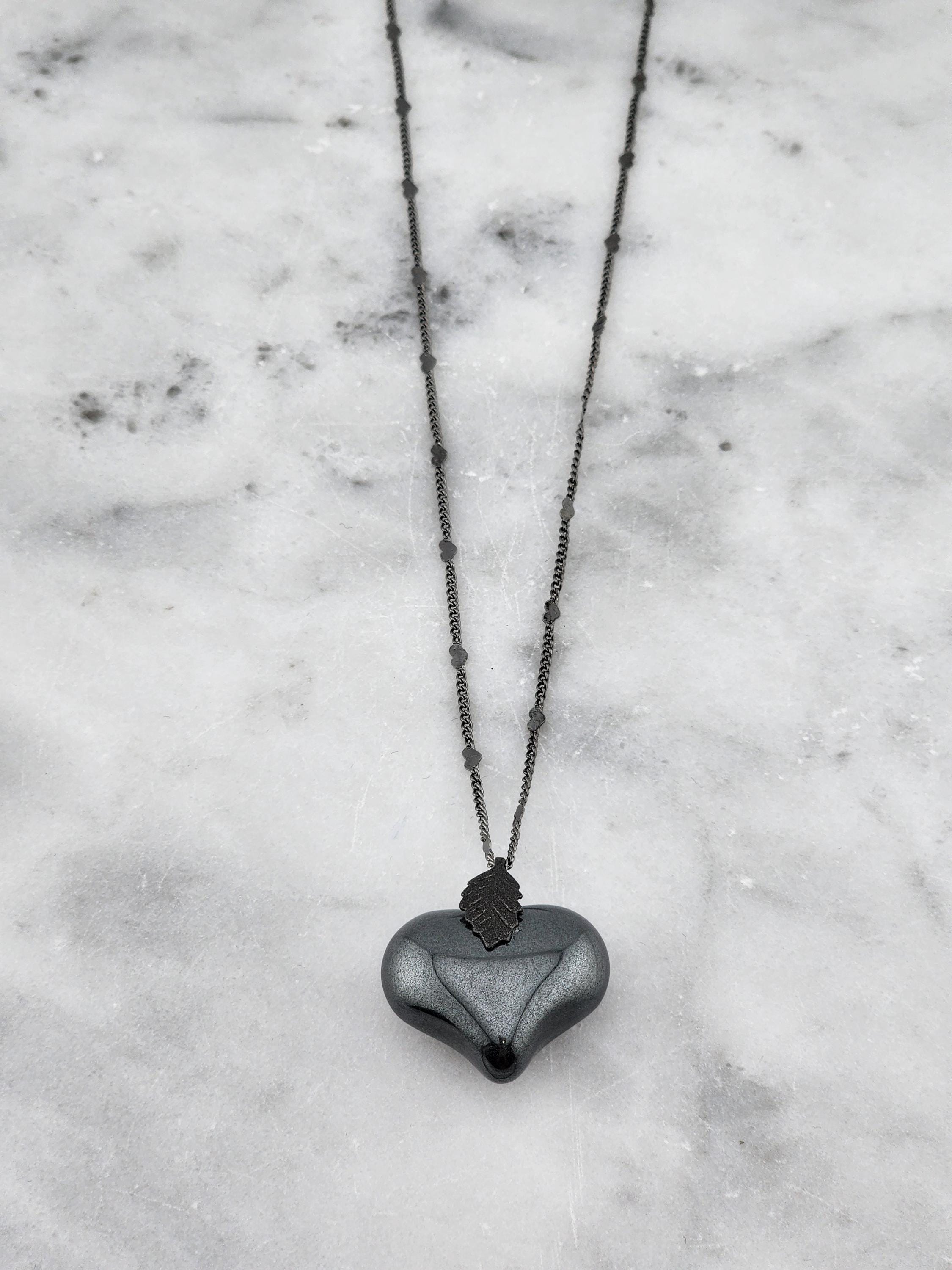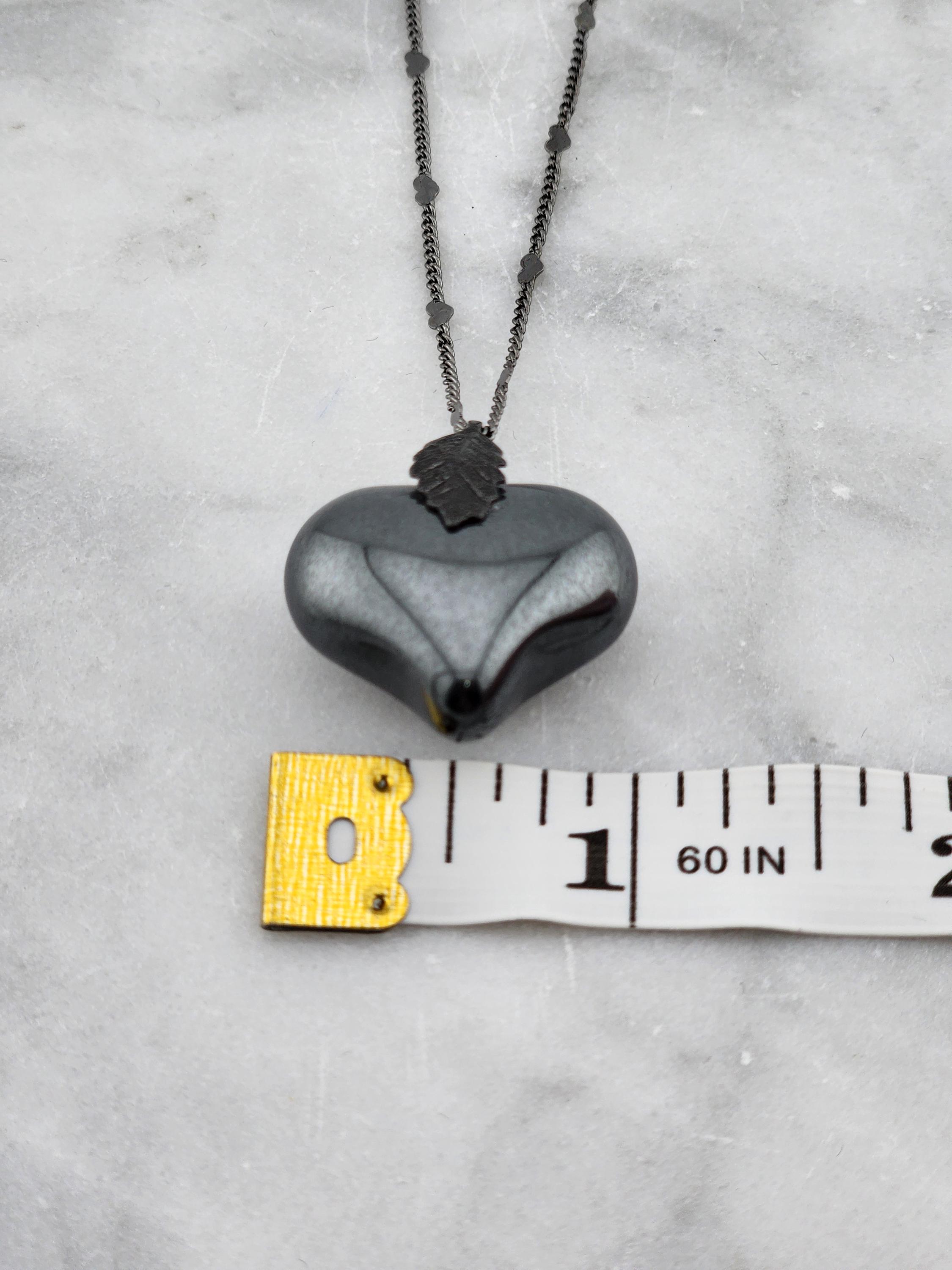 I made this Gothic style pendant necklace using dainty twisted black heart chain. The pendant is a natural black hematite heart hanging from a black leaf bail. * Your purchase will arrive in pretty packaging * Shipping is free within the U.S. METAPHYSICAL PROPERTIES of BLACK HEMATITE - * Ground and protects * Makes us feel safe and secure * Stimulates concentration and focus * Enhances original thought ...OR SO THEY SAY