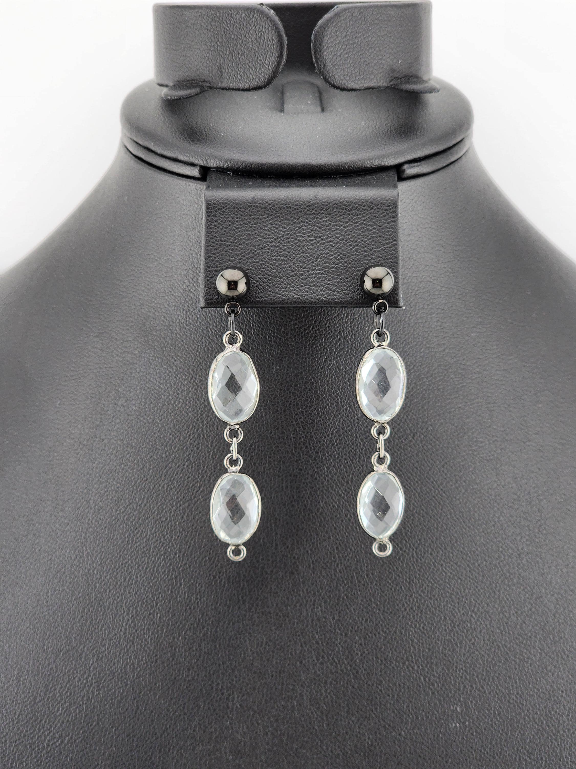 SPECTACULAR! I made these earrings using 5mm black plated surgical steel ball posts. I added 2 black rhodium plated brass soldered faceted oval crystals to each. These crystal were crafted in Jaipur, India. They are very special. * Your purchase will arrive in pretty packaging * Shipping is free within the U.S.
