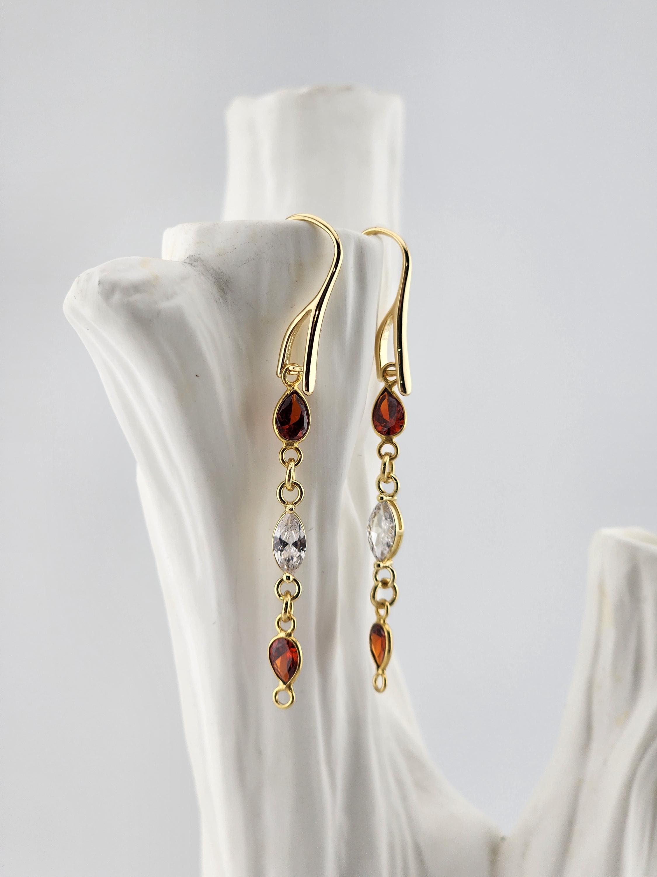 Truly elegant earrings. I made these earring using 18k gold plated brass hooks. Then I added a 22k gold plated genuine pear shaped garnet, a marquise shaped crystal & a garnet again. * Your purchase will arrive in pretty packaging * Shipping is included