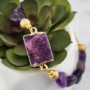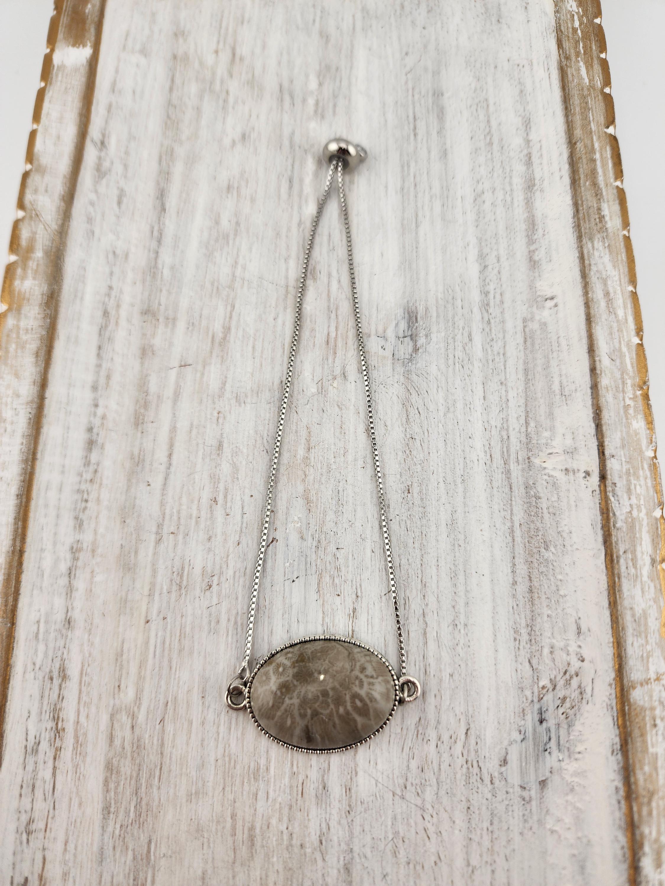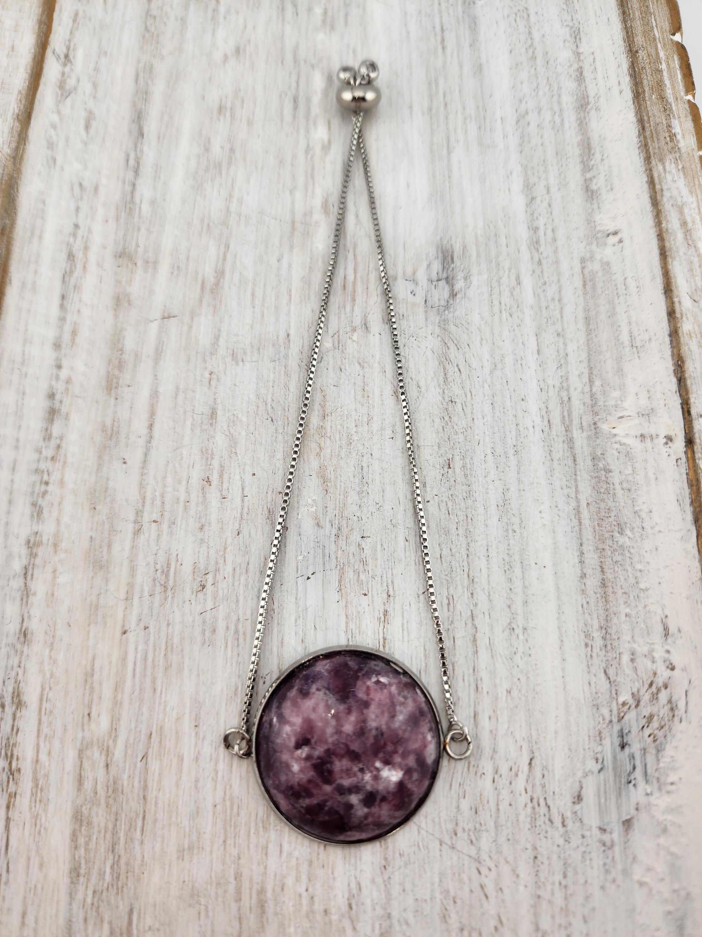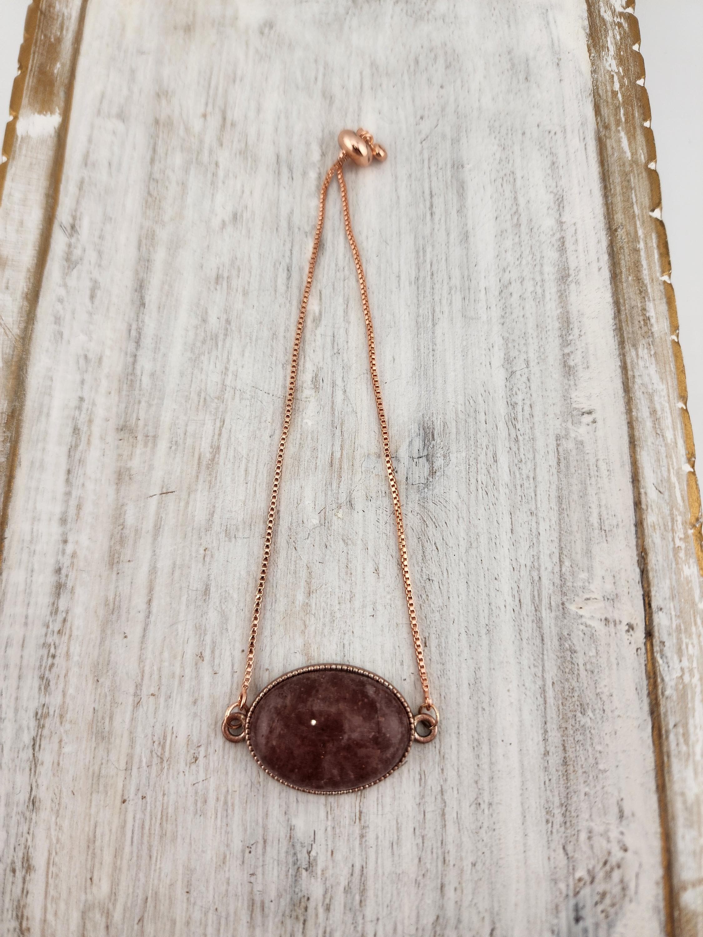 I made three options for you to choose from. #1- Silver slider bracelet with small round finishing crystals. It has an oval shaped Gray Fossilized Coral connector. #2- Silver slider bracelet with small round finishing crystals. It has a Purple Charoite stone connector. #3- Rose Gold slider bracelet with small finishing crystals. It has a Pink Strawberry Quartz connector. * Your purchase will arrive arrive in pretty packaging * Shipping is free within the U.S.