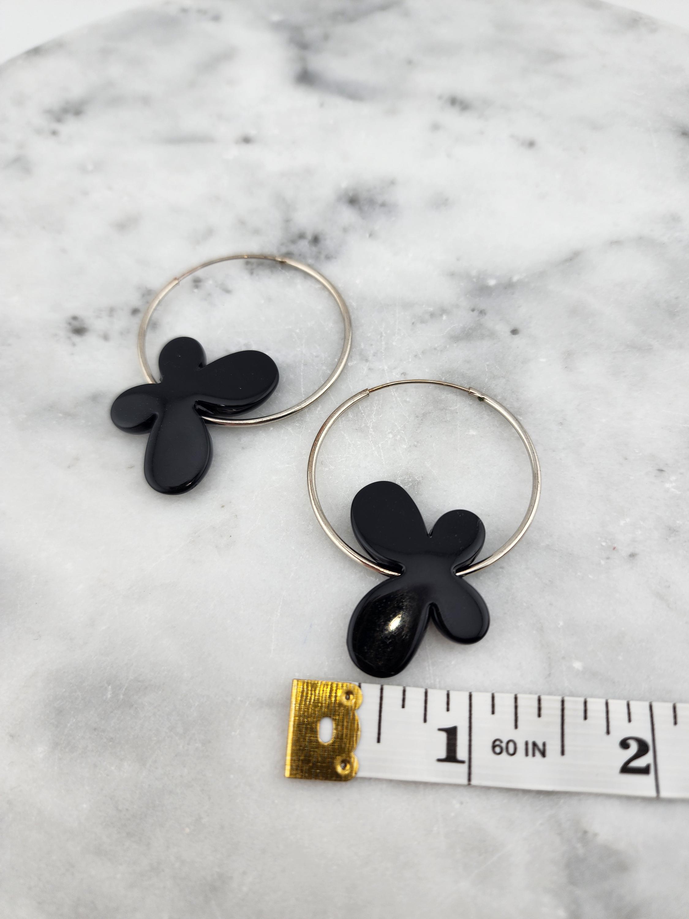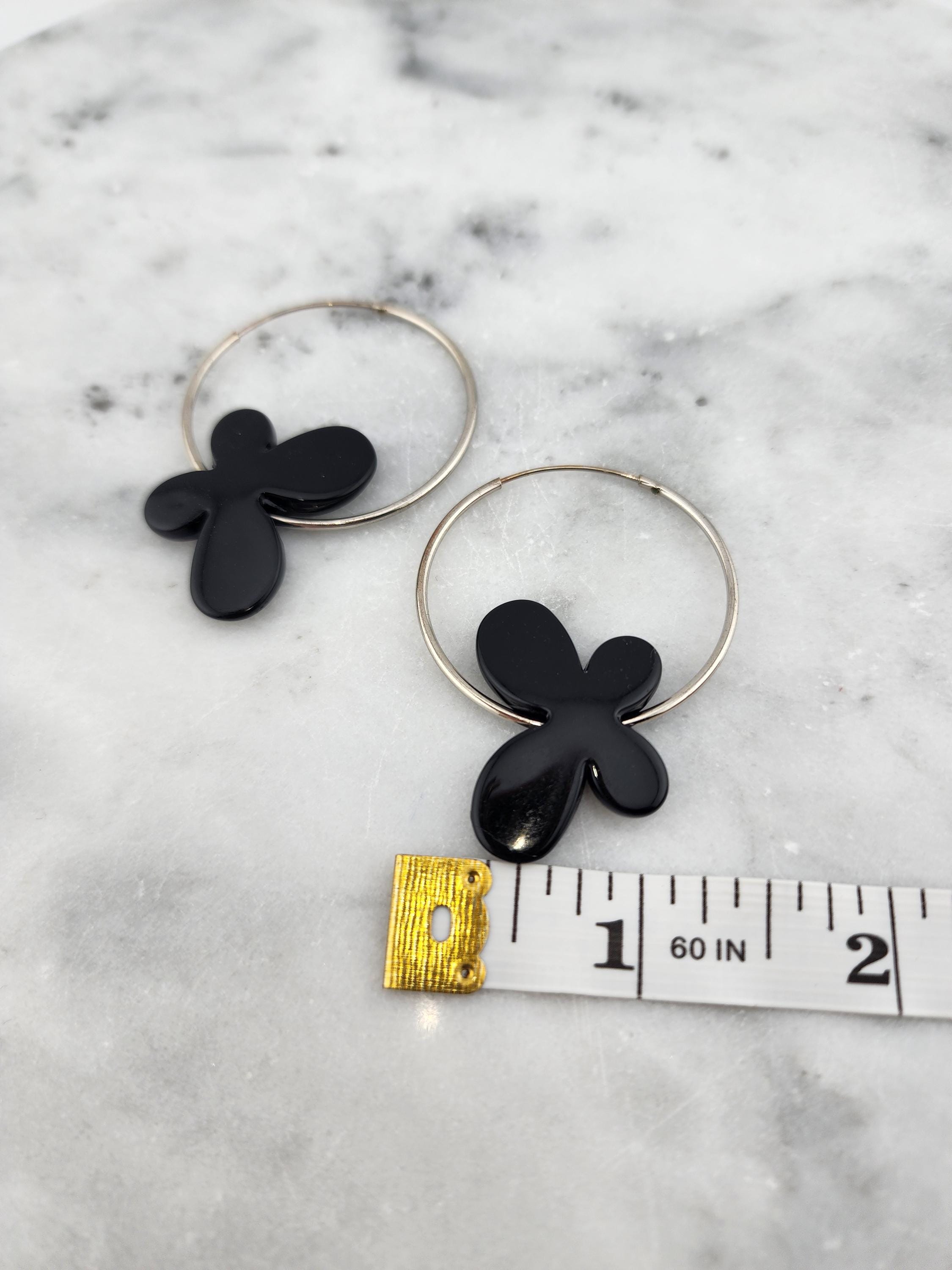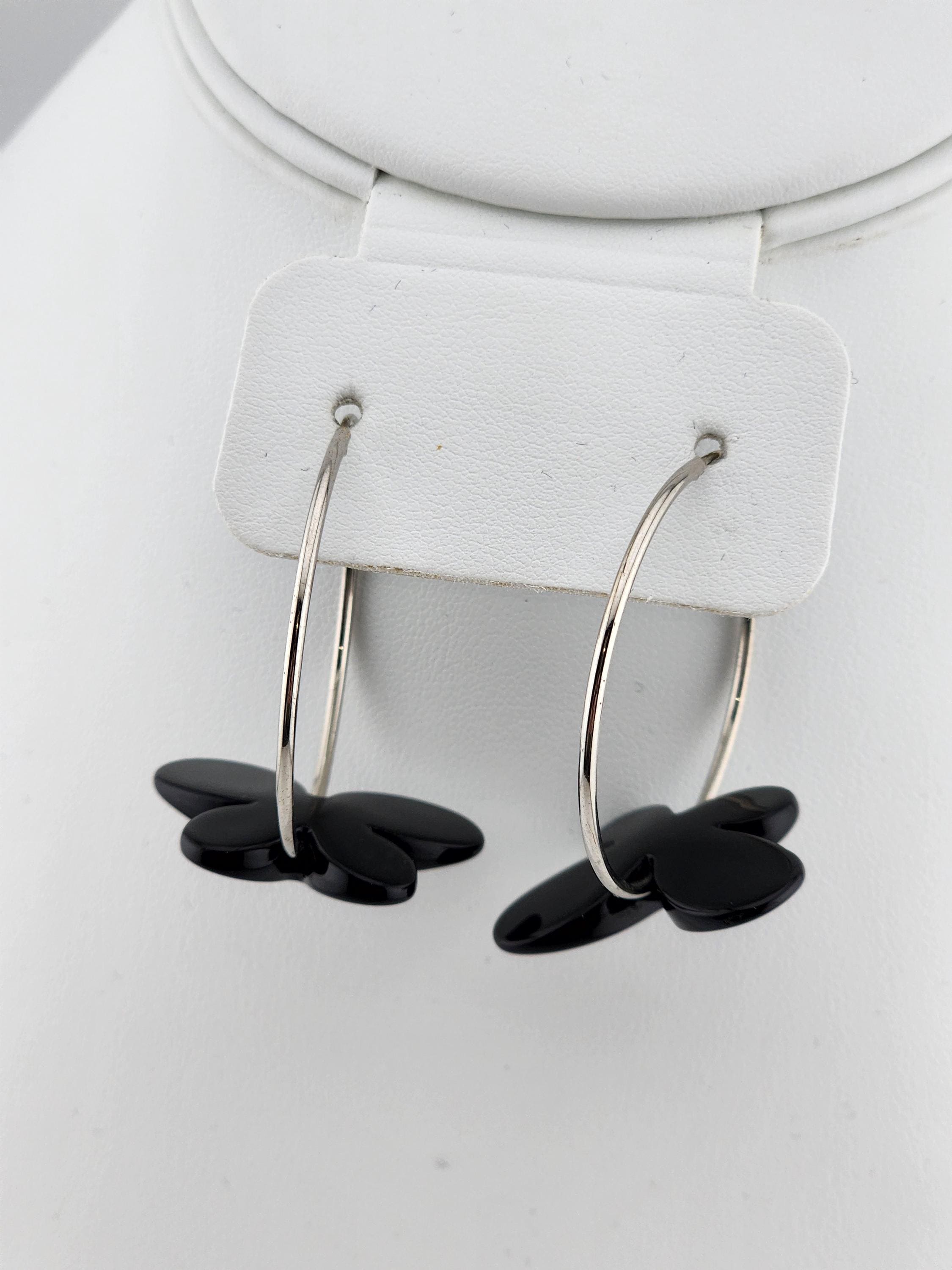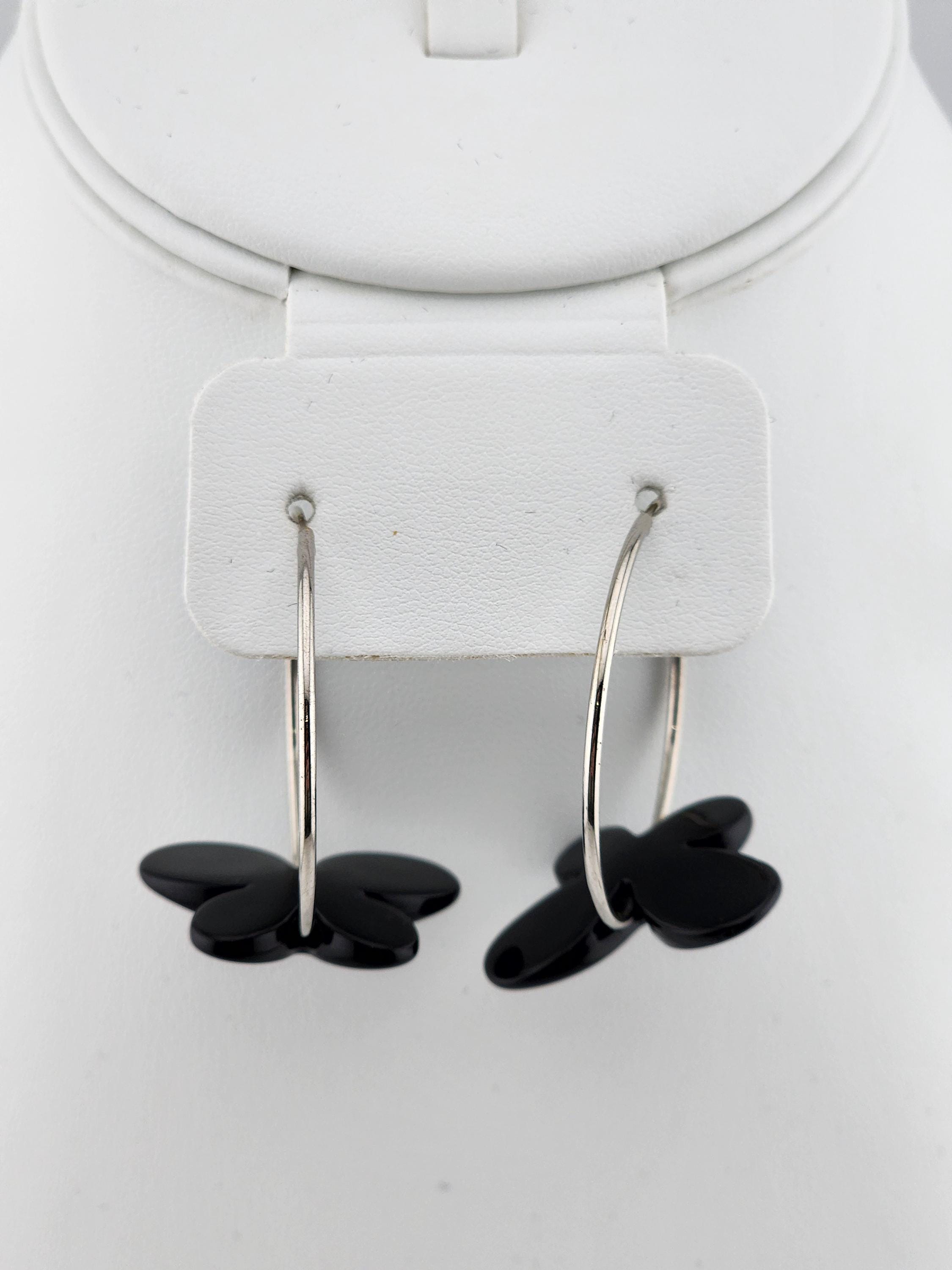 I made these earrings using medium sterling silver hoops and adding black flying spinning butterflies.