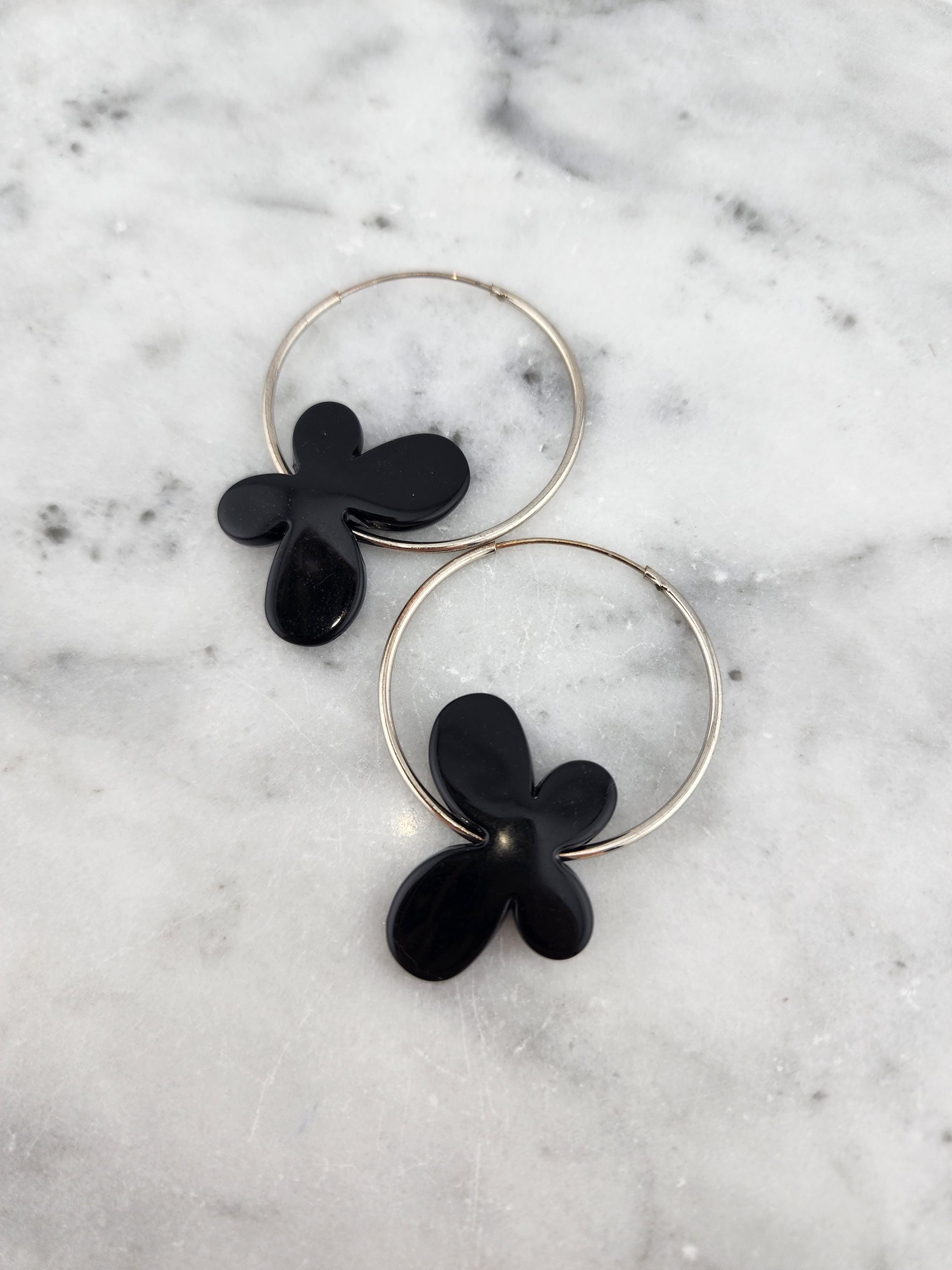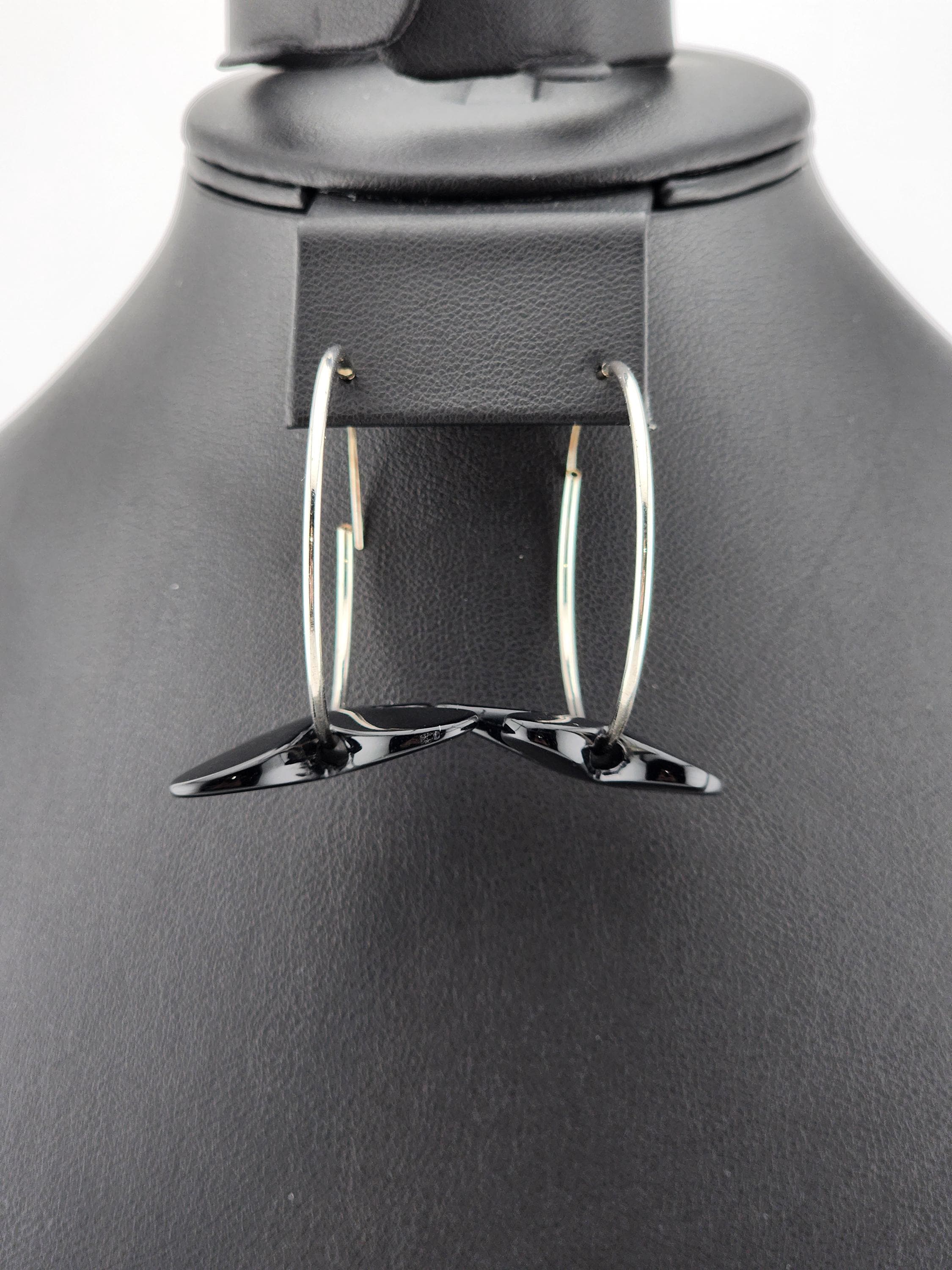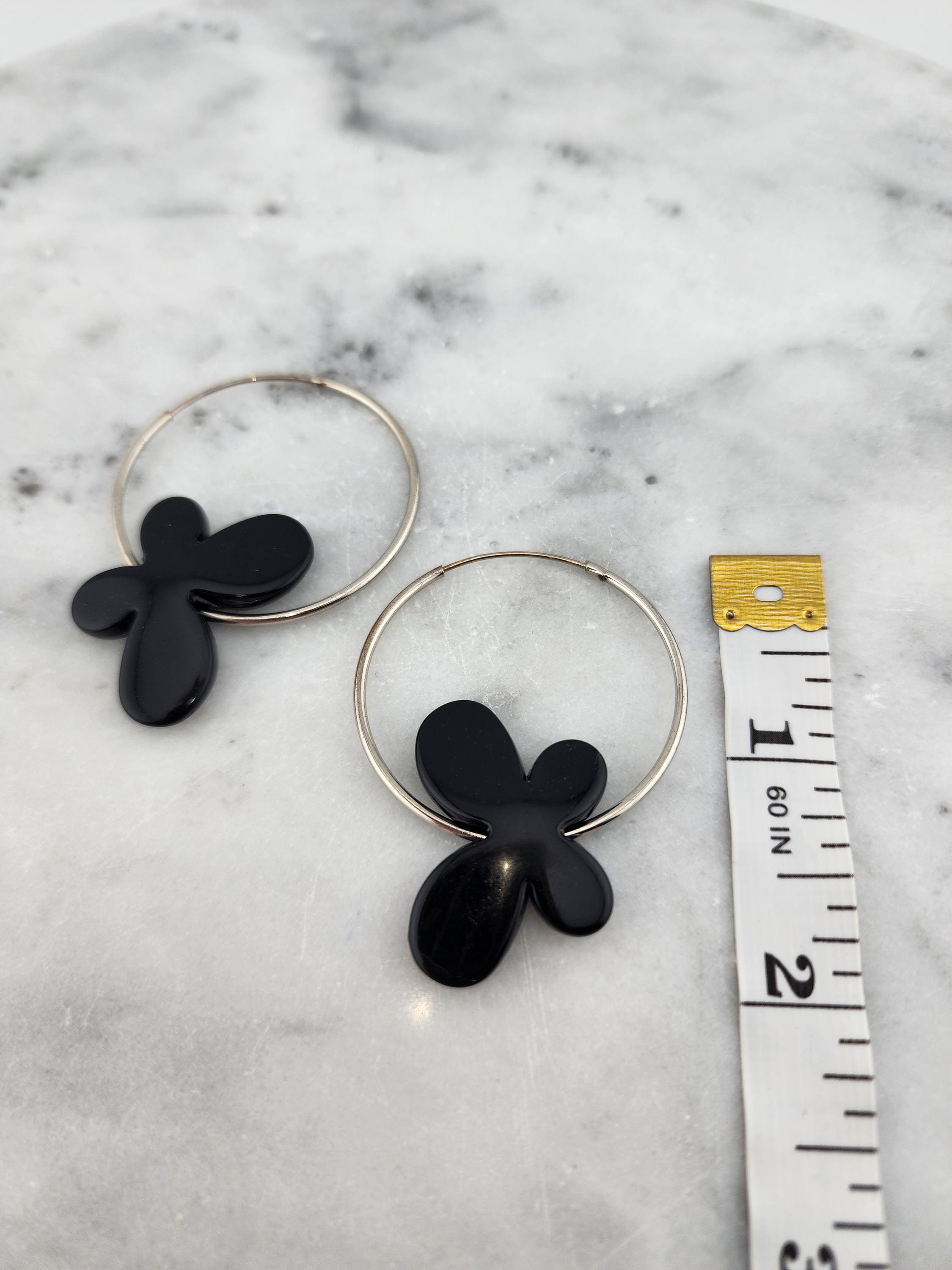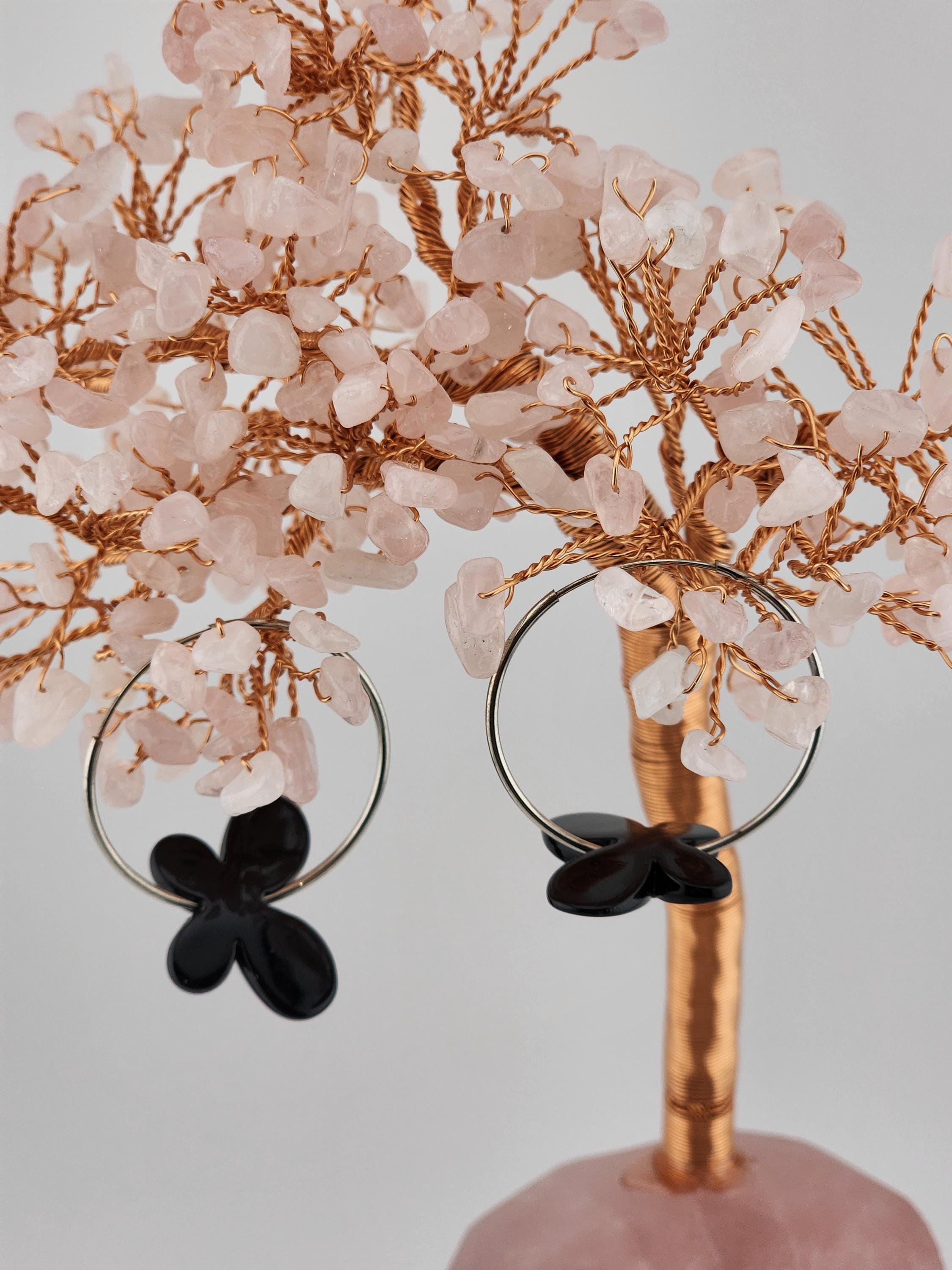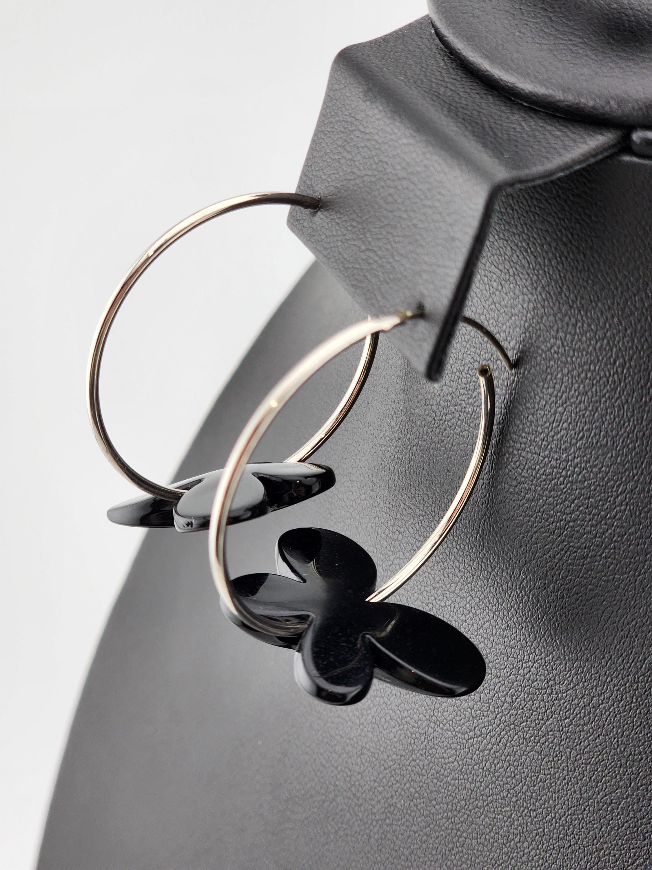 I made these earrings using medium sterling silver hoops and adding black flying spinning butterflies.