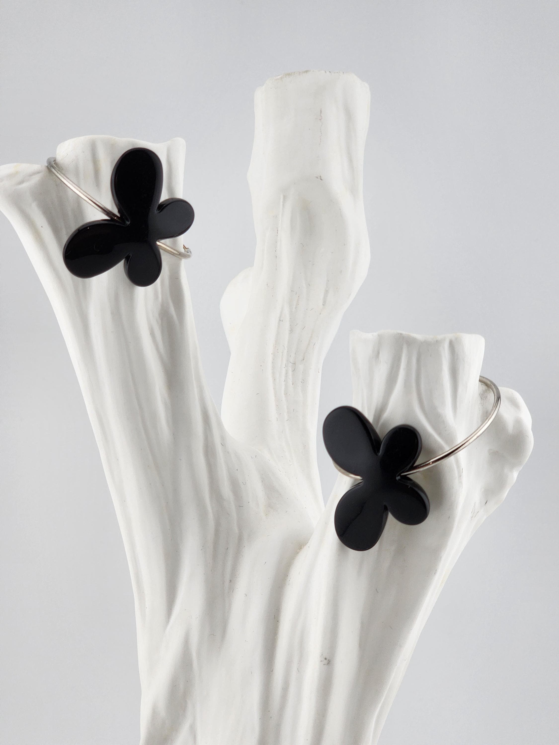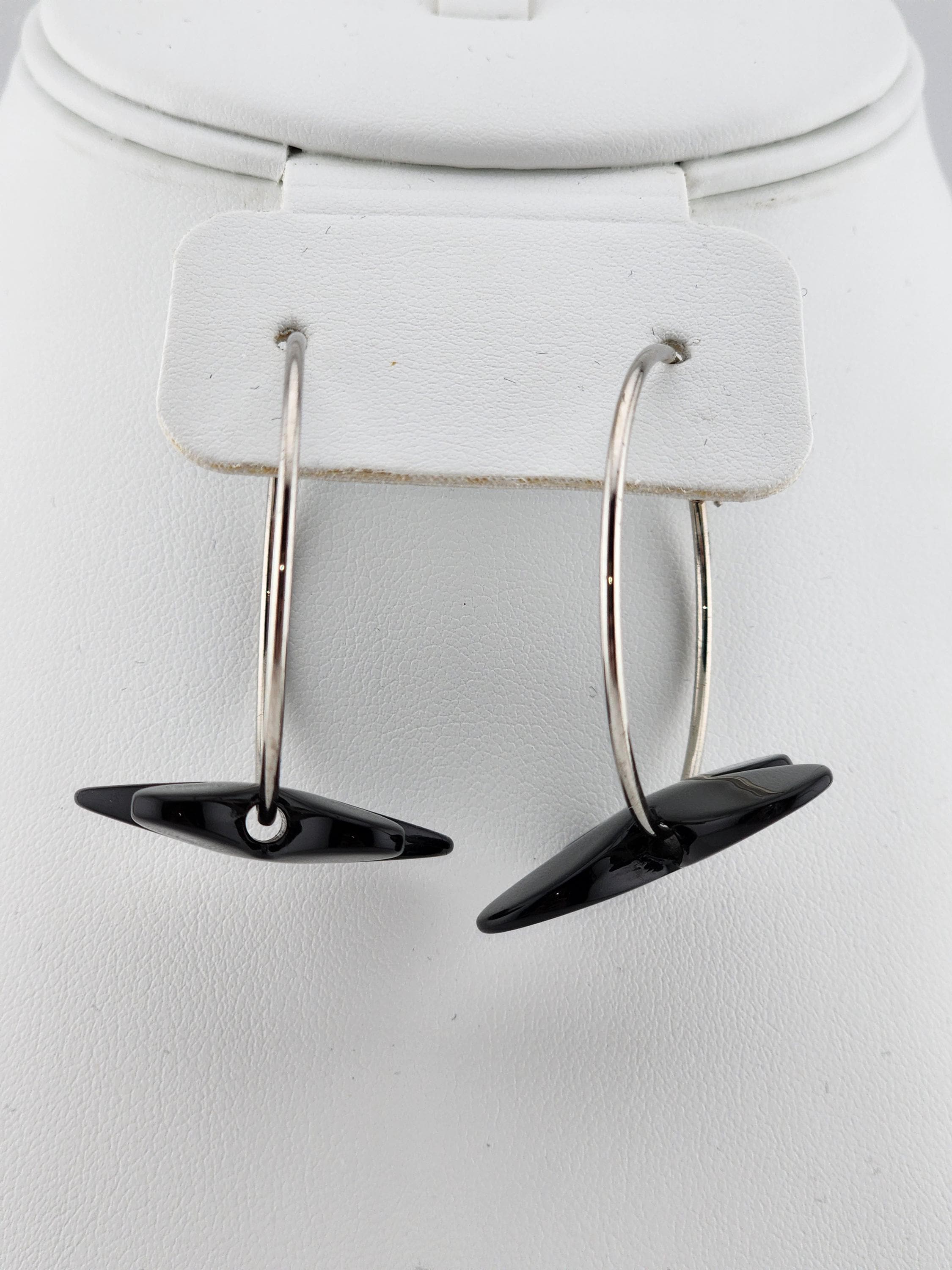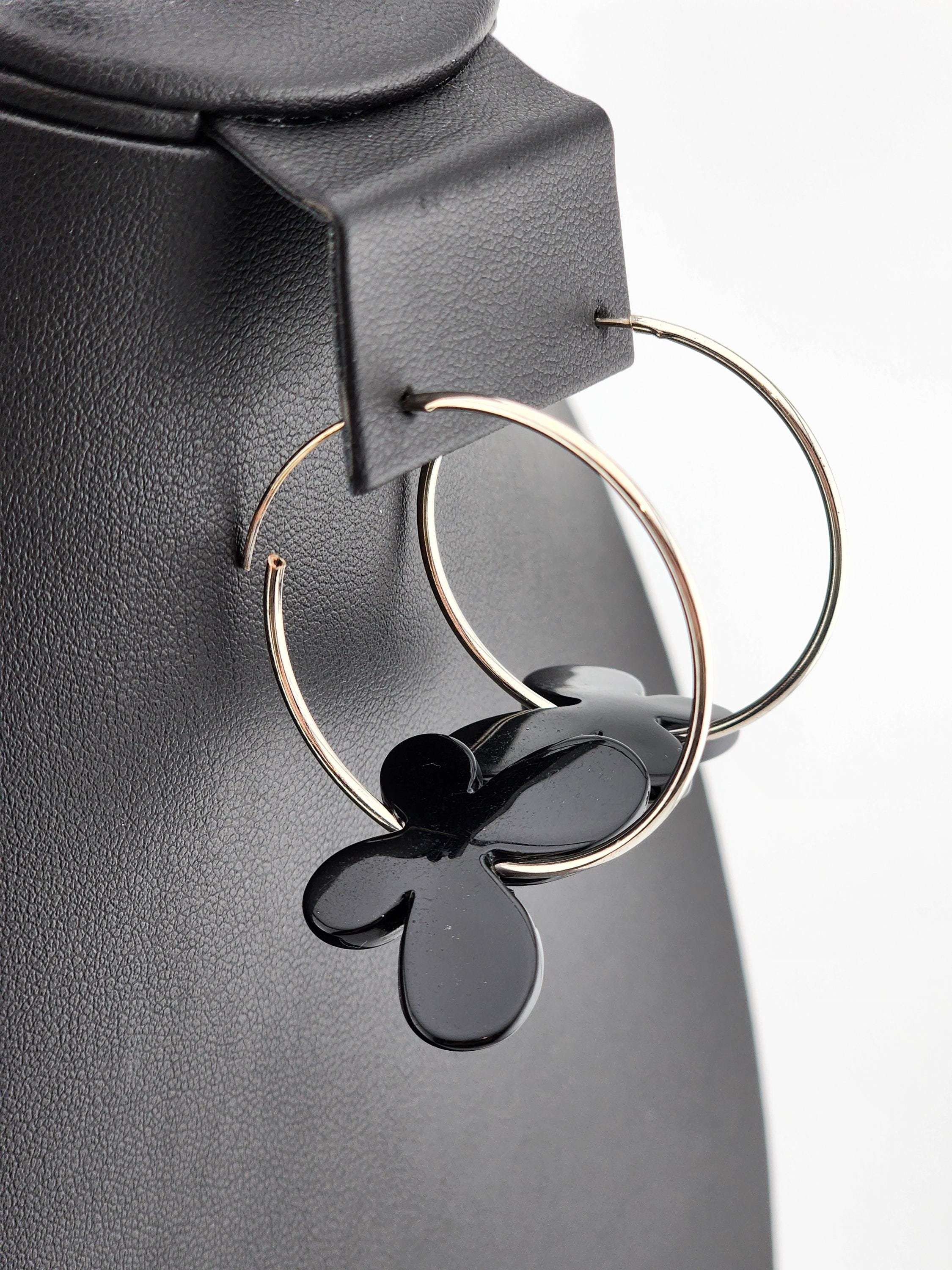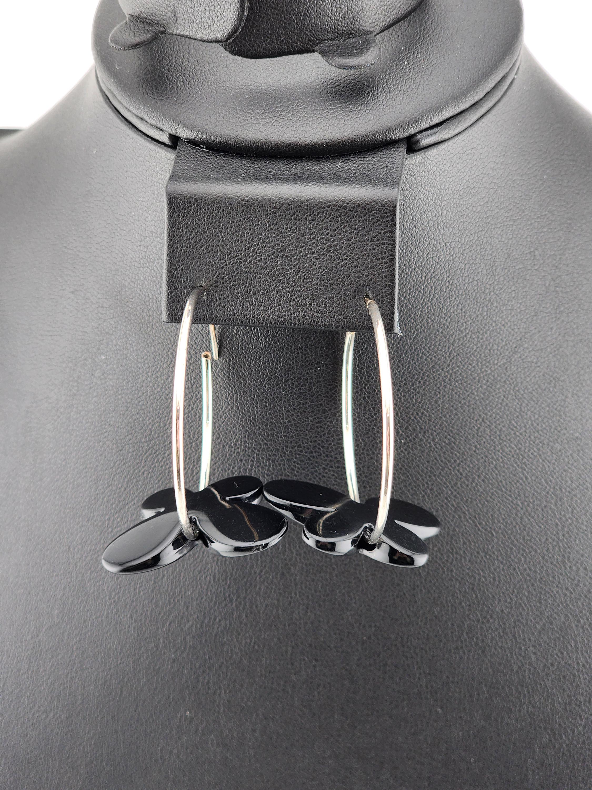 I made these earrings using medium sterling silver hoops and adding black flying spinning butterflies.