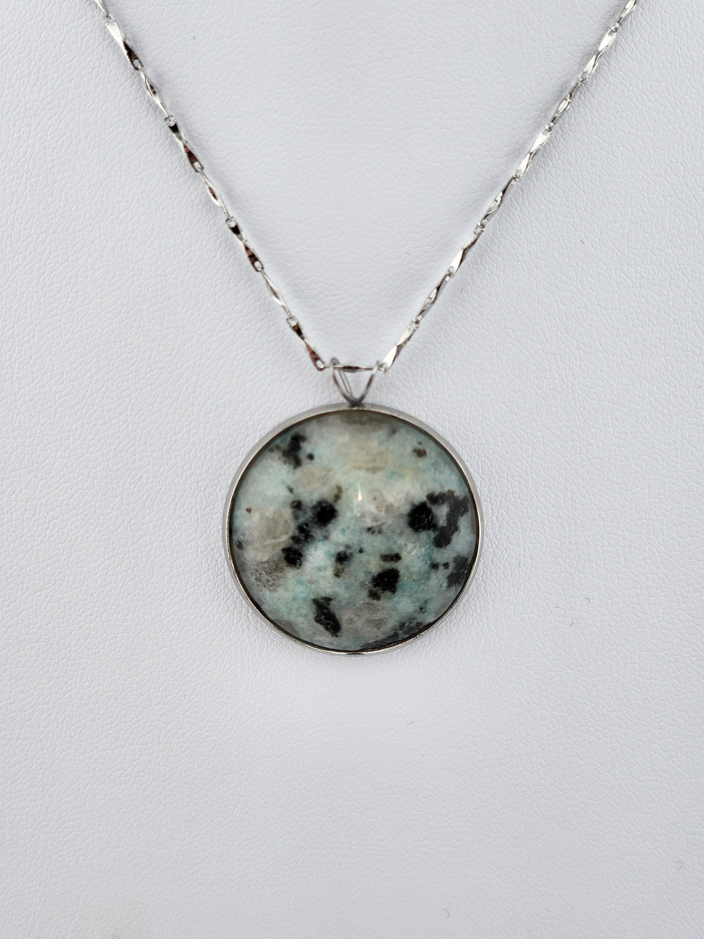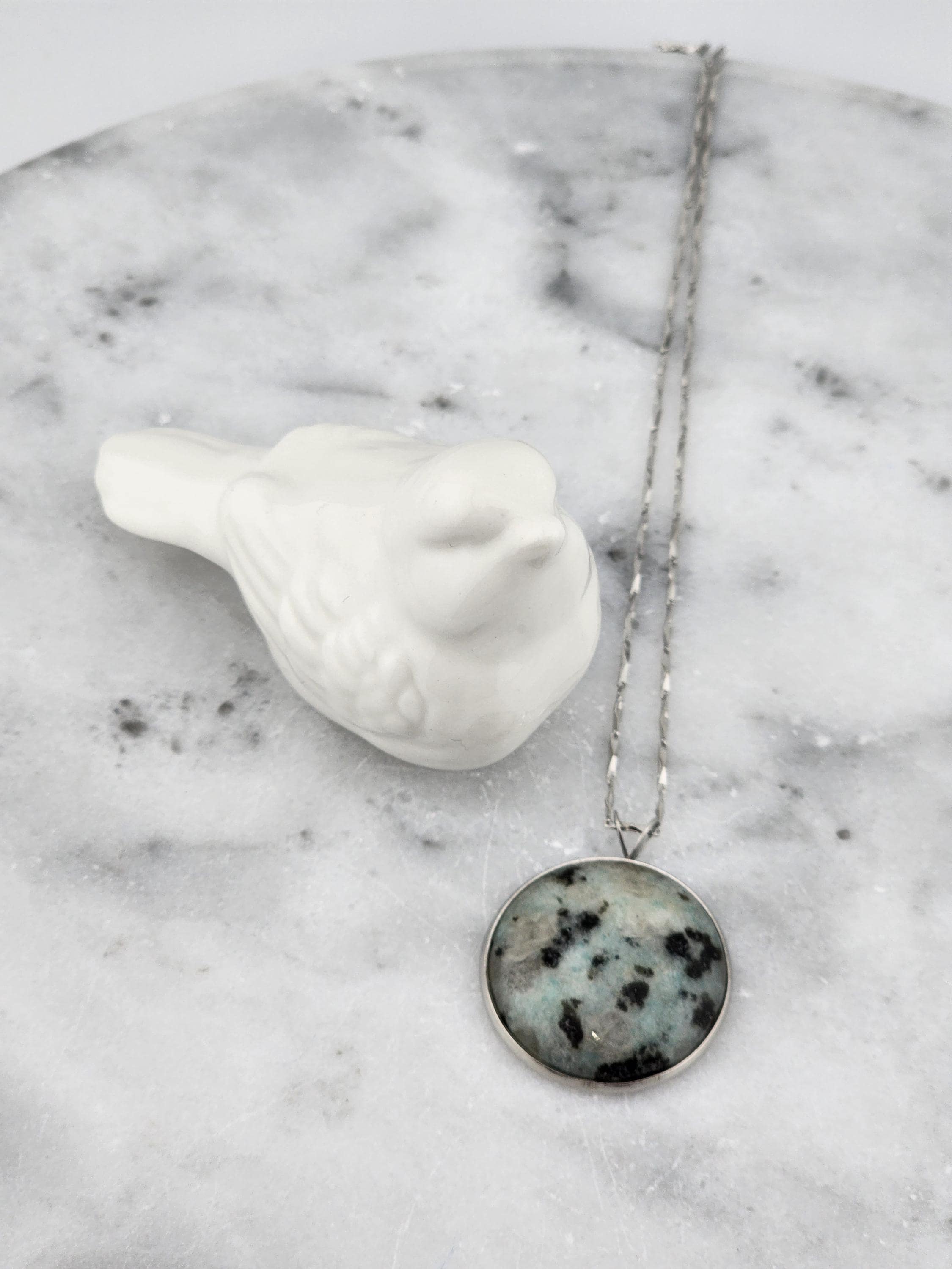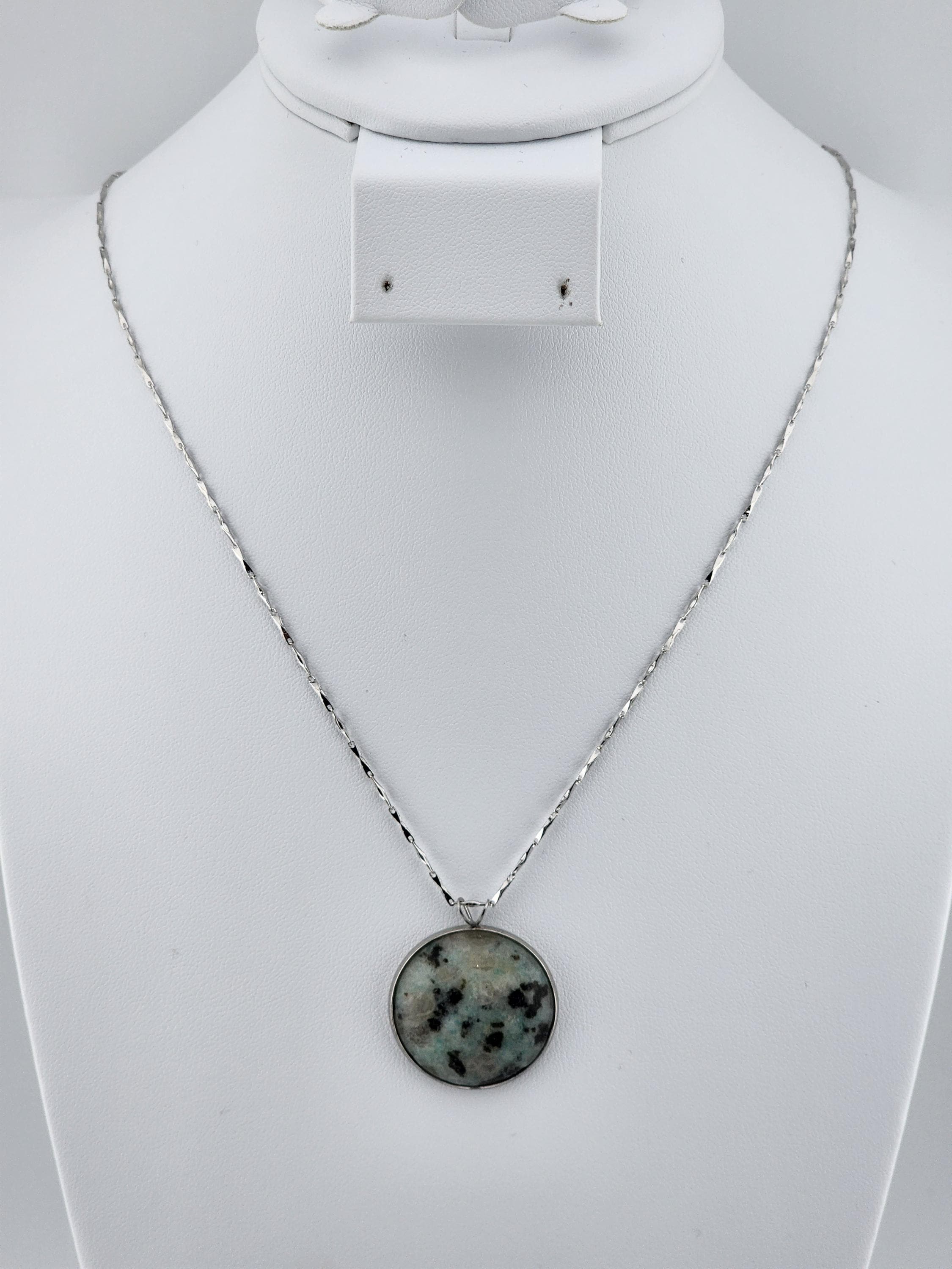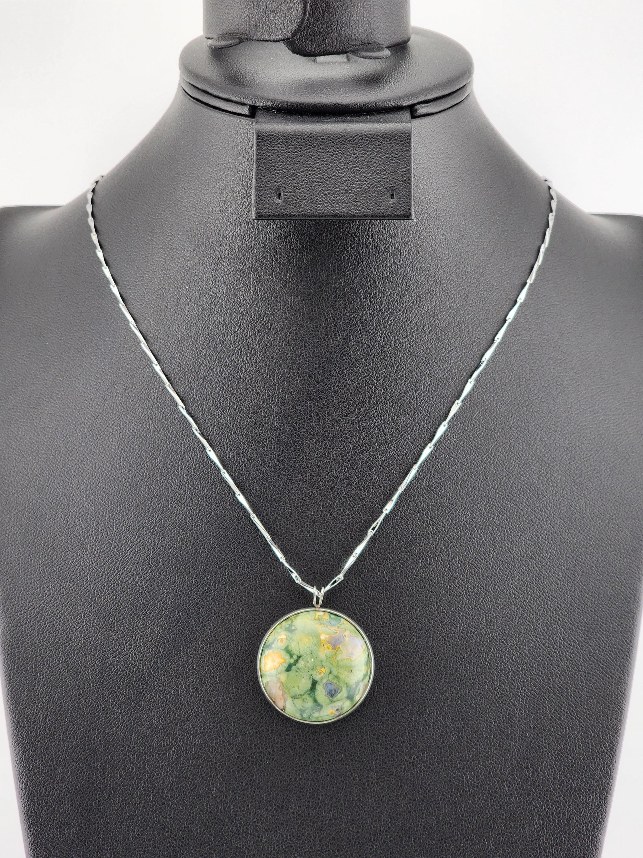 I made these necklaces using ornate sterling silver specialty chain. You have the choice of: #1- a 25mm round purple, green and orange semi-precious gemstone cabochon pendant, or #2- a 25mm round Kiwi Jasper gemstone cabochon pendant * Your purchase will arrive in pretty packaging * Shipping is free within the U.S.