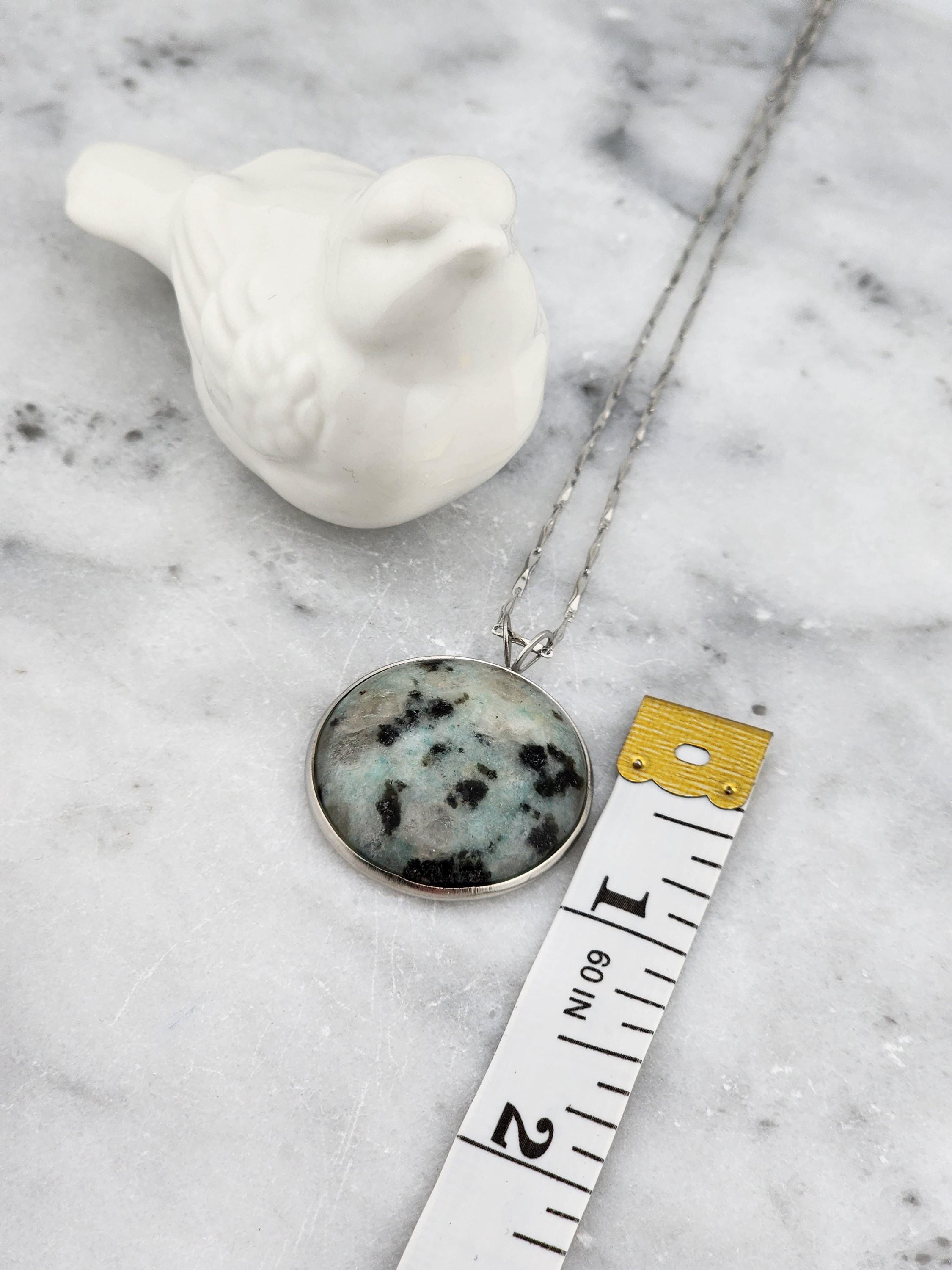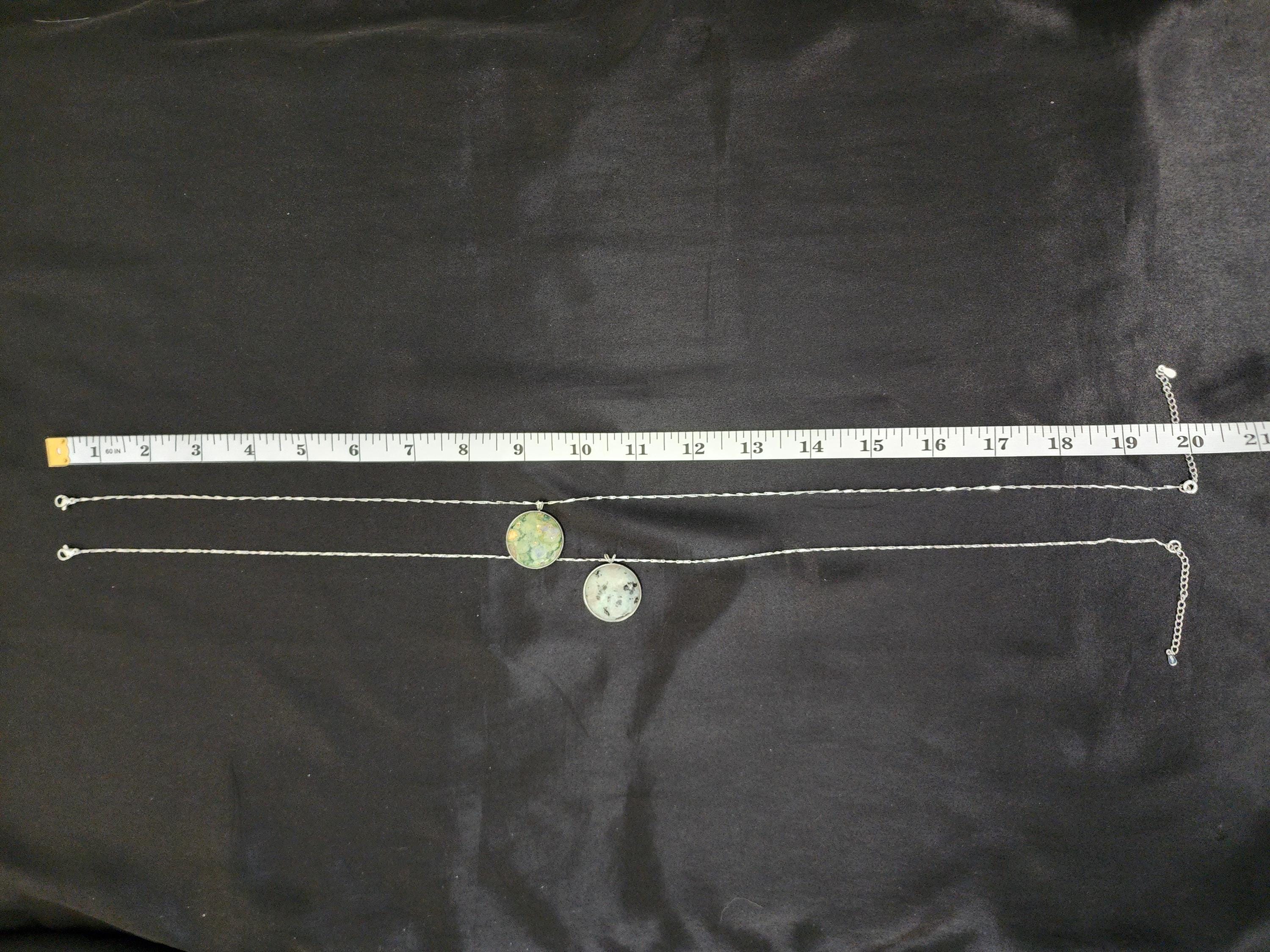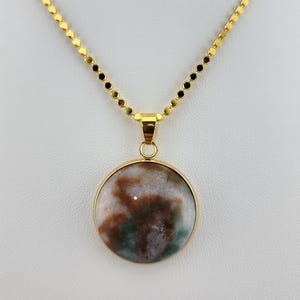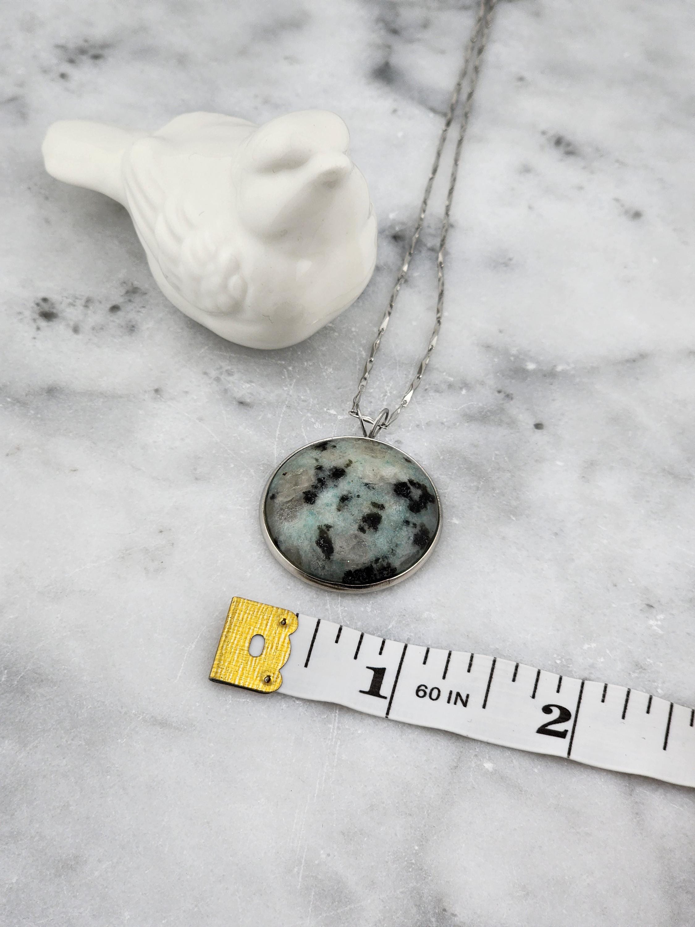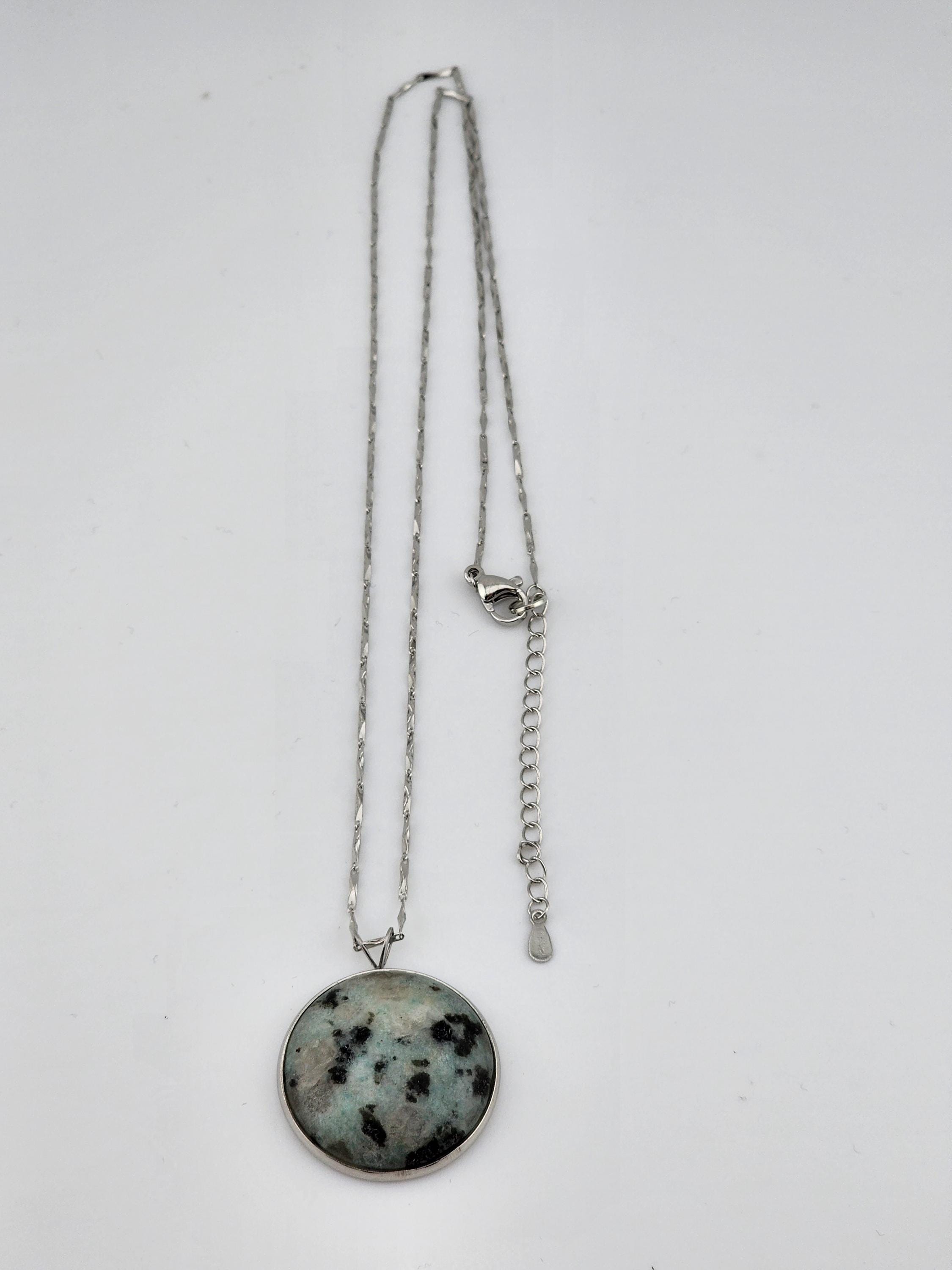 I made these necklaces using ornate sterling silver specialty chain. You have the choice of: #1- a 25mm round purple, green and orange semi-precious gemstone cabochon pendant, or #2- a 25mm round Kiwi Jasper gemstone cabochon pendant * Your purchase will arrive in pretty packaging * Shipping is free within the U.S.