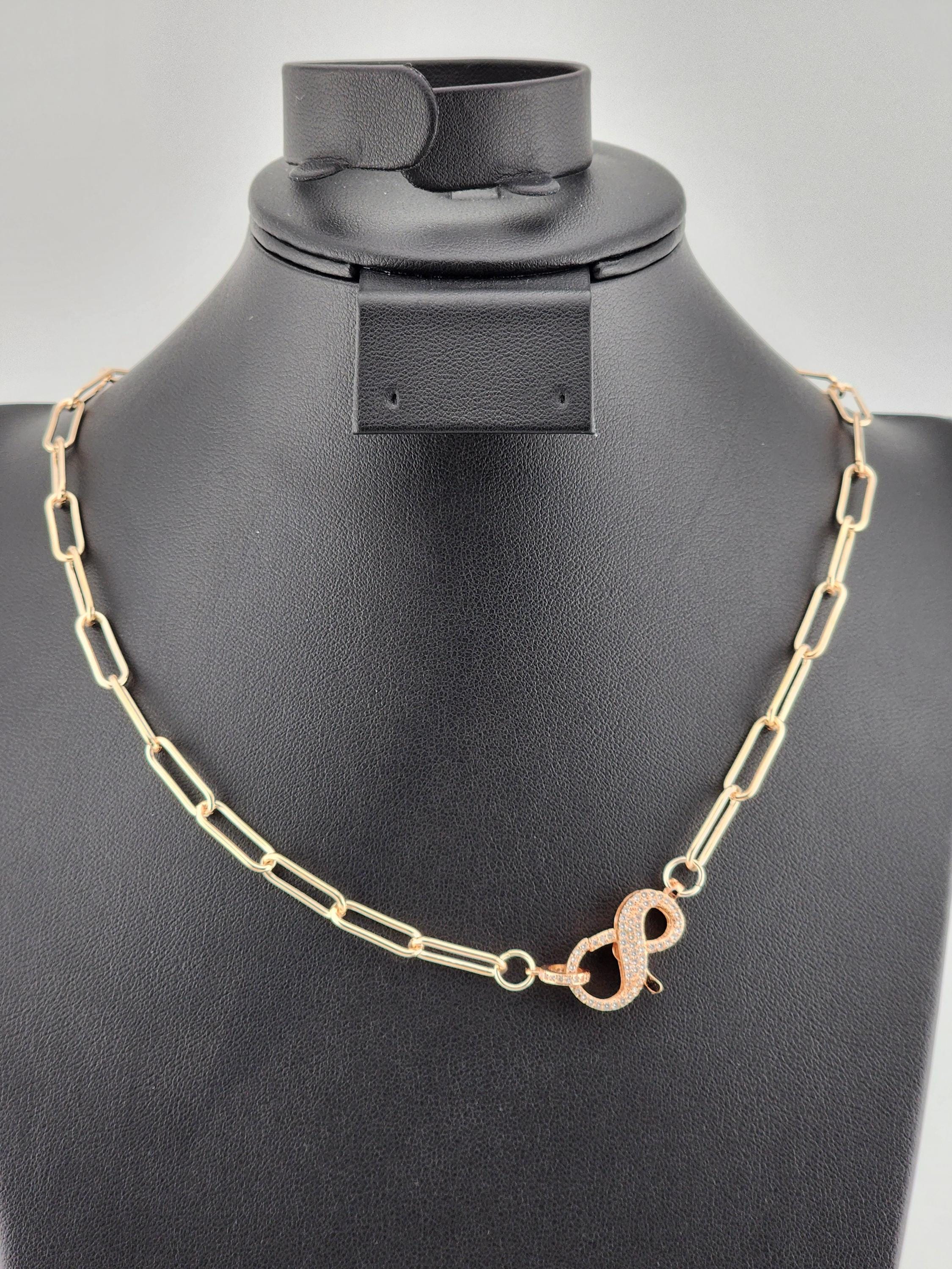 I made this necklace using rose gold plated paper clip chain and rose gold filled connecting rings. I gave it a large decorative crystal studded lobster clasp that is meant to be worn anywhere on the neck. * Your purchase will arrive in pretty packaging * Shipping is included