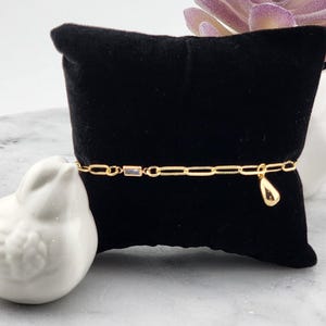 I made these earrings using tarnish resistant 18k gold plated threader hooks and added 24k gold plated brass teardrop shaped charms with 24k gold plated connecting rings.