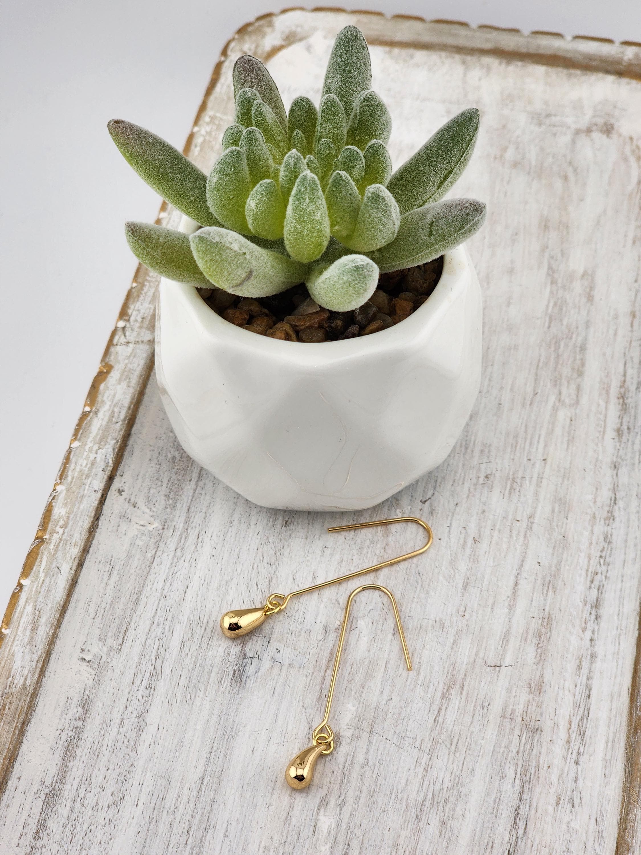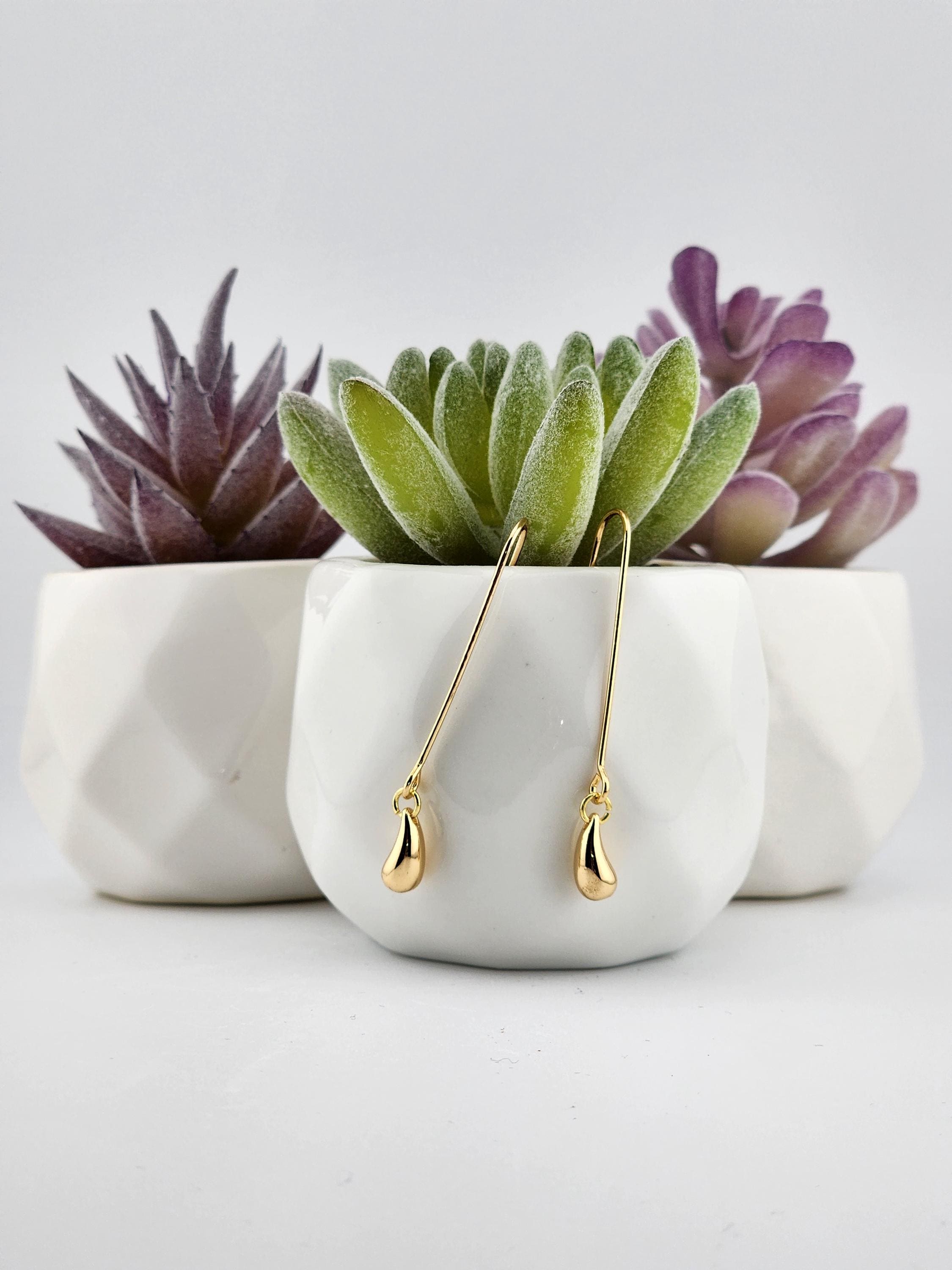 I made these earrings using tarnish resistant 18k gold plated threader hooks and added 24k gold plated brass teardrop shaped charms with 24k gold plated connecting rings. * Your purchase will arrive in pretty packaging * Shipping is free within the U.S.