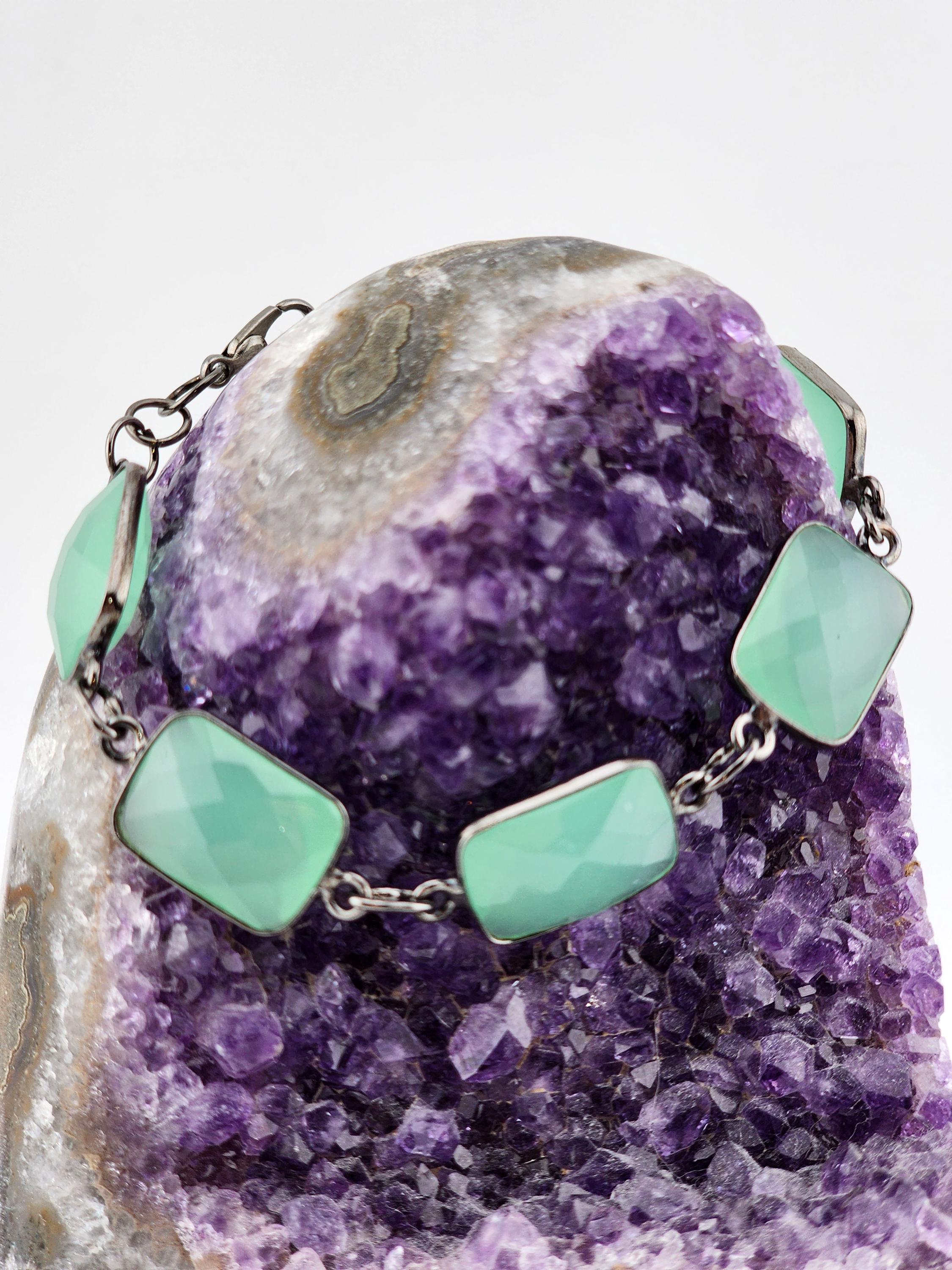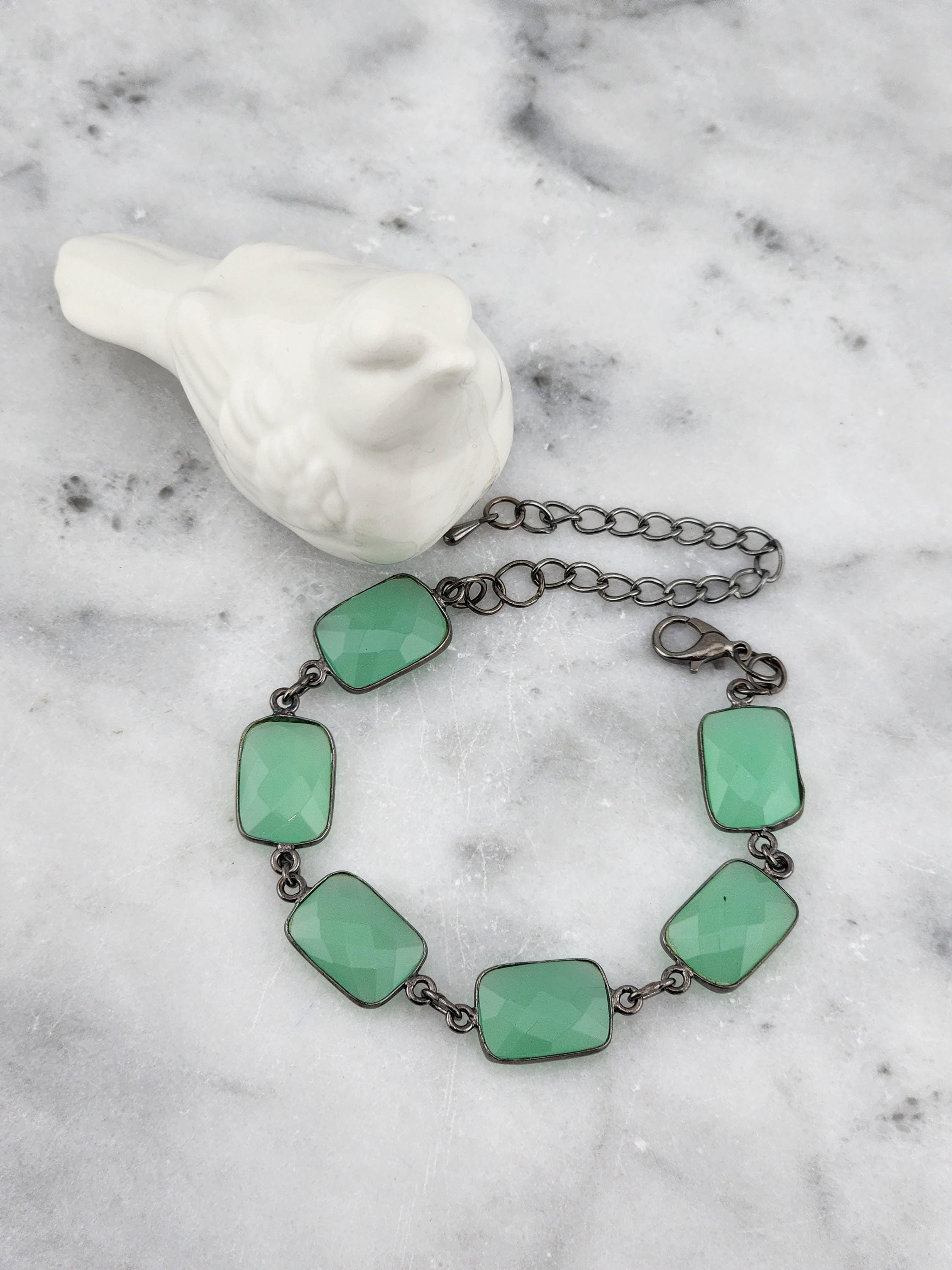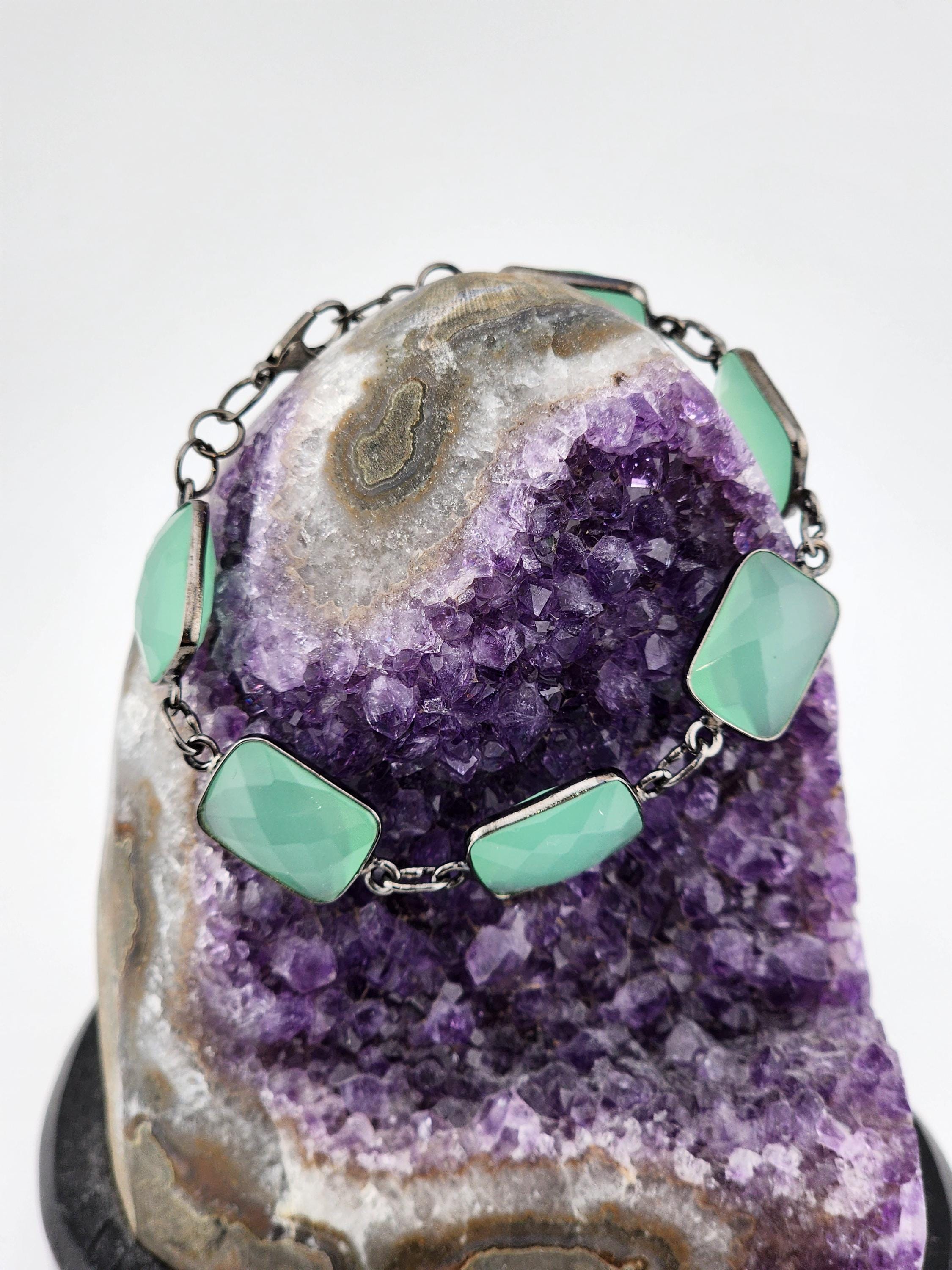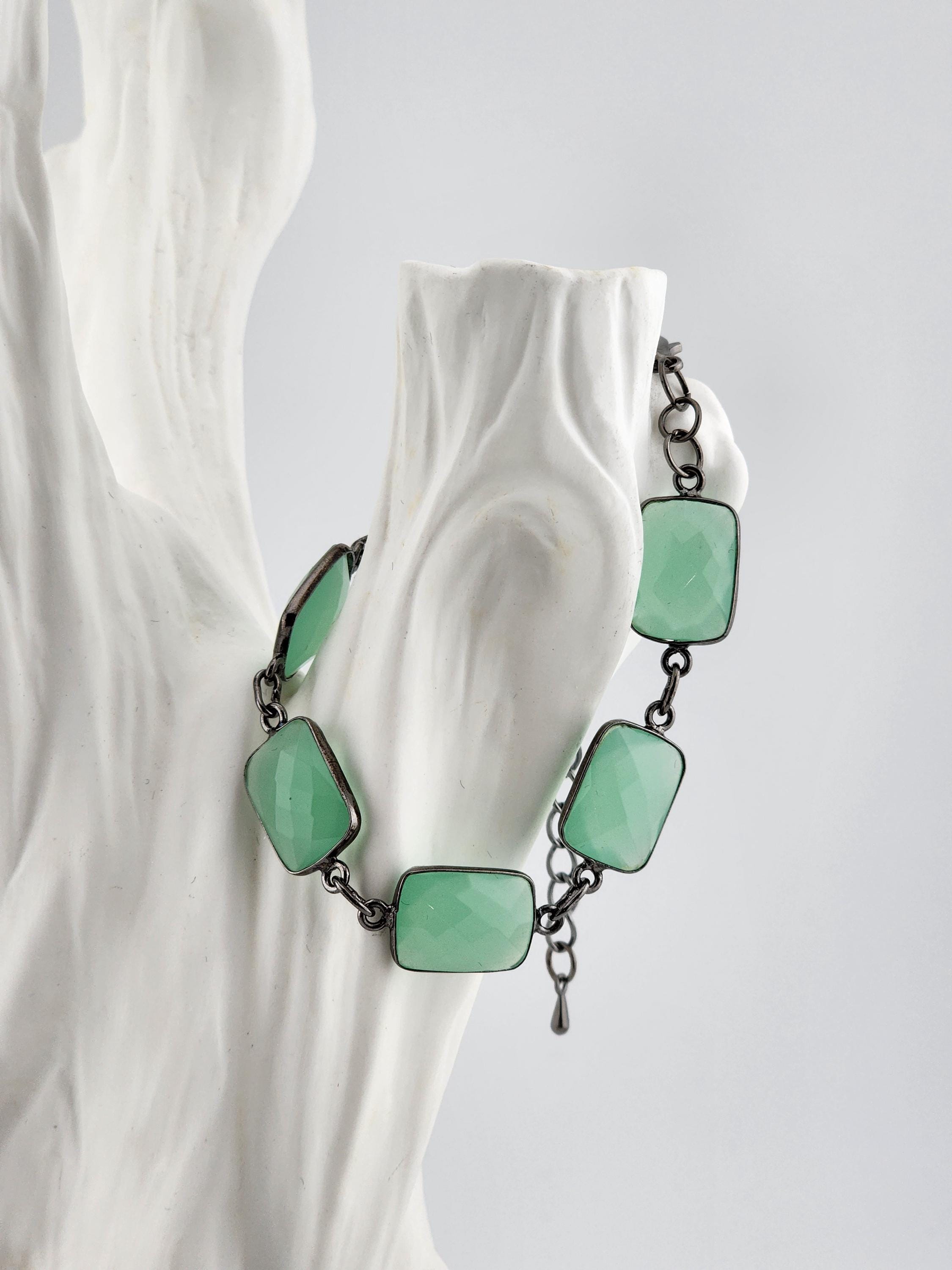 I made this stunning bracelet using faceted natural aqua Chalcedony briolette shaped black plated links, handcrafted in India. It has a black lobster clasp and an extender chain. * Your purchase will arrive in pretty packaging * Shipping is free within the U.S.