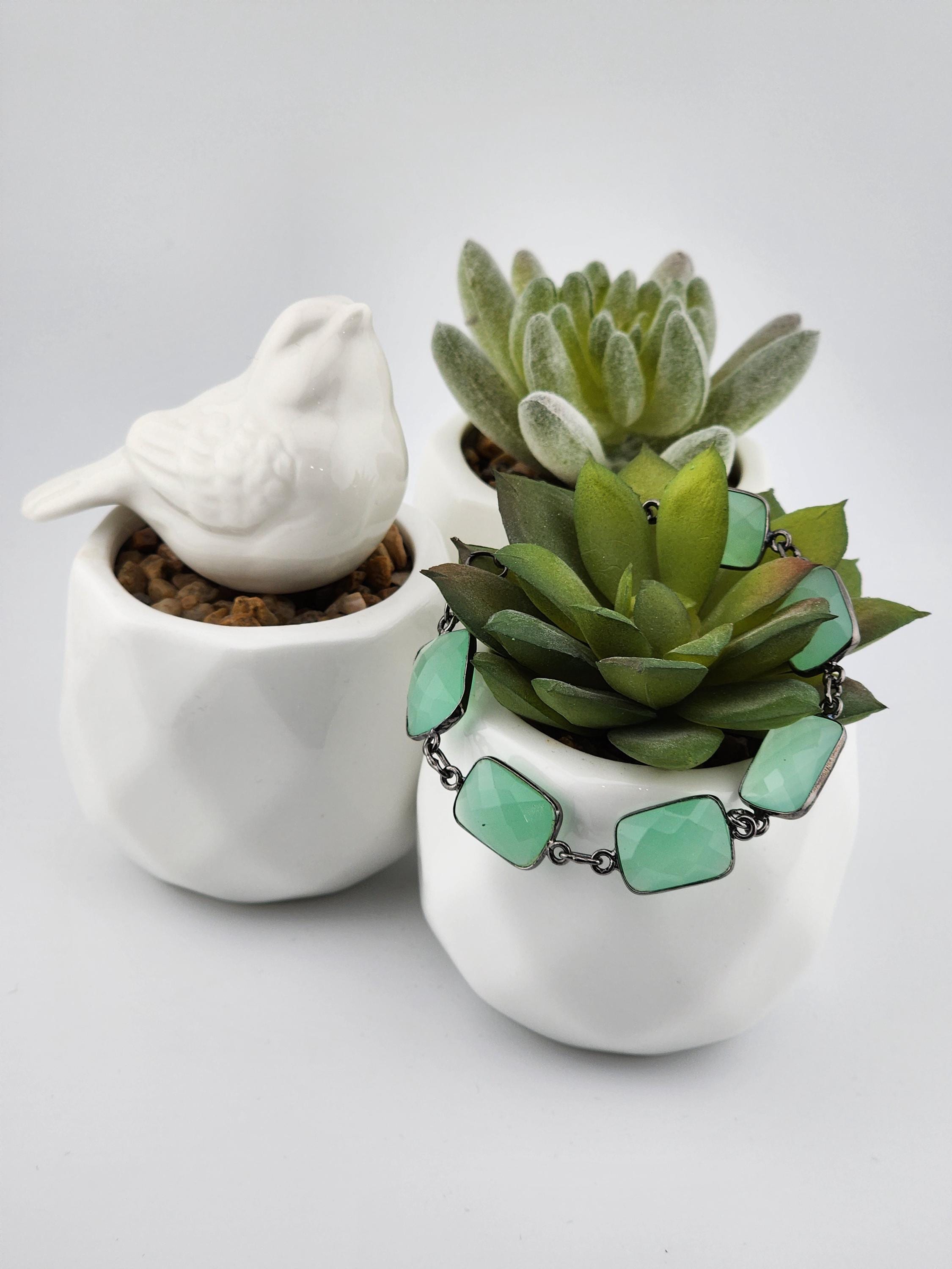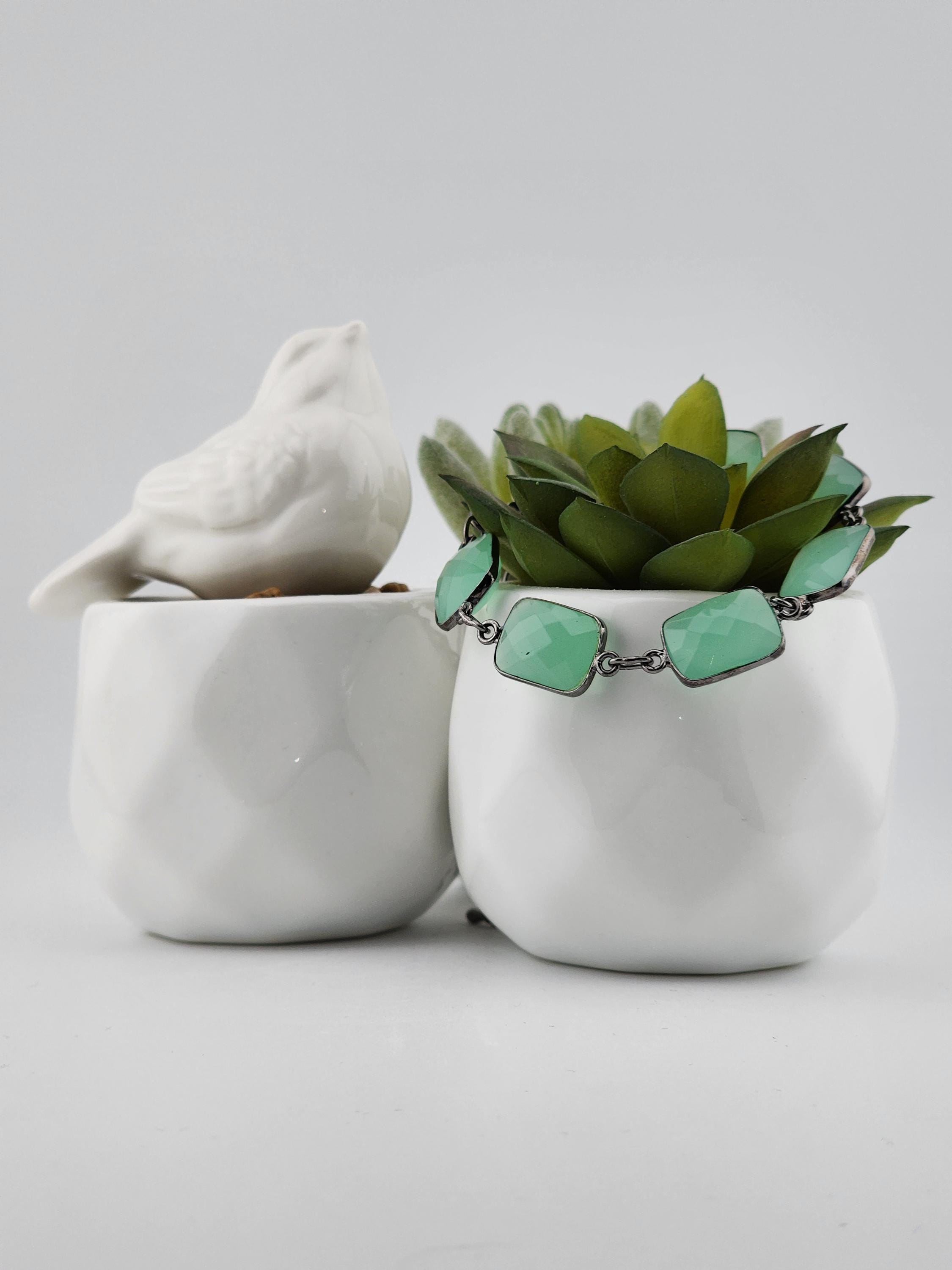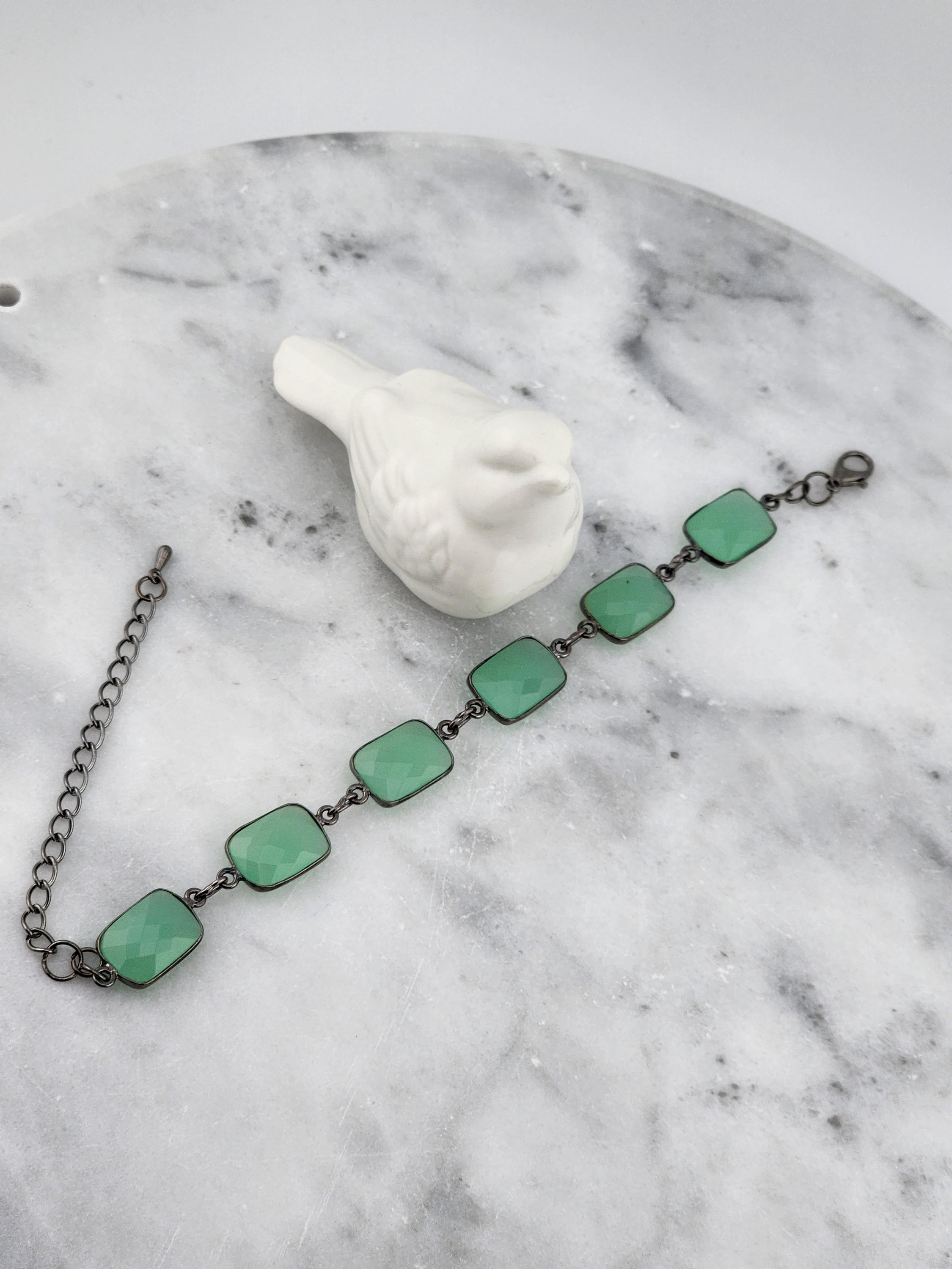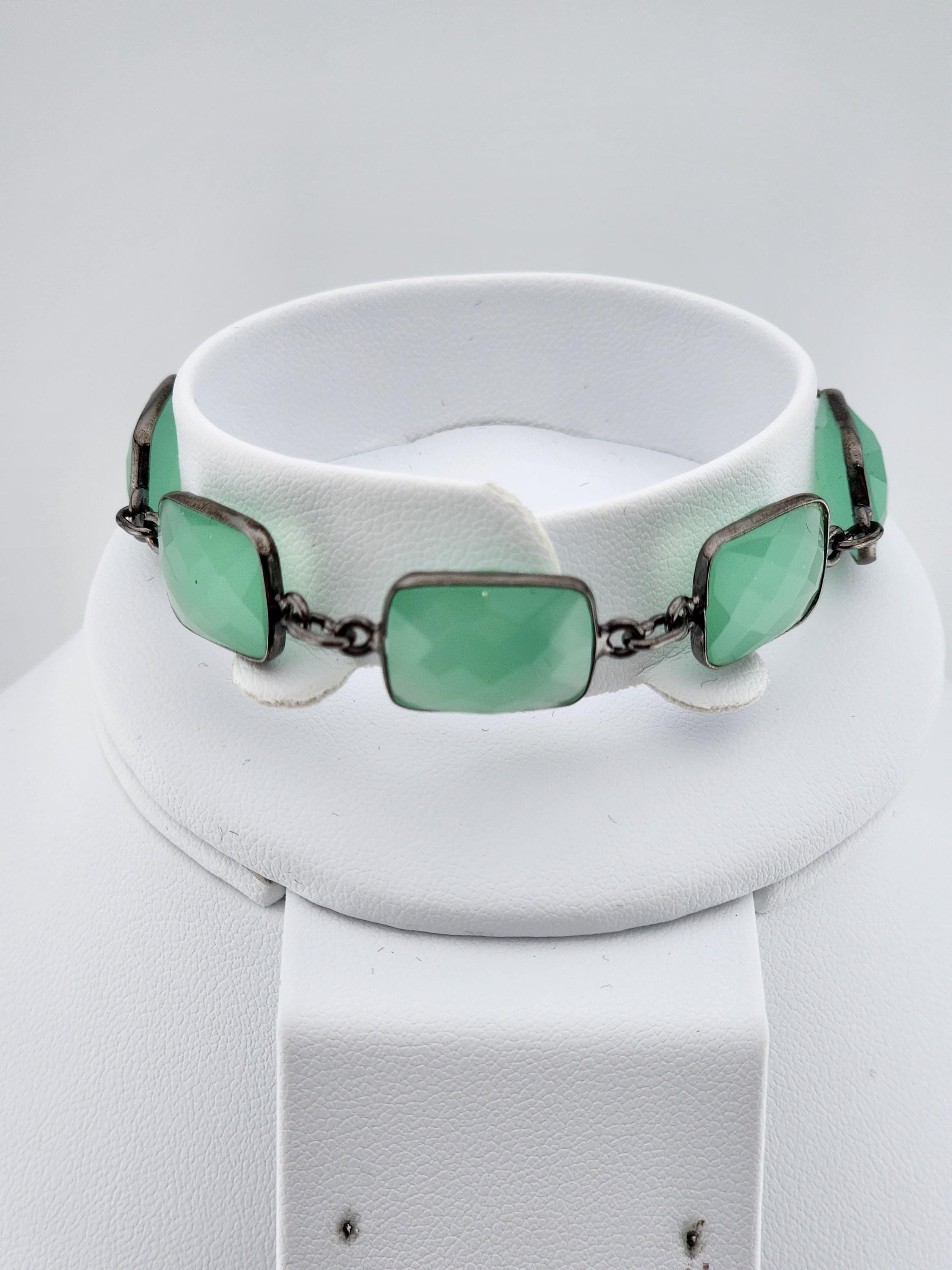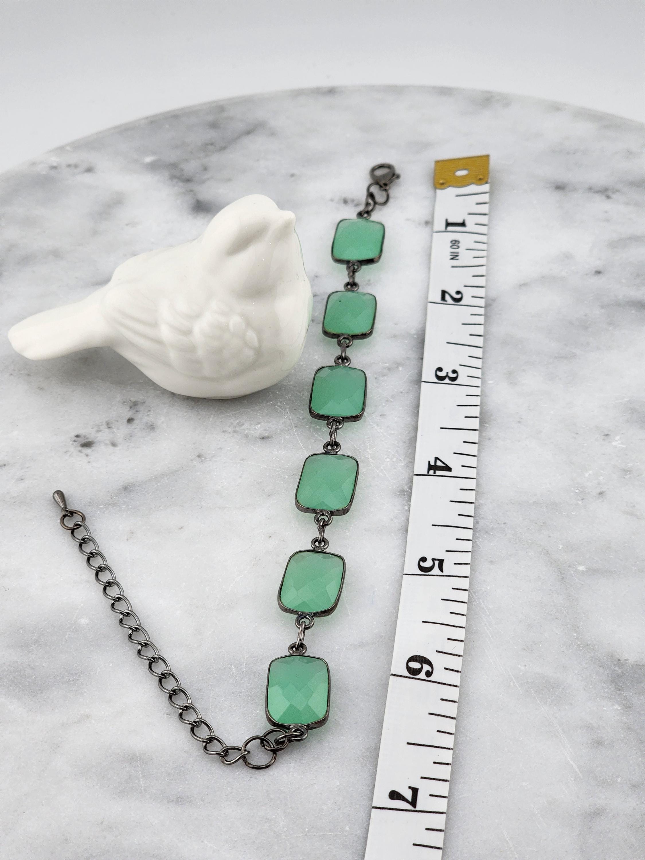I made this stunning bracelet using faceted natural aqua Chalcedony briolette shaped black plated links, handcrafted in India. It has a black lobster clasp and an extender chain. * Your purchase will arrive in pretty packaging * Shipping is free within the U.S.