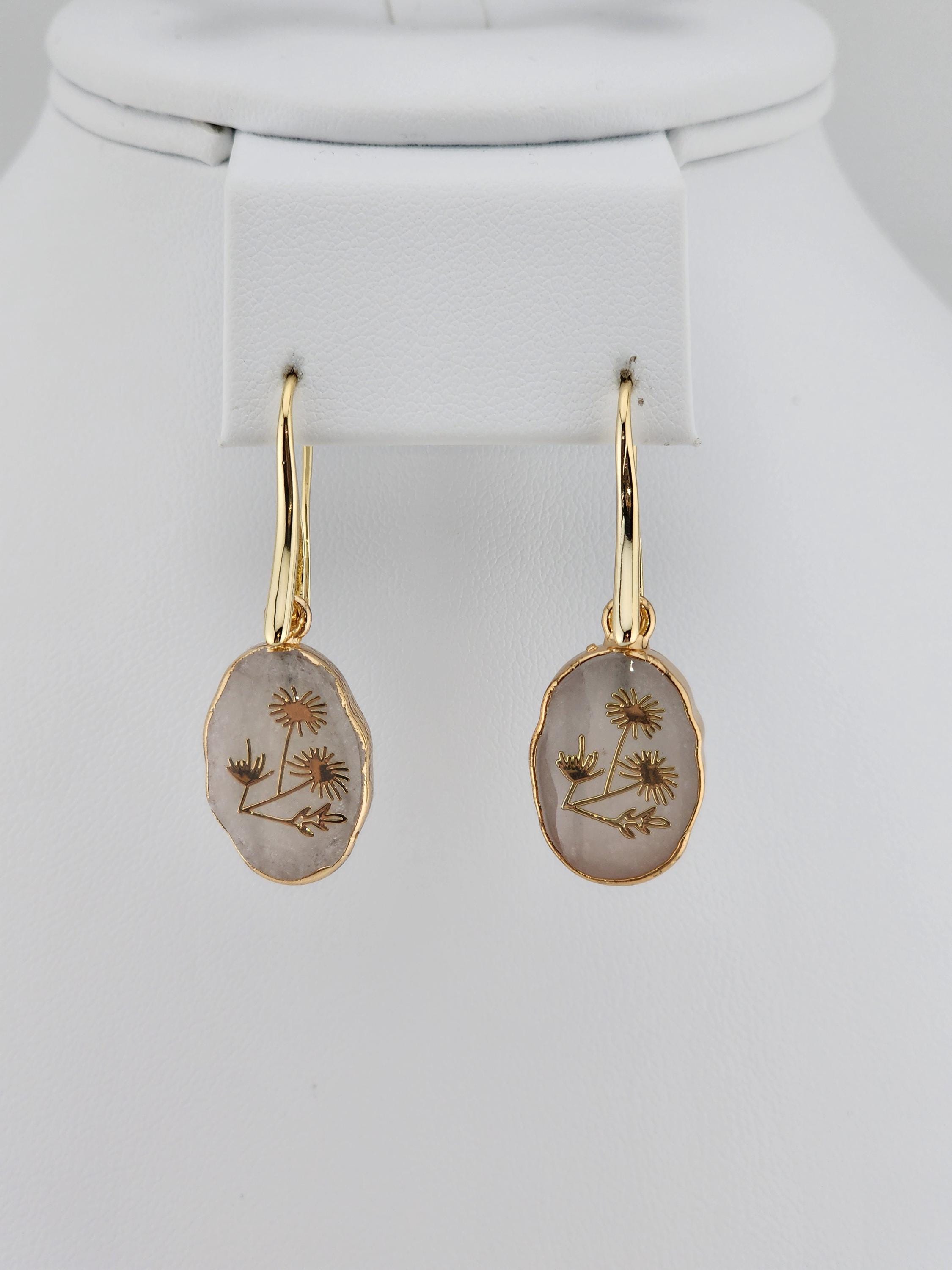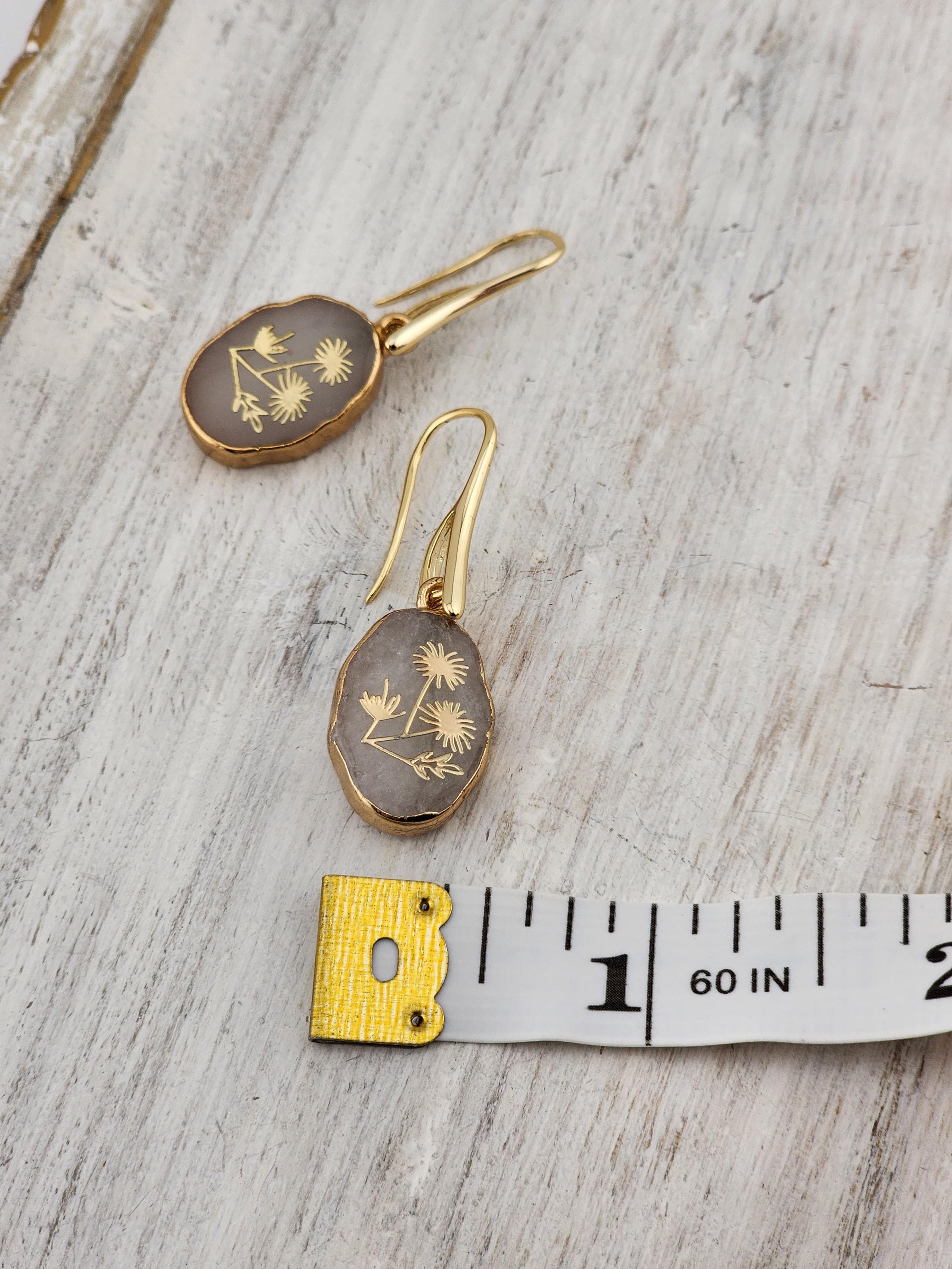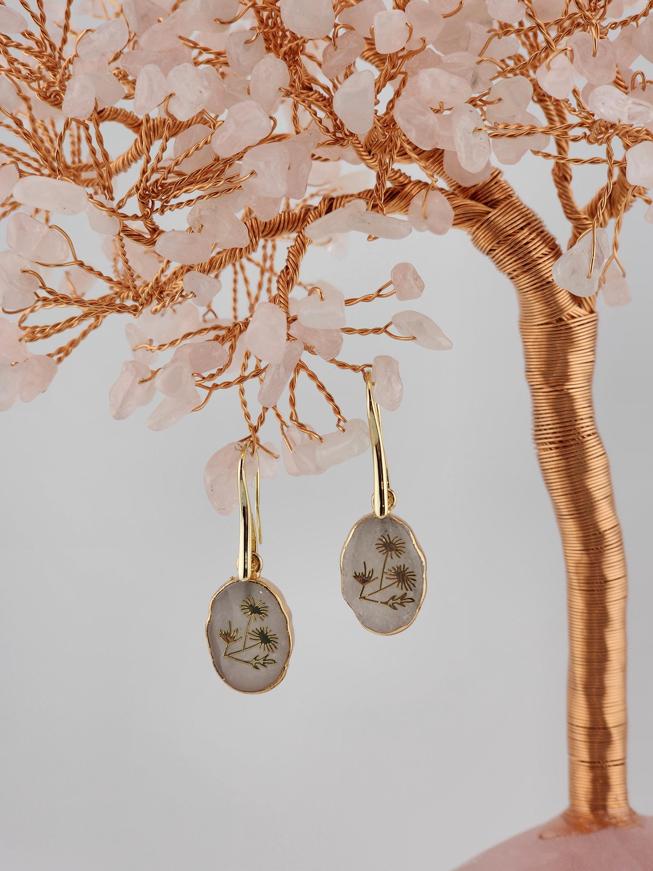 I made these earrings using tarnish resistant 18k gold plated brass hooks. Then I added oval shaped quartz crystals wrapped in gold brass and gilded gold wildflowers embellished on top. * Your purchase will arrive in pretty packaging * Shipping is free within the U.S.
