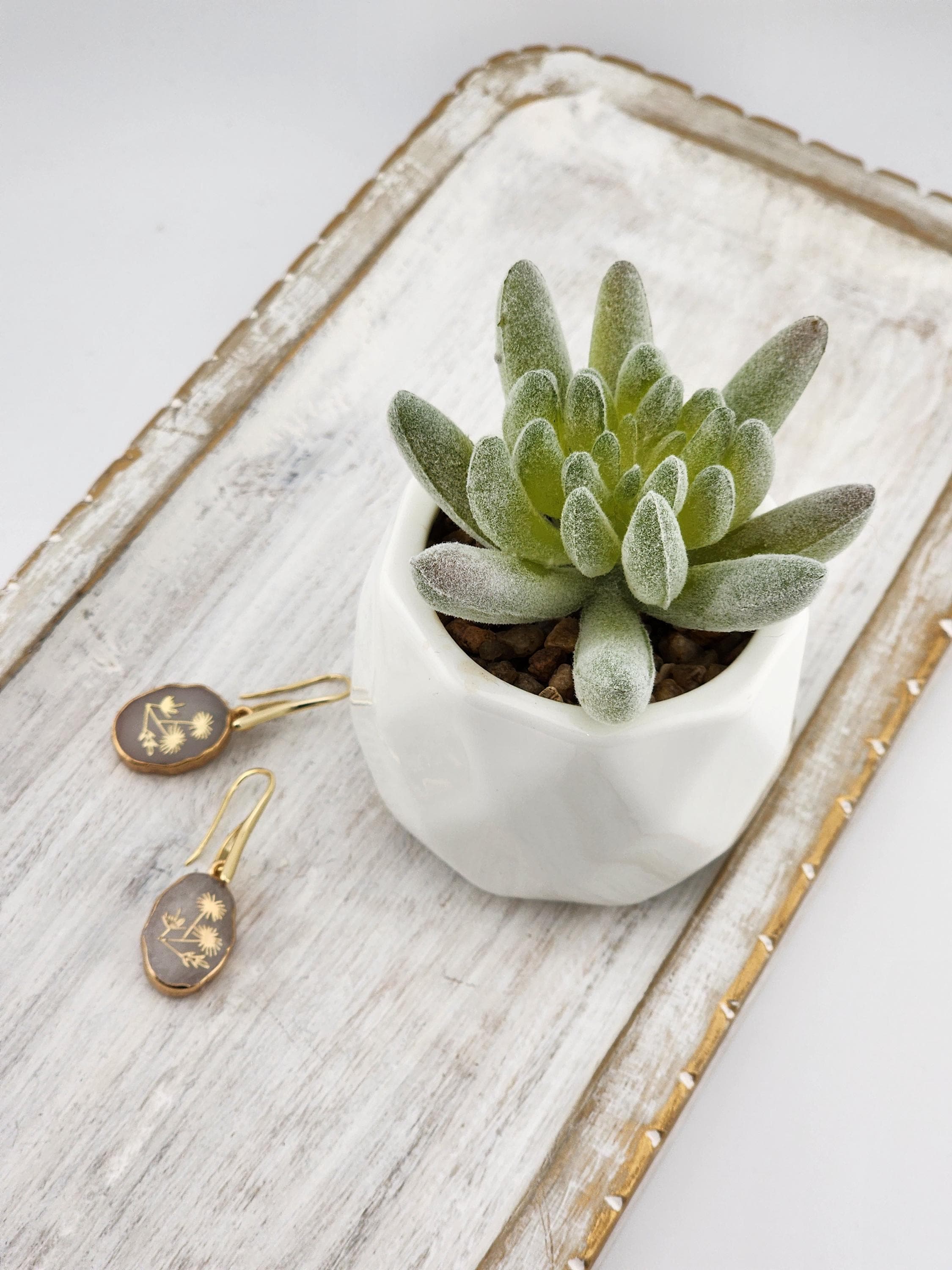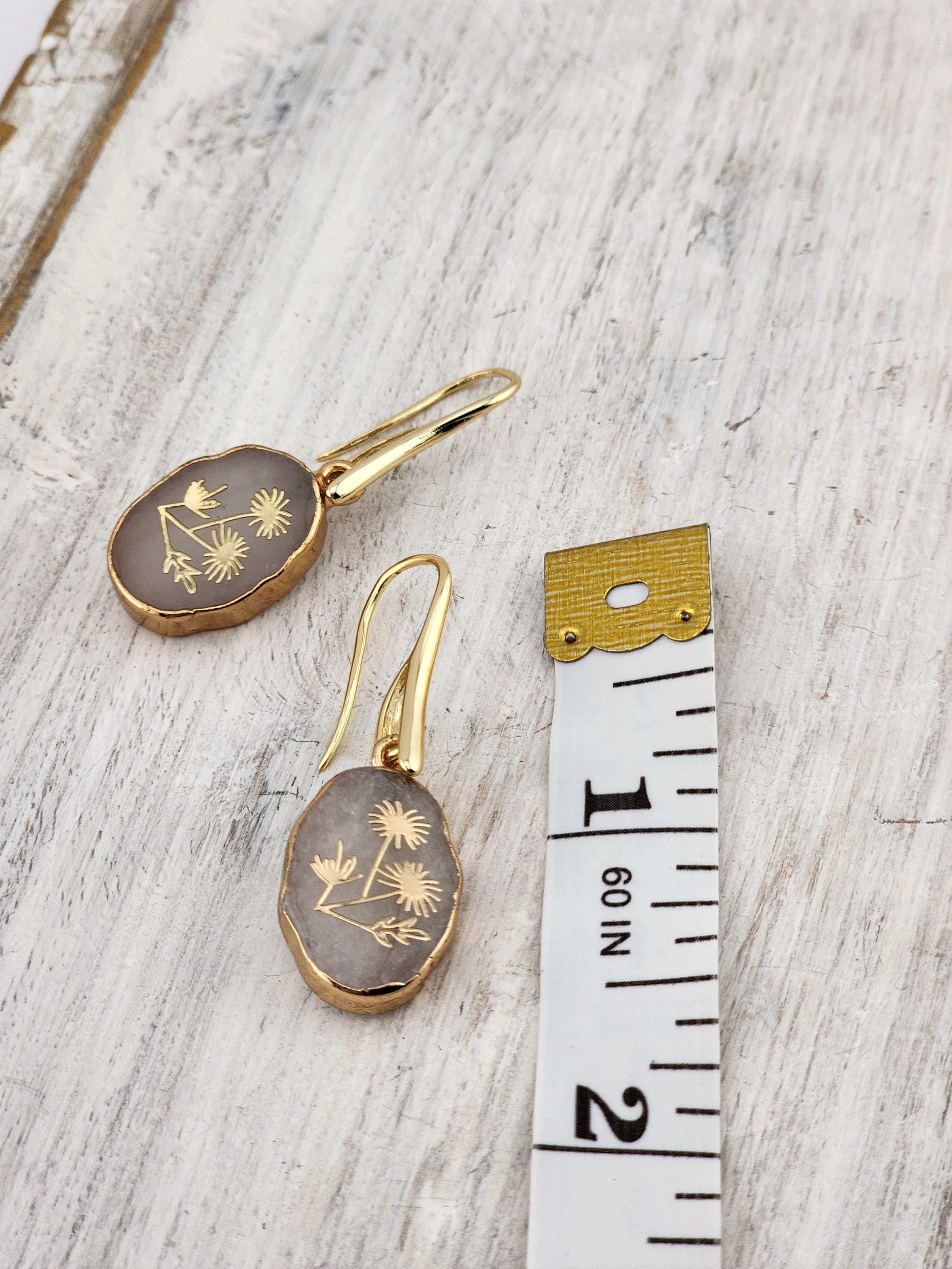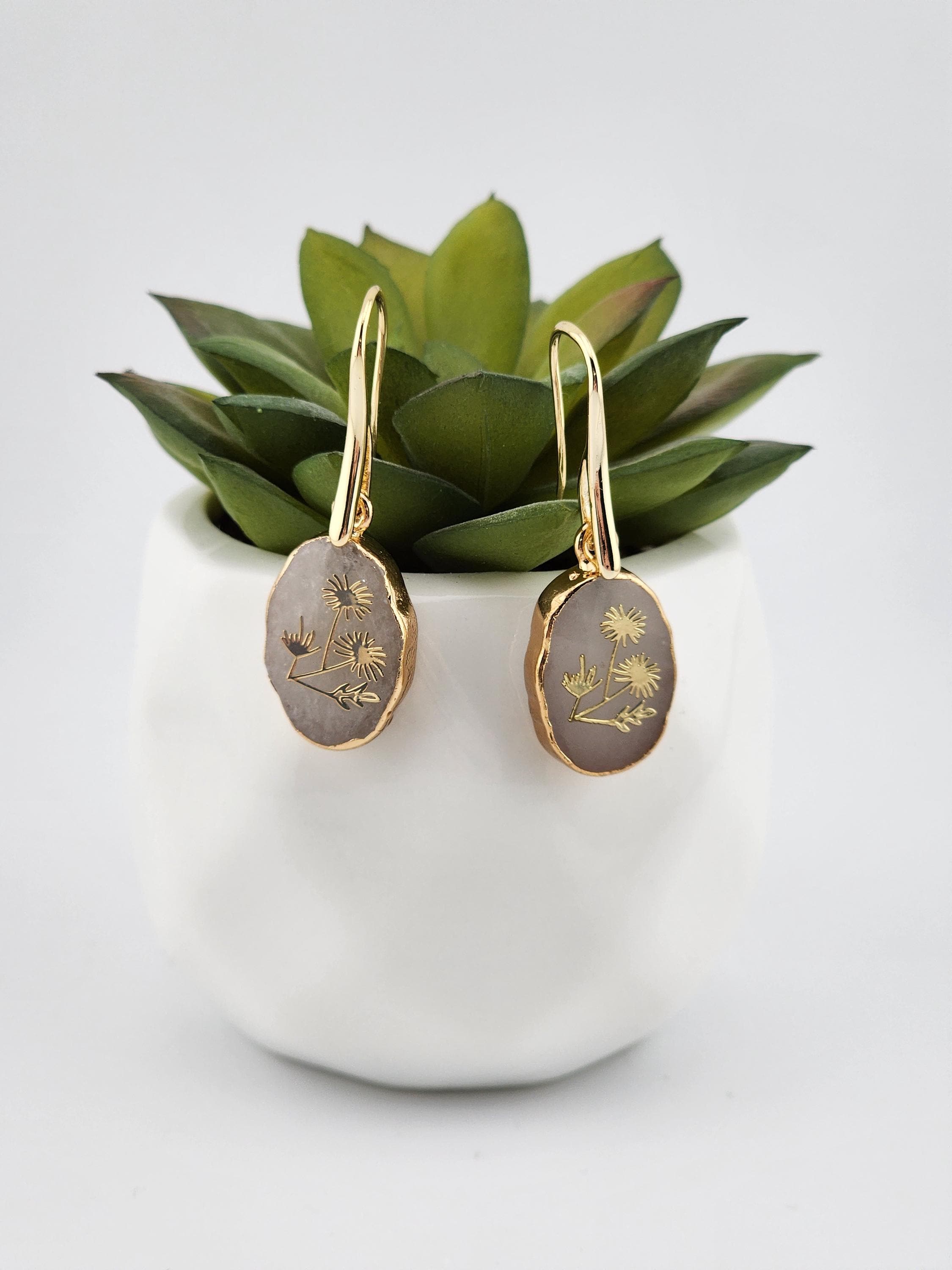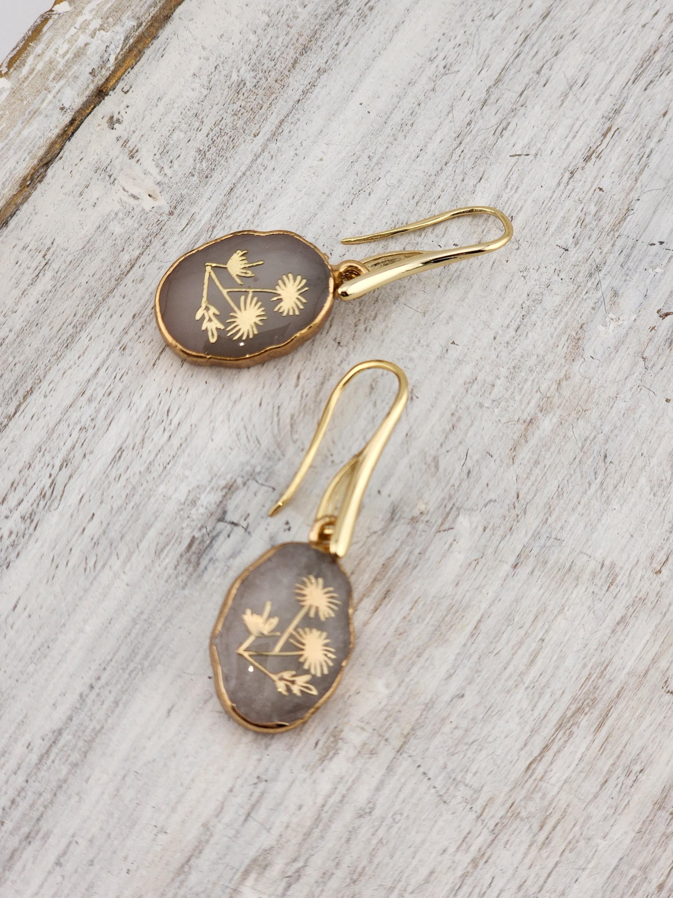 I made these earrings using tarnish resistant 18k gold plated brass hooks. Then I added oval shaped quartz crystals wrapped in gold brass and gilded gold wildflowers embellished on top. * Your purchase will arrive in pretty packaging * Shipping is free within the U.S.
