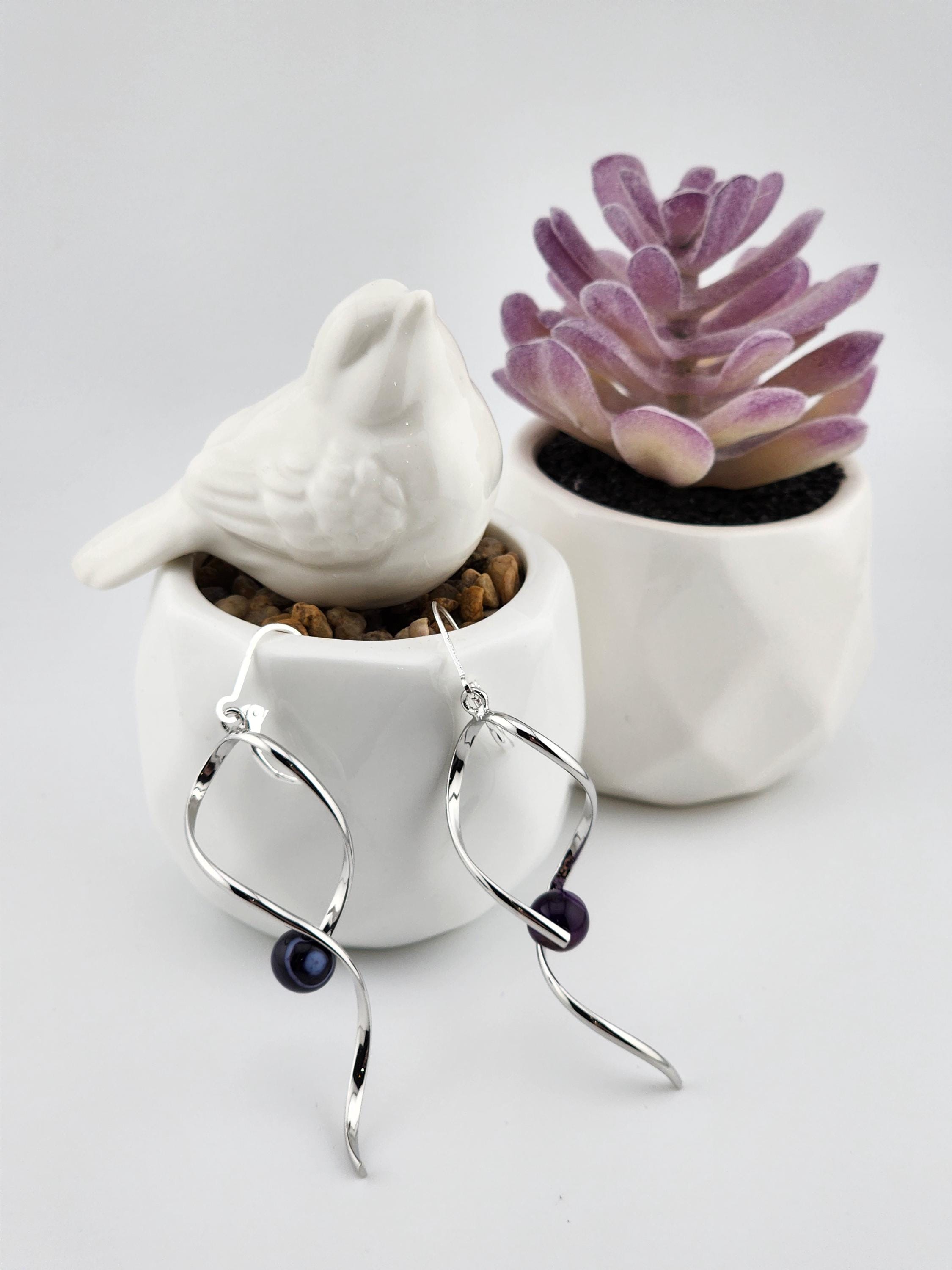 Sterling Silver Eternity Twisted & Purple Agate dangle earrings