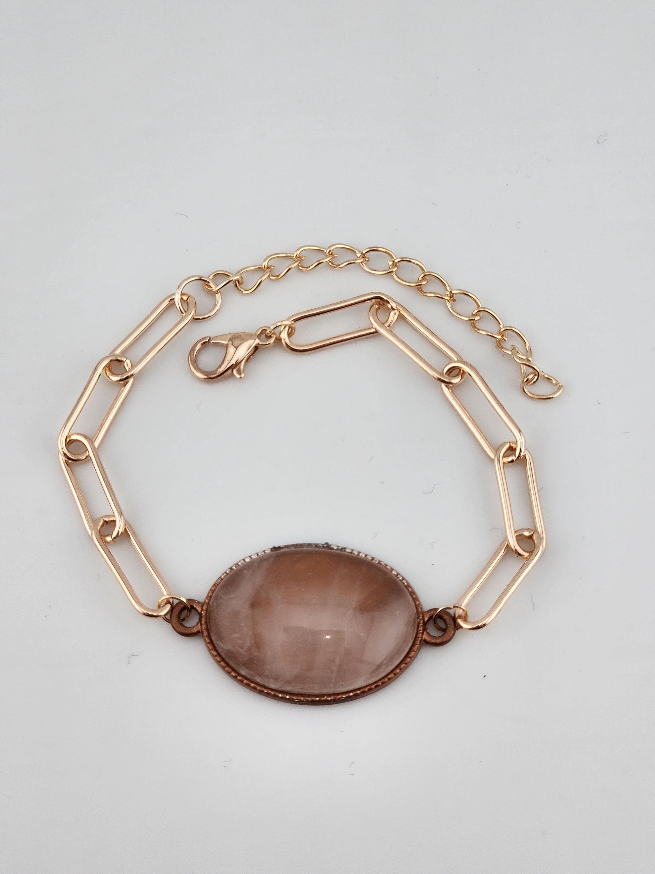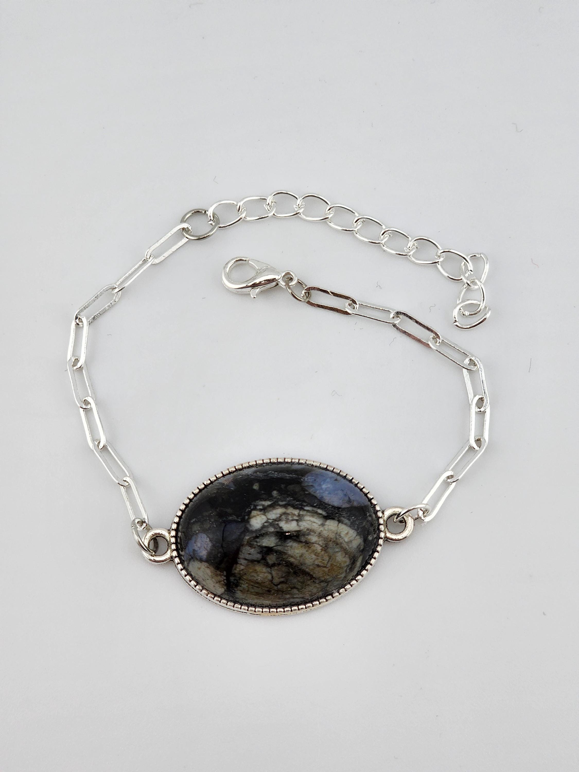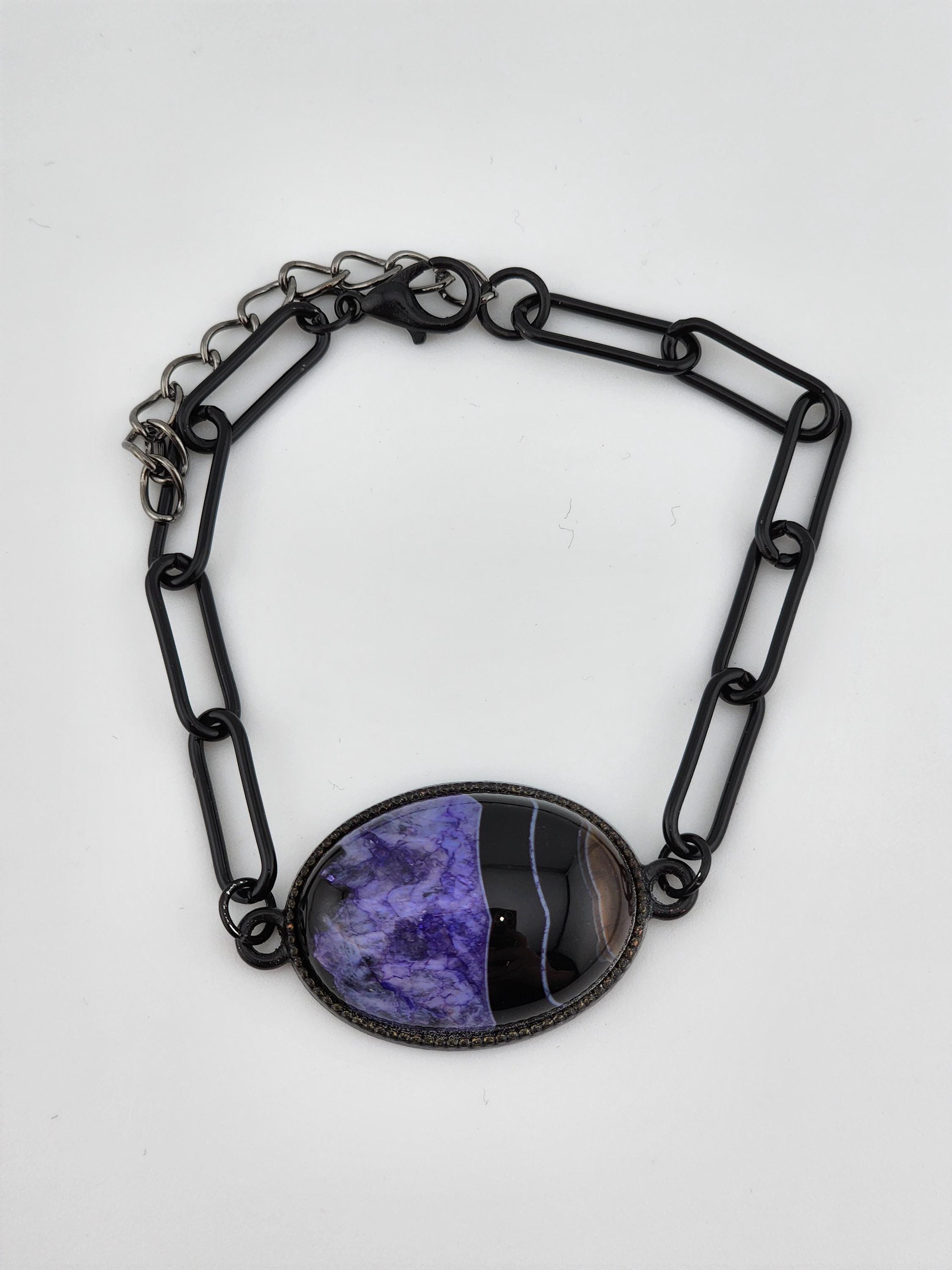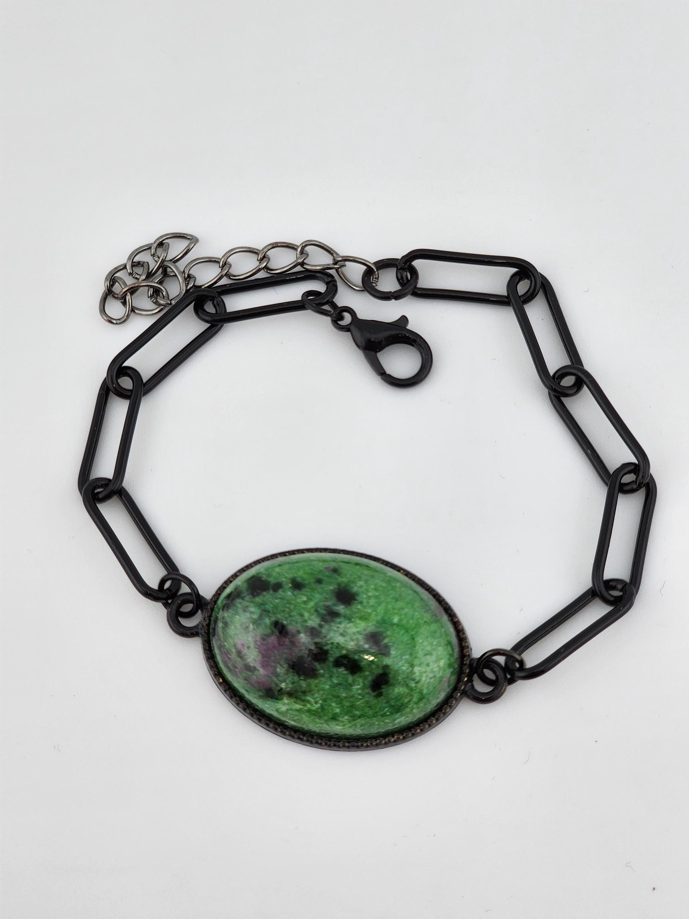 These are paper clip chain and semi-precious gemstone bracelets. There are 6 styles to choose from: #1- Black/Zoisite #2- Rose Gold/Rose Quartz #3- Sterling Silver/Llanite #4- Rose Gold/Strawberry Quartz #5- Sterling Silver/Kiwi Jasper #6- Black/Purple Banded Agate * Your purchase will arrive in pretty packaging * Shipping is free within the U.S.