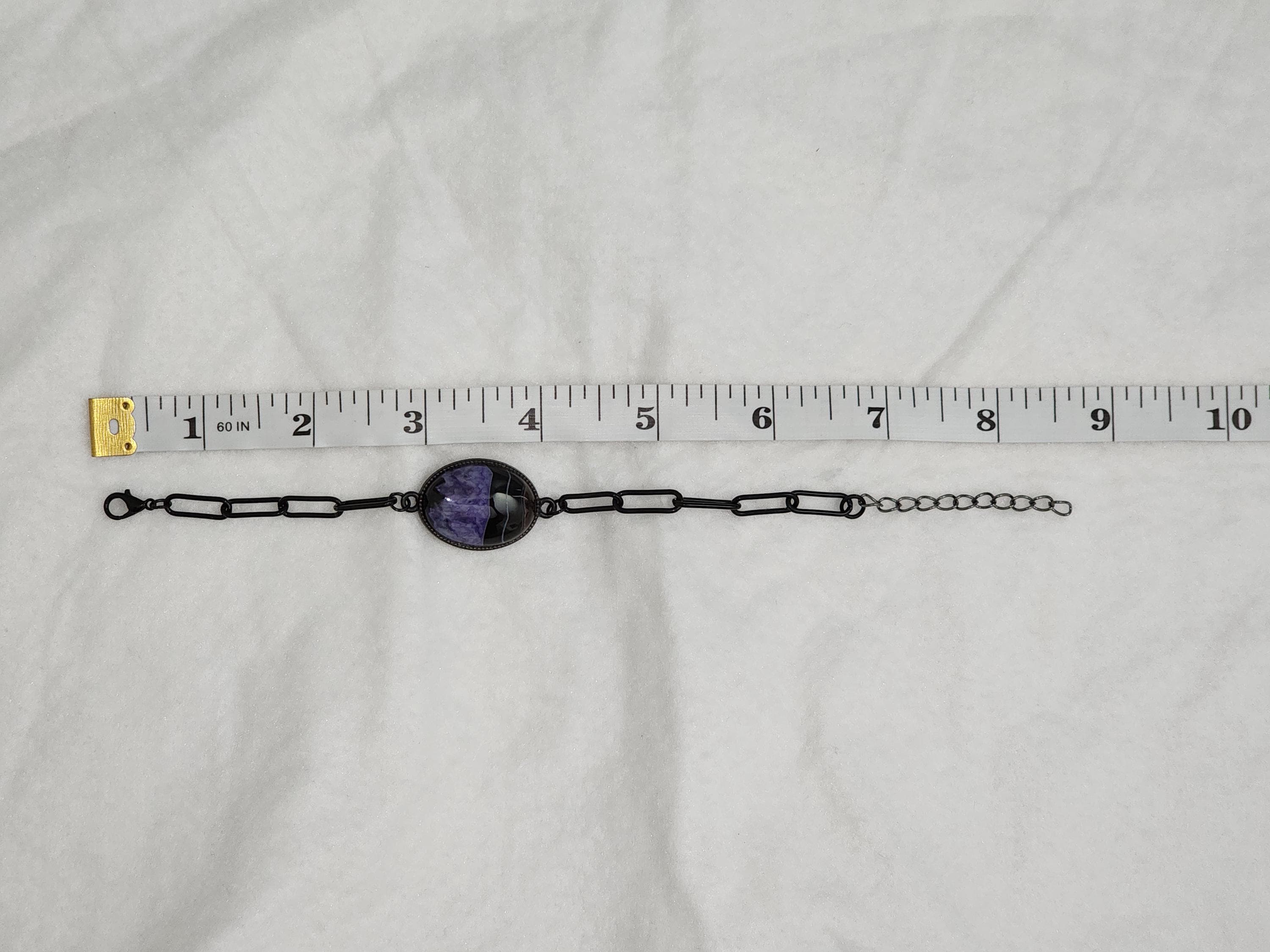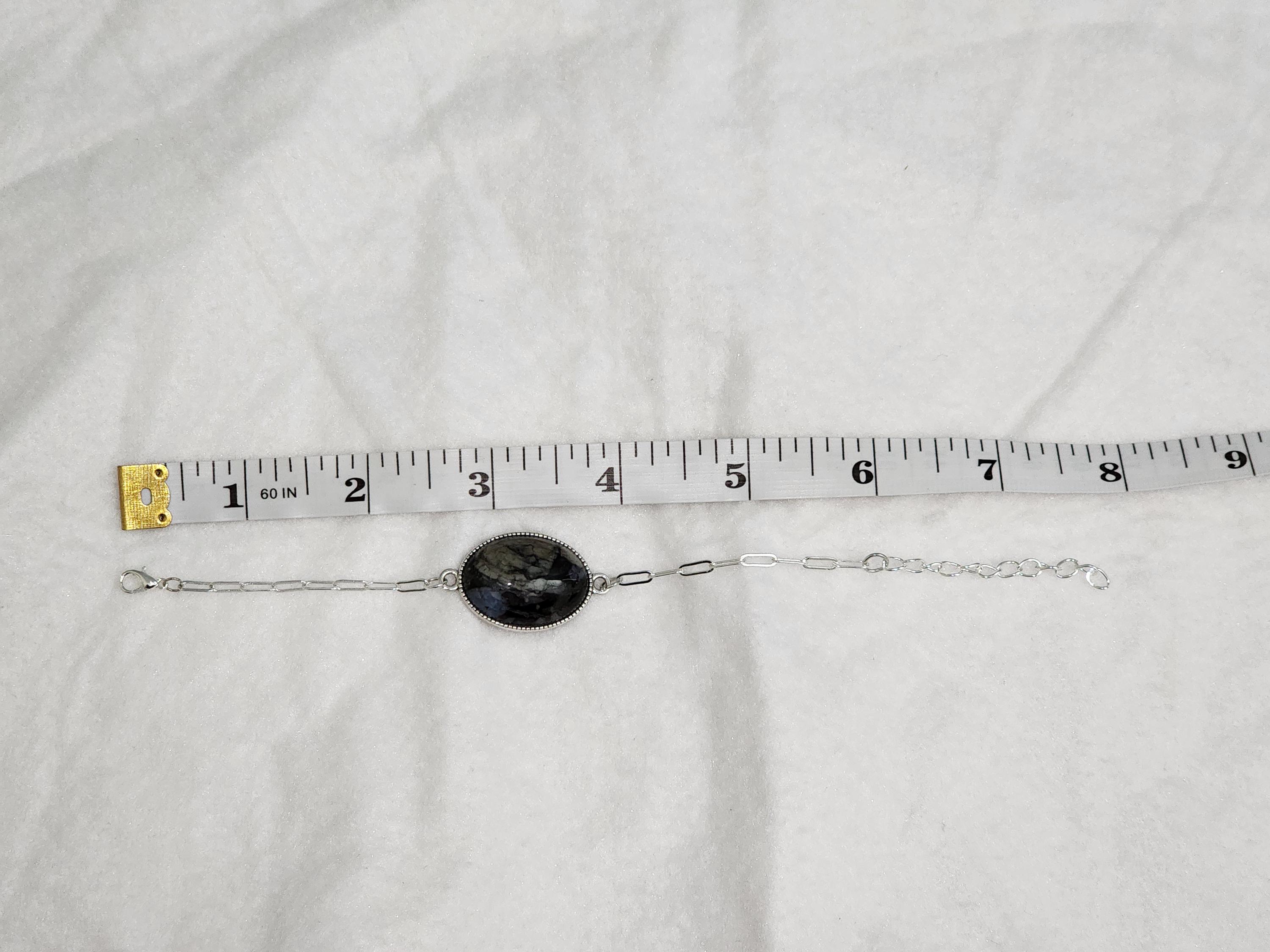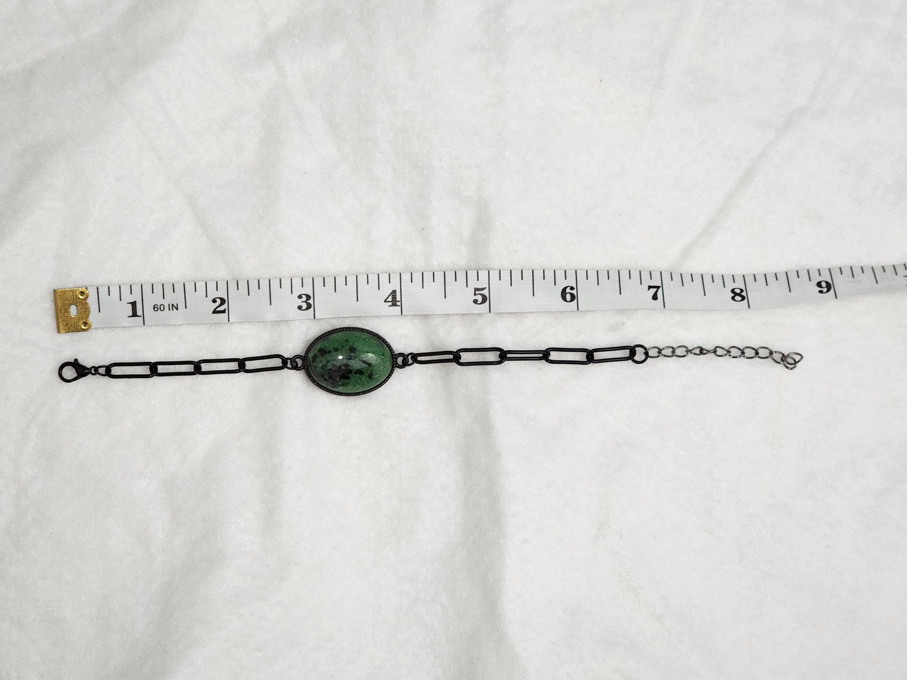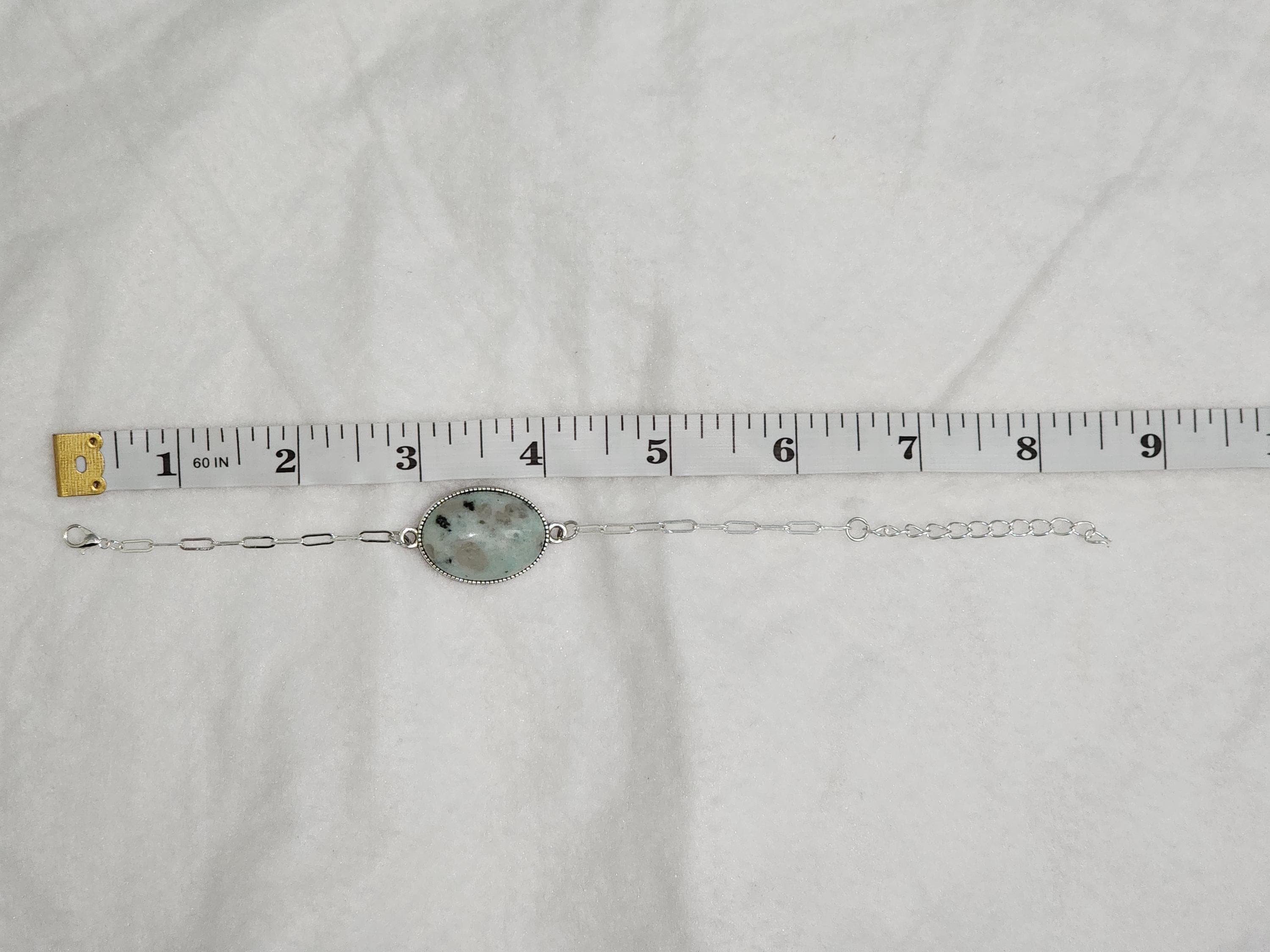 These are paper clip chain and semi-precious gemstone bracelets. There are 6 styles to choose from: #1- Black/Zoisite #2- Rose Gold/Rose Quartz #3- Sterling Silver/Llanite #4- Rose Gold/Strawberry Quartz #5- Sterling Silver/Kiwi Jasper #6- Black/Purple Banded Agate * Your purchase will arrive in pretty packaging * Shipping is free within the U.S.