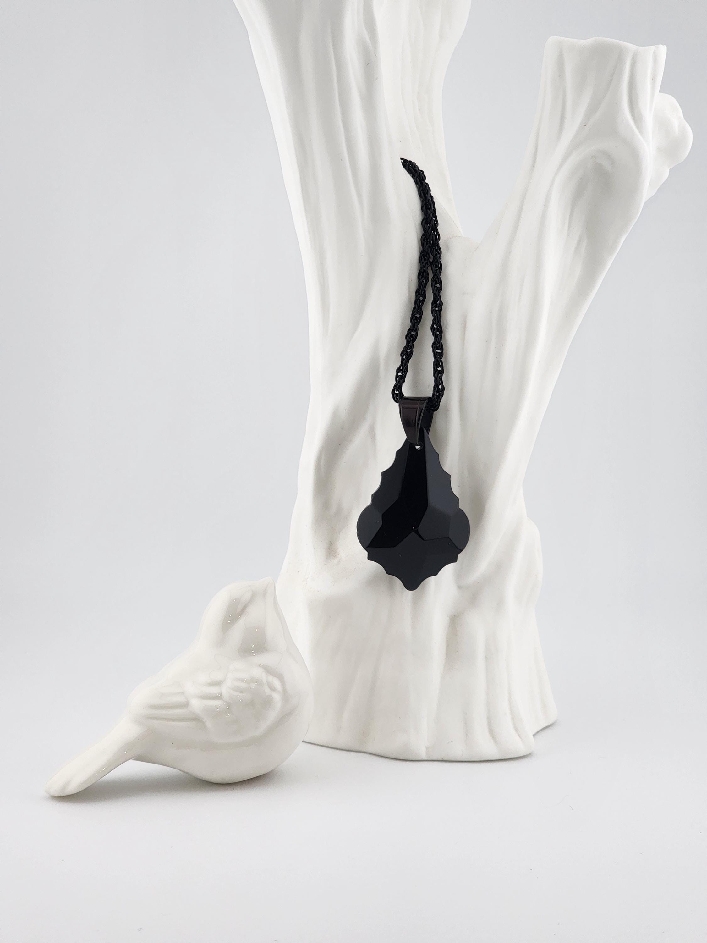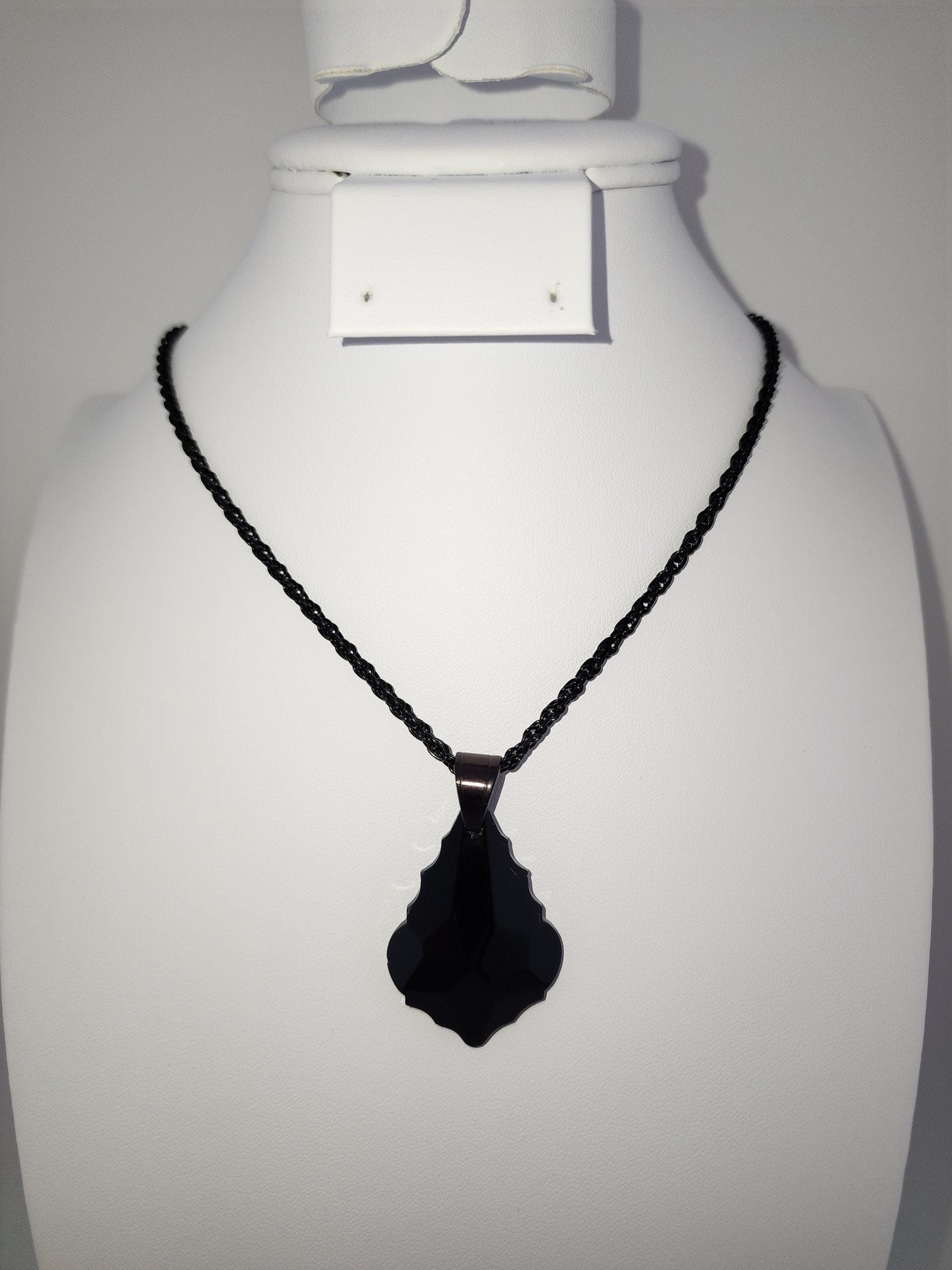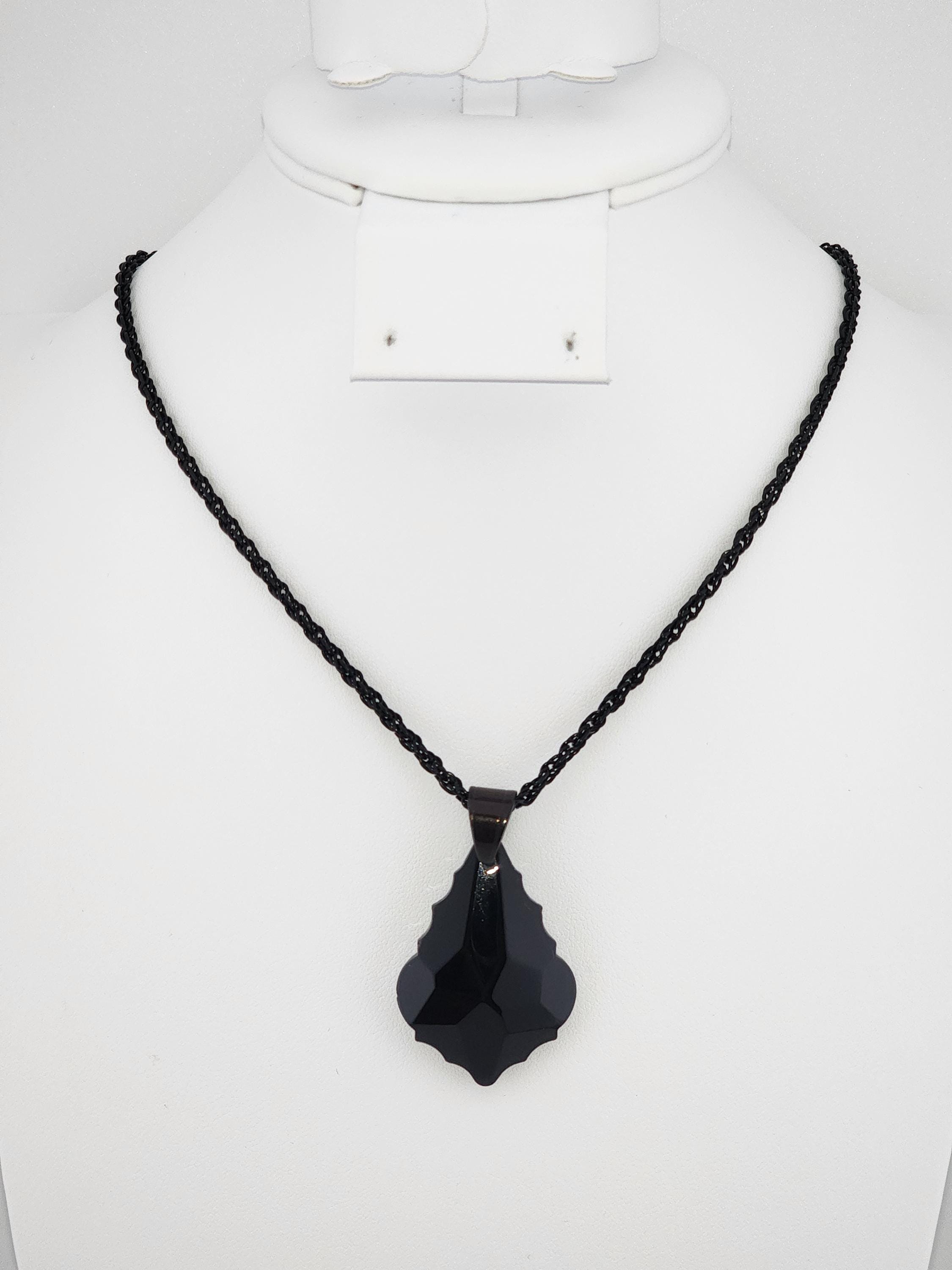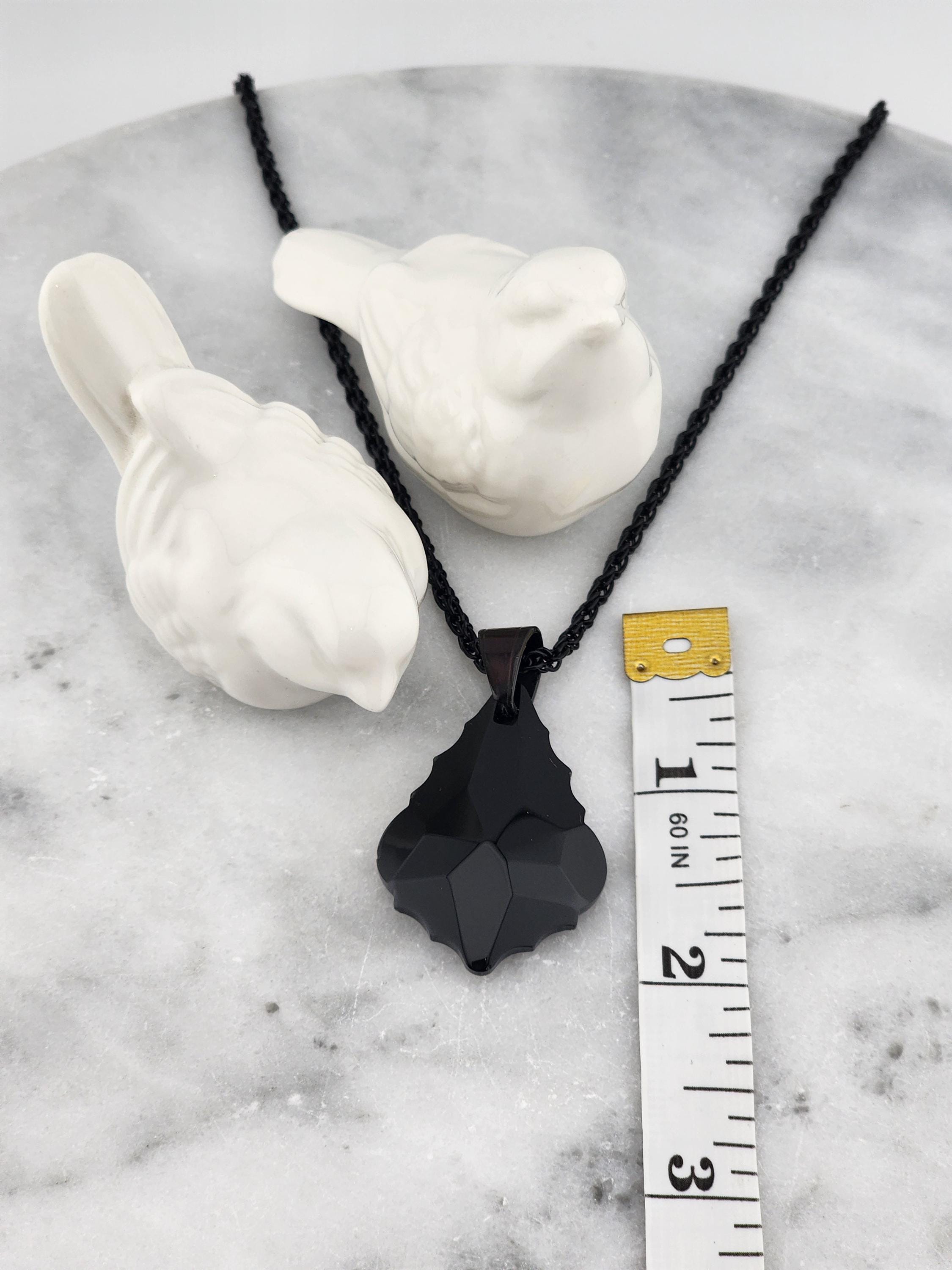 I made this necklace using shiny black twisted rope chain. It has an extender that makes the necklace 18"-21.5" long. The pendant is a black faceted rhombus crystal chandelier crystal. * Your purchase will arrive in pretty packaging * Shipping is included