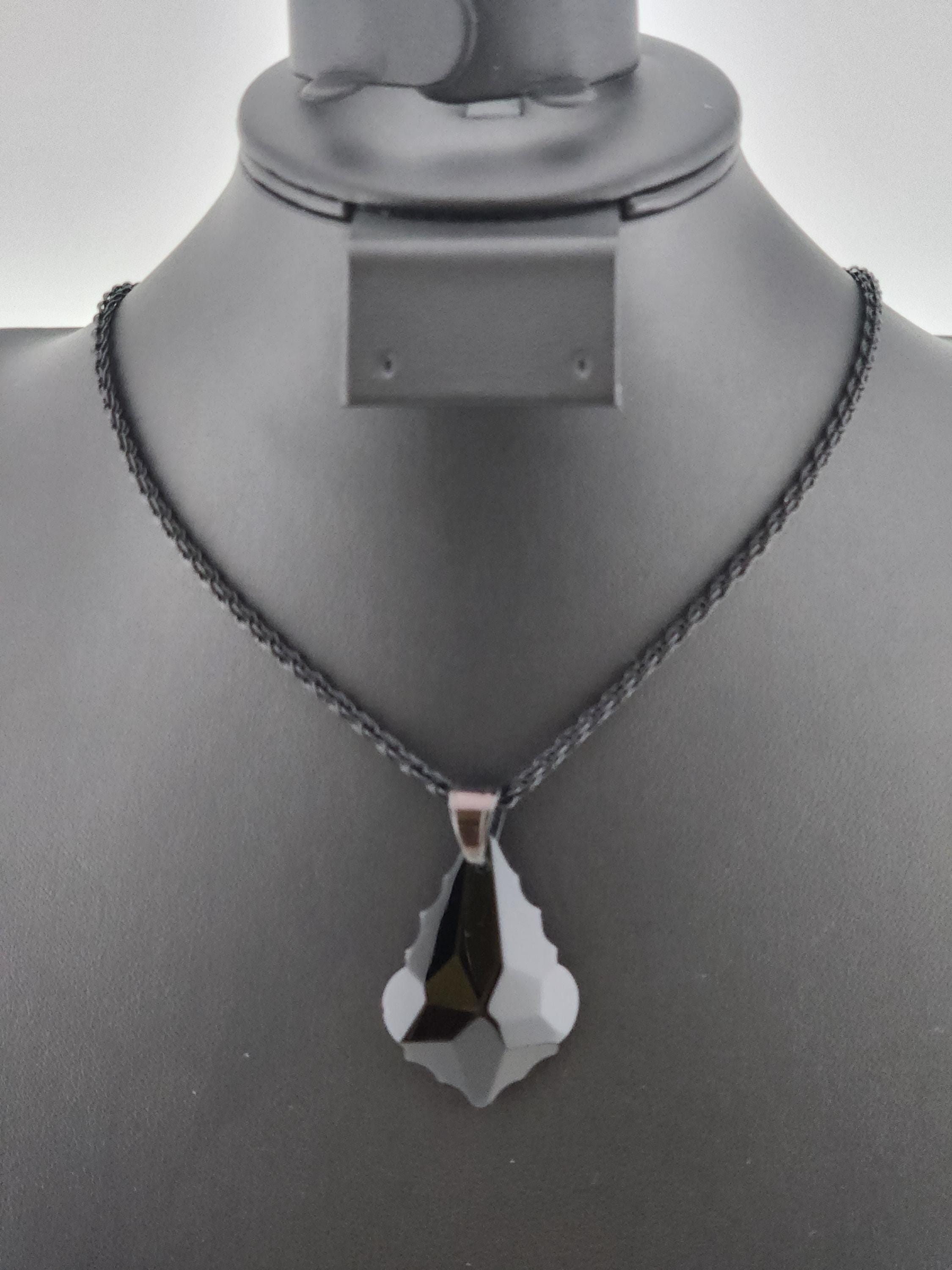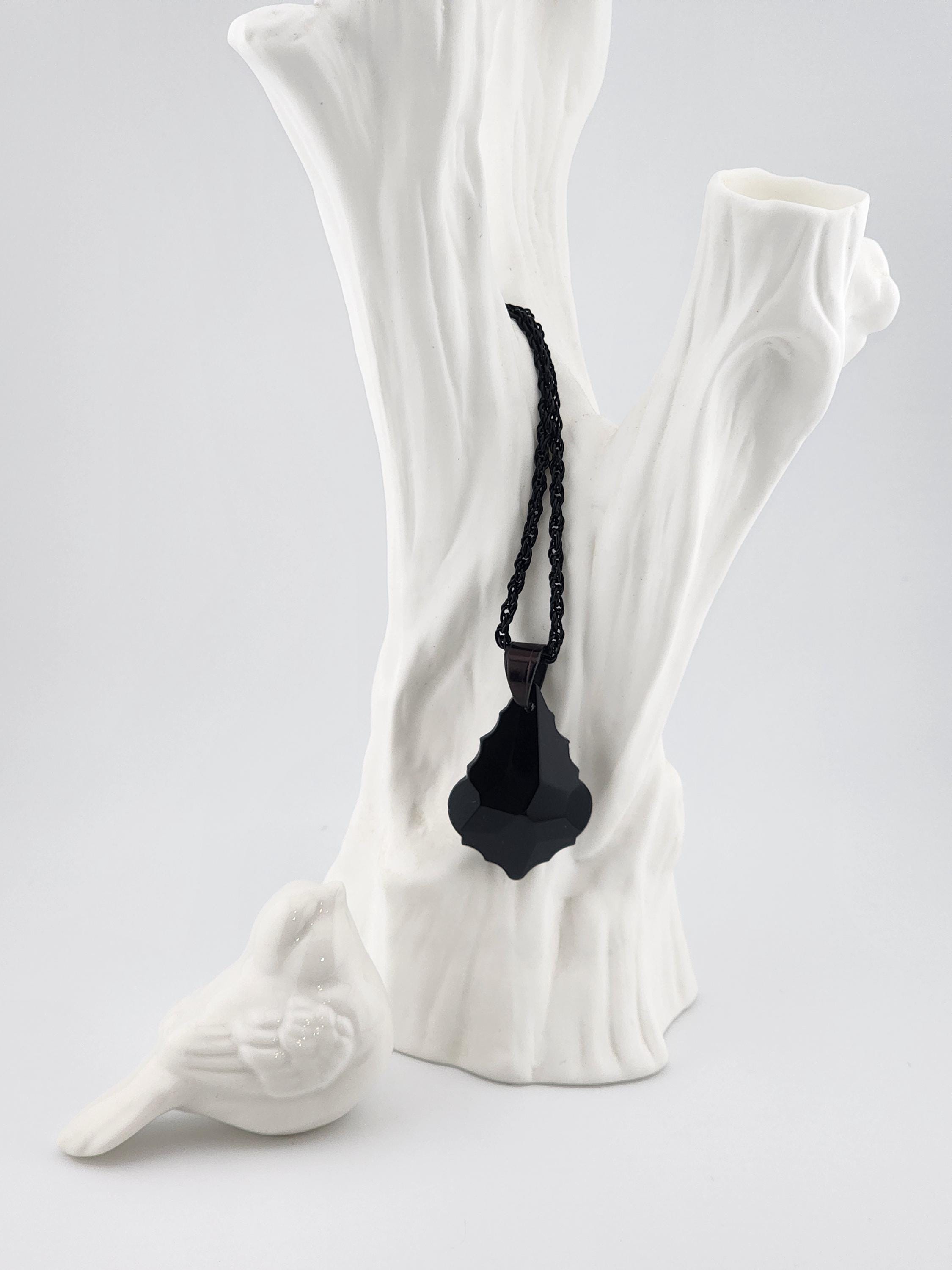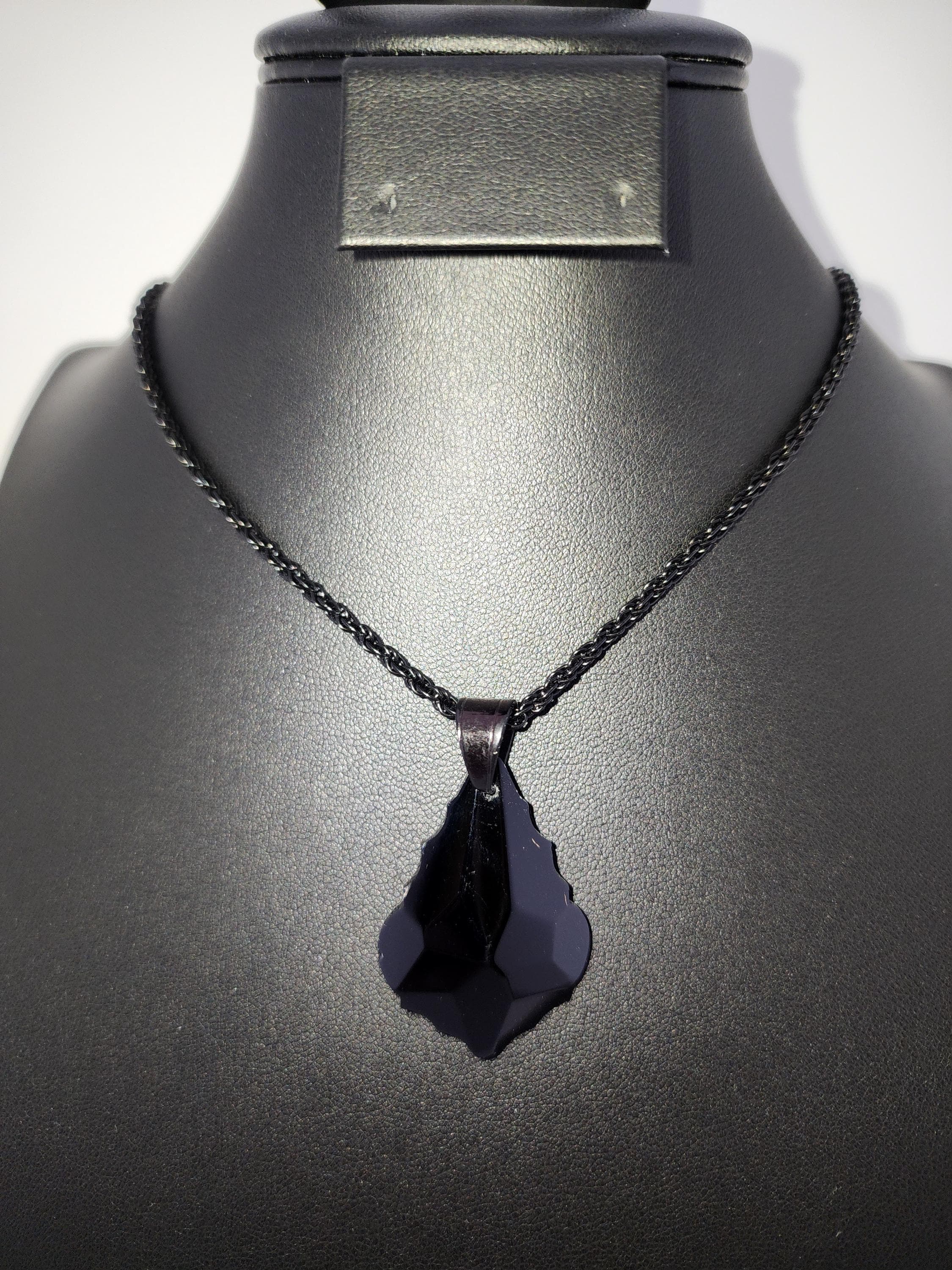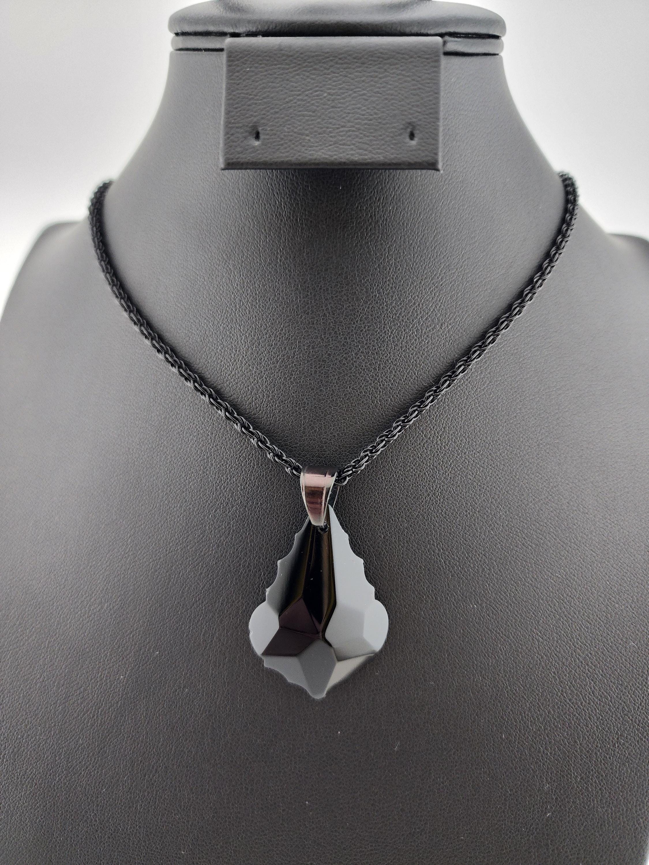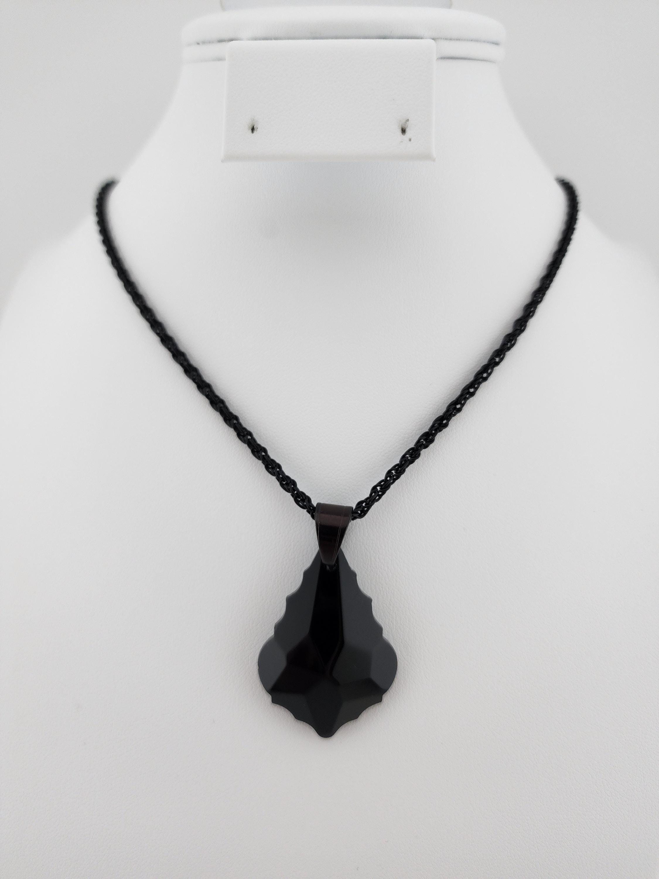 I made this necklace using shiny black twisted rope chain. It has an extender that makes the necklace 18"-21.5" long. The pendant is a black faceted rhombus crystal chandelier crystal. * Your purchase will arrive in pretty packaging * Shipping is included