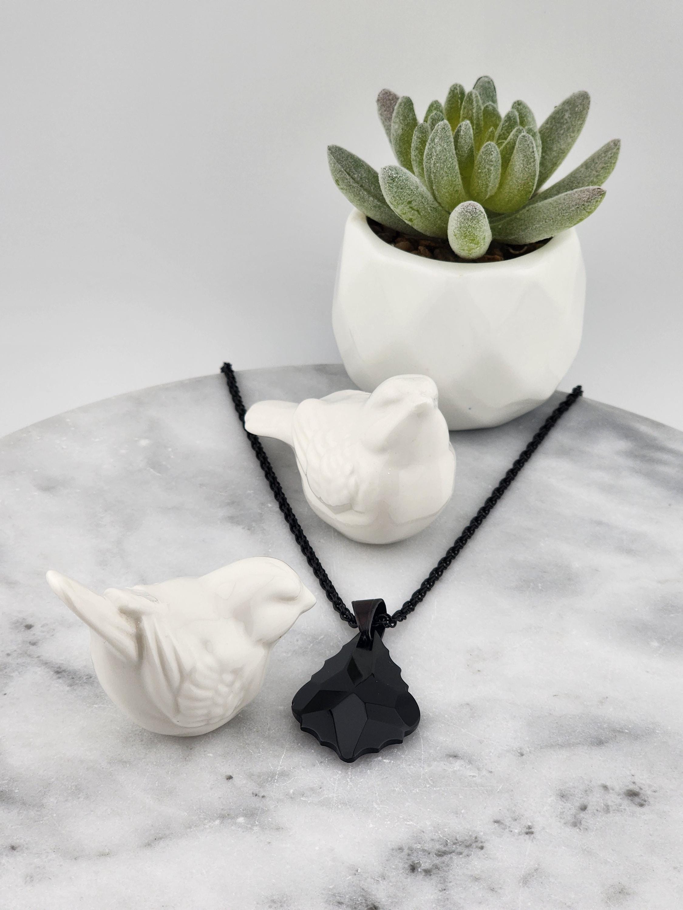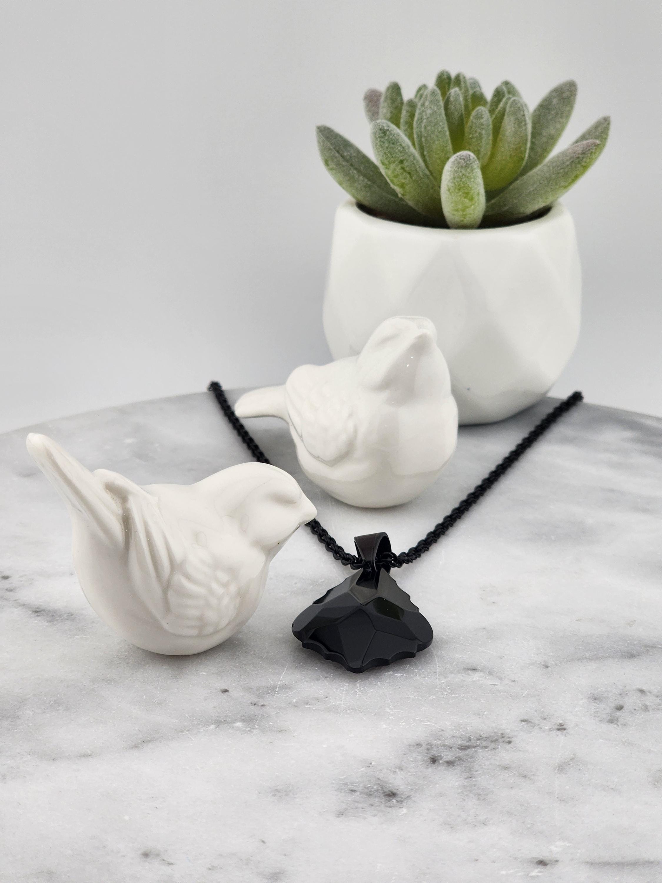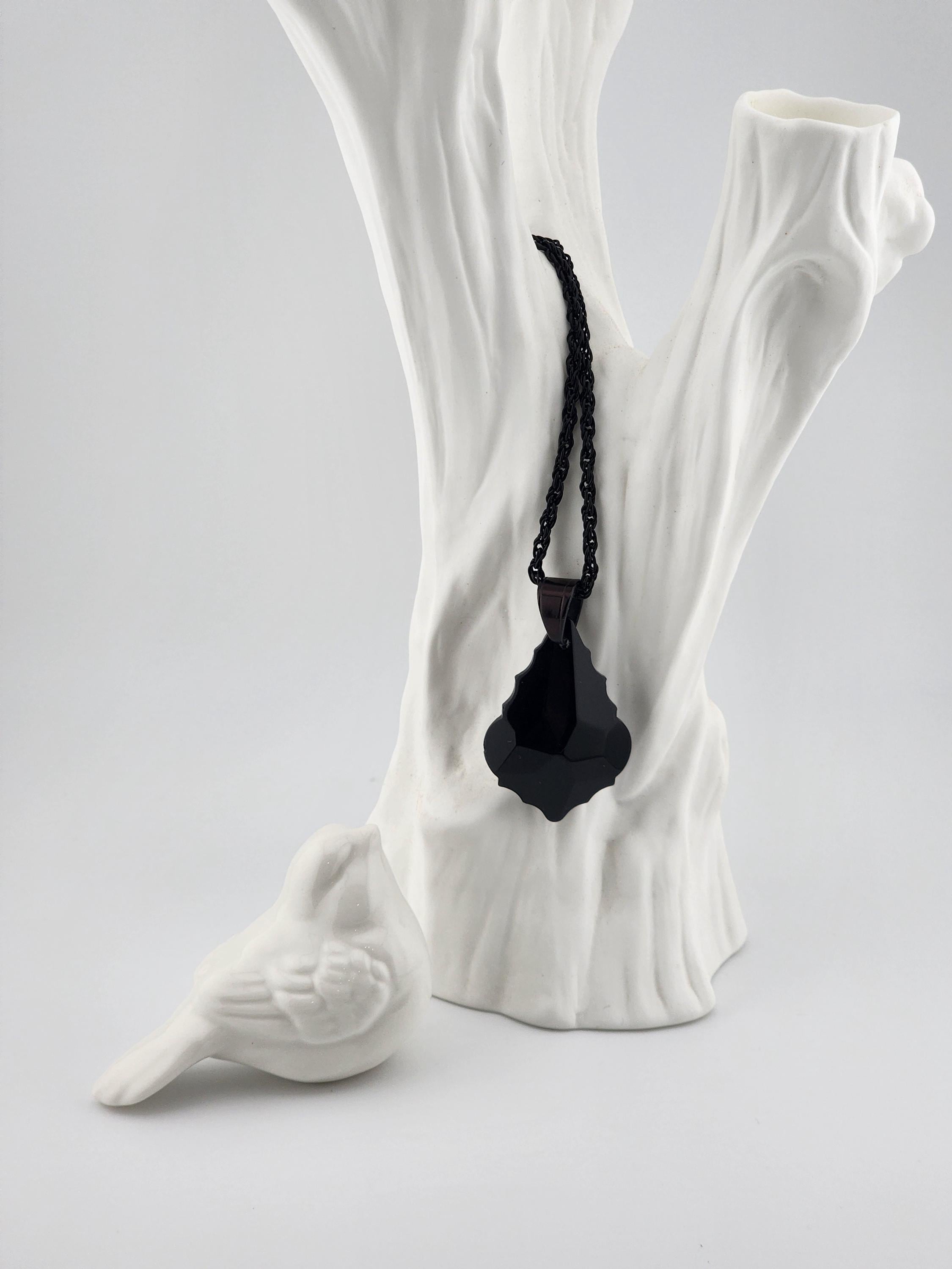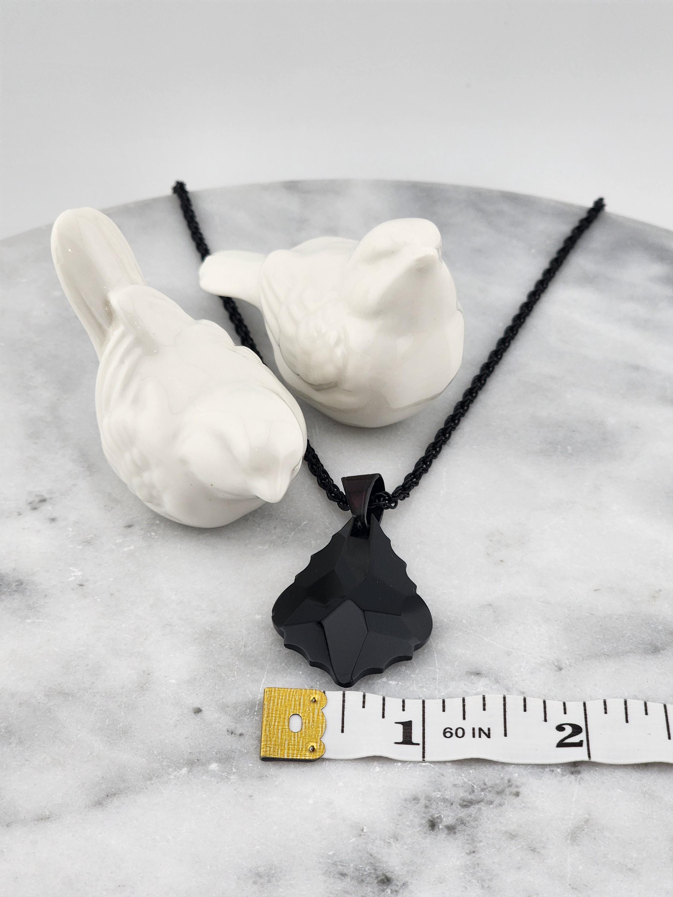 I made this necklace using shiny black twisted rope chain. It has an extender that makes the necklace 18"-21.5" long. The pendant is a black faceted rhombus crystal chandelier crystal. * Your purchase will arrive in pretty packaging * Shipping is included