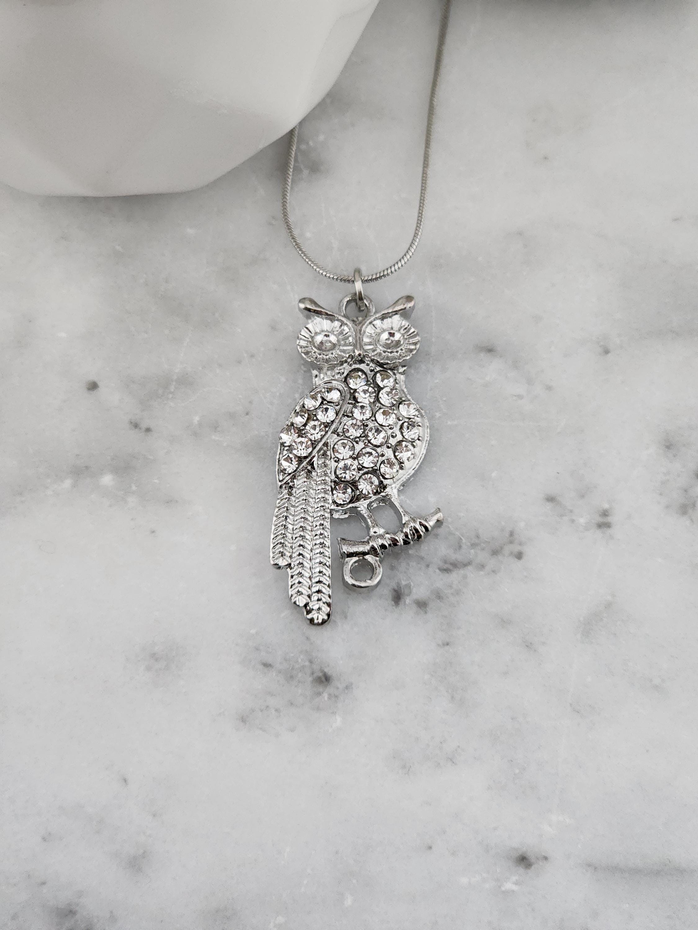 I made this necklace using sterling silver rope chain that has an extender chain. The pendant is a silver, crystal studded owl sitting on a branch and hangs from a sterling silver plated branch. * Your purchase will arrive in pretty packaging * Shipping is included