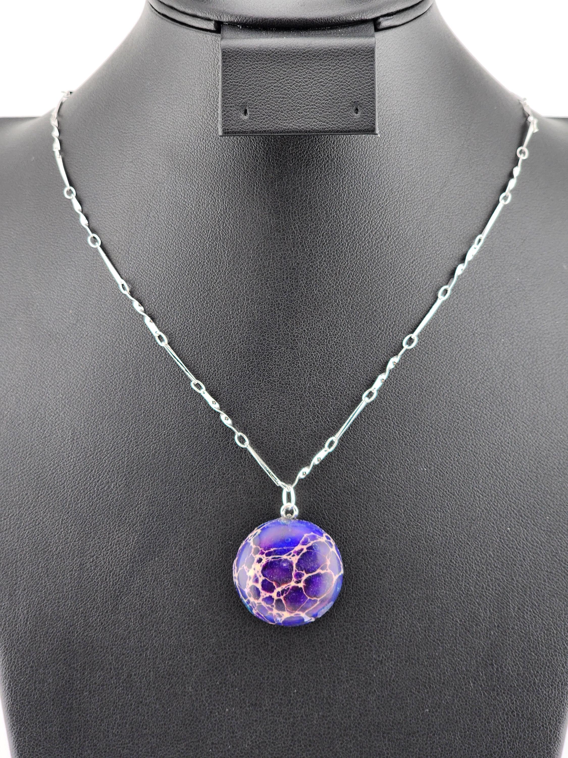 I made this necklace using sterling silver twisted link chain that has an extender chain, a silver plated clasp and sterling silver connecting rings. The pendant is a 25mm round purple/blue sea sediment jasper stone that hangs from a sterling silver plated ring. * Your purchase will arrive in pretty packaging