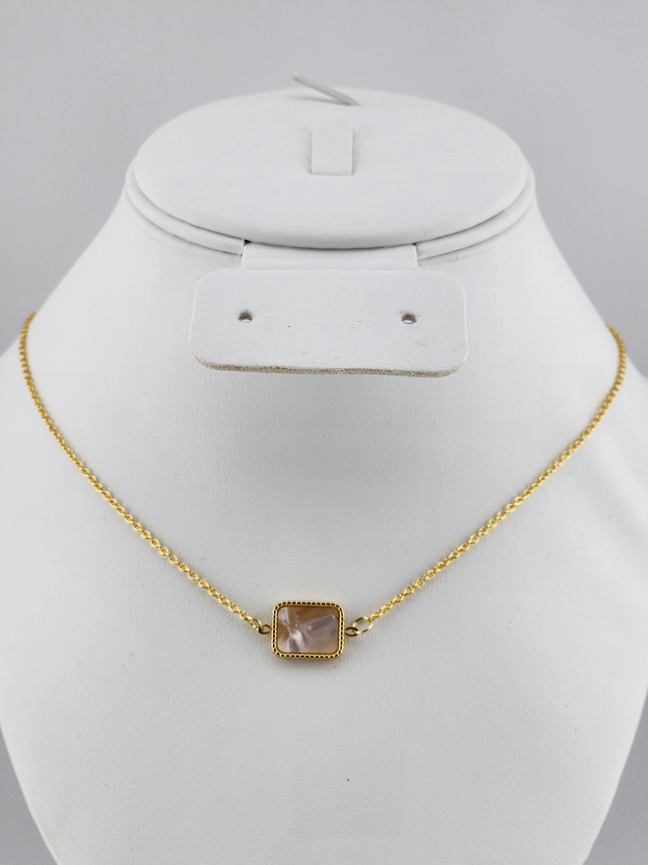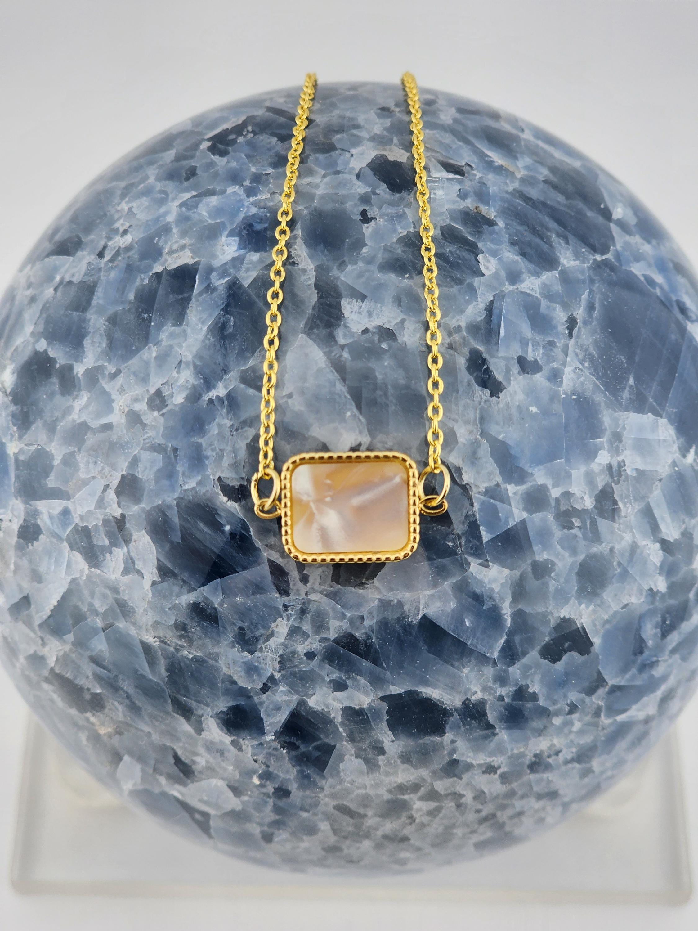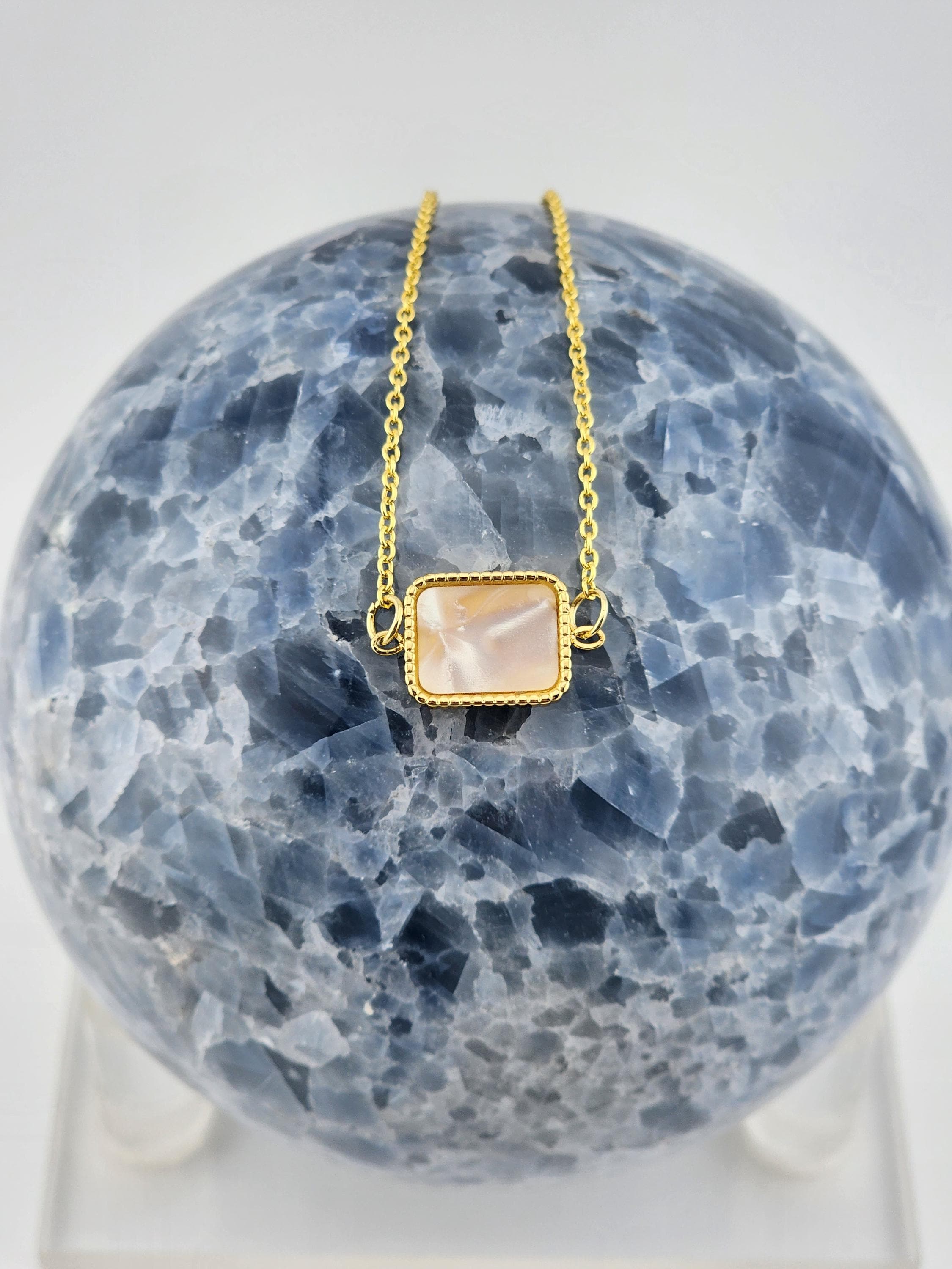 I made this necklace using tarnish resistant 18k gold plated brass chain that has an extender chain, an 18k gold plated clasp and 24k gold plated connecting rings. It has a rectangular shaped peach colored Mother-of-Pearl shell connector. * Your purchase will arrive in pretty packaging * Shipping is free within the U.S.