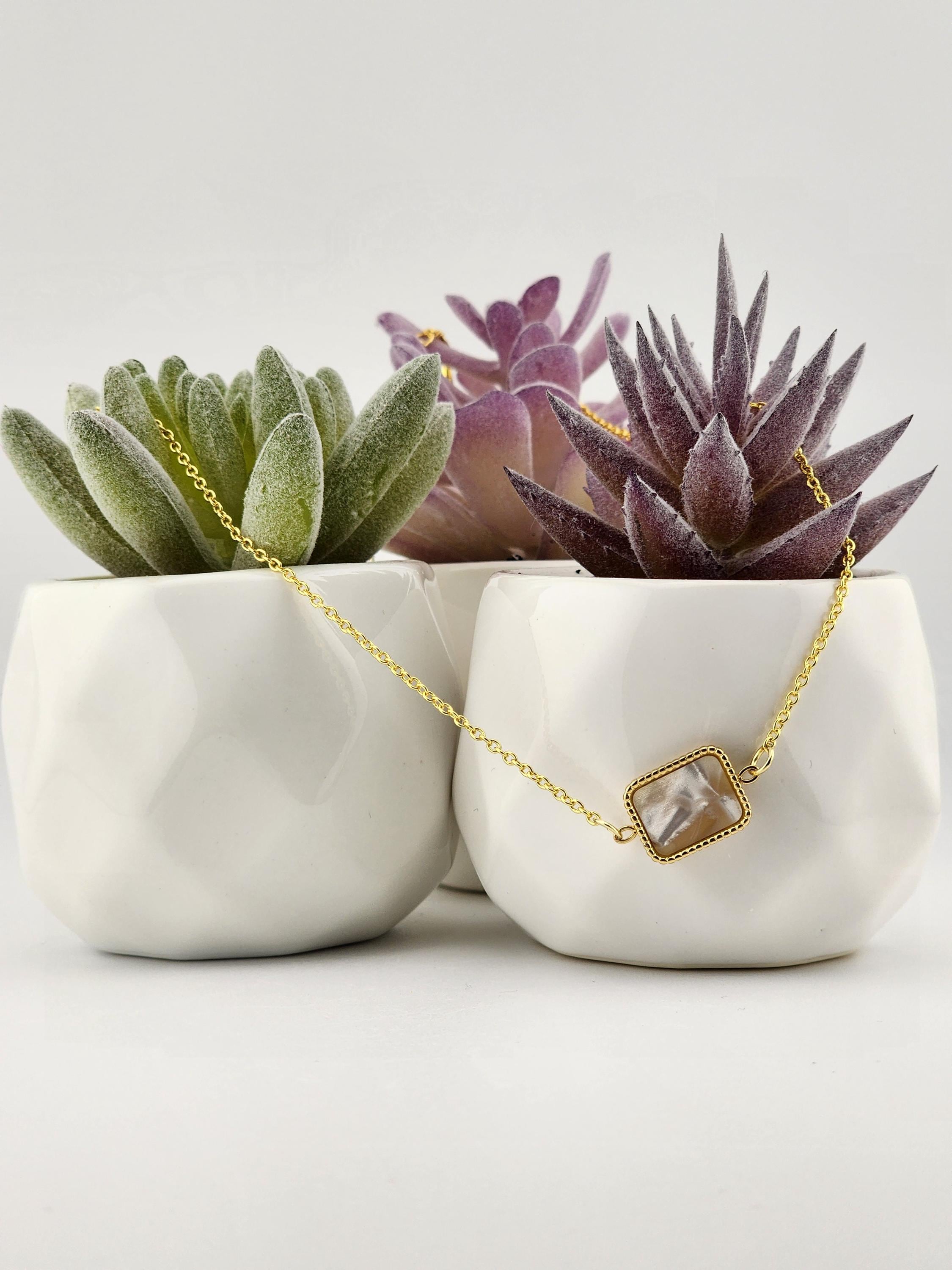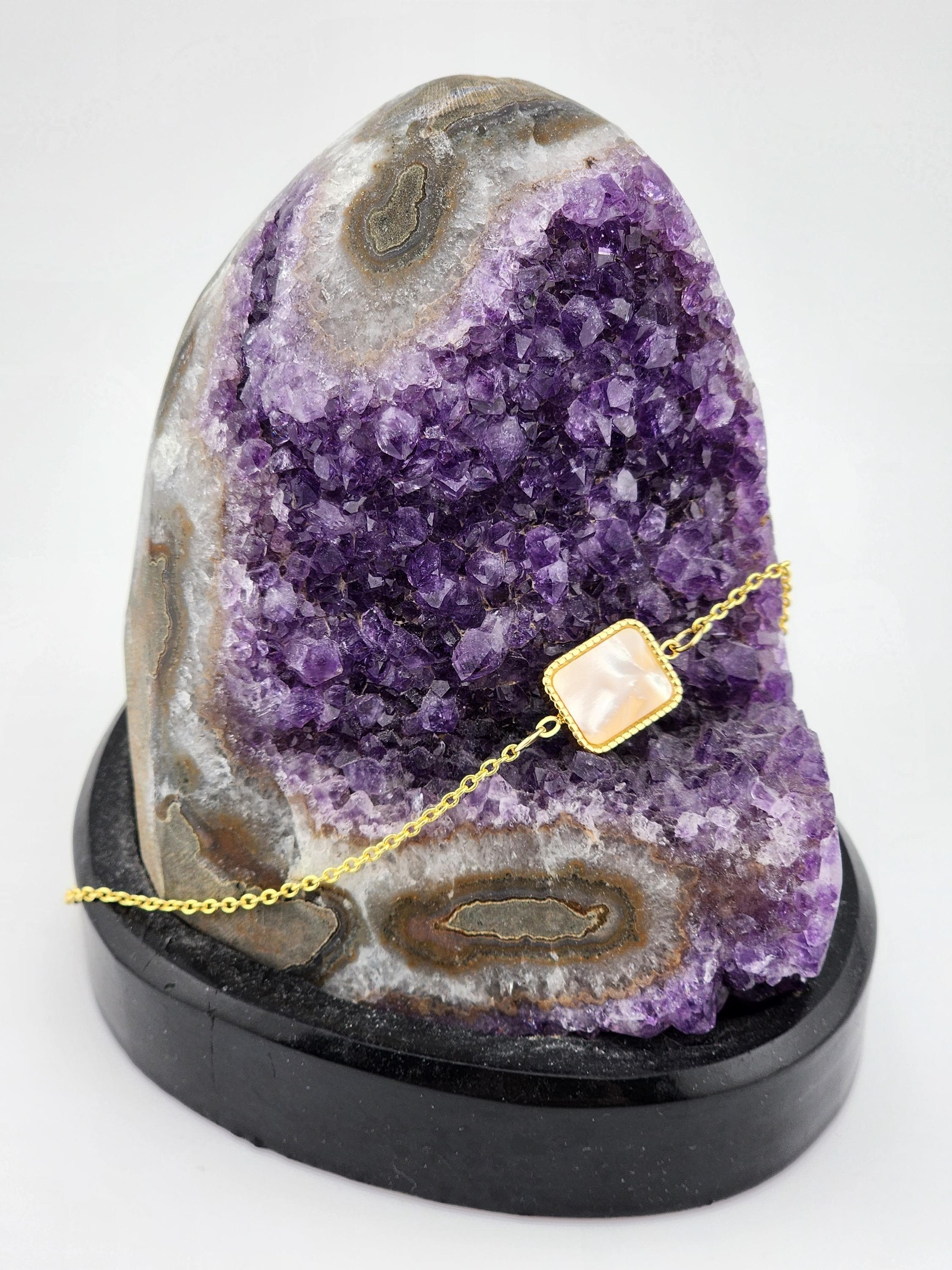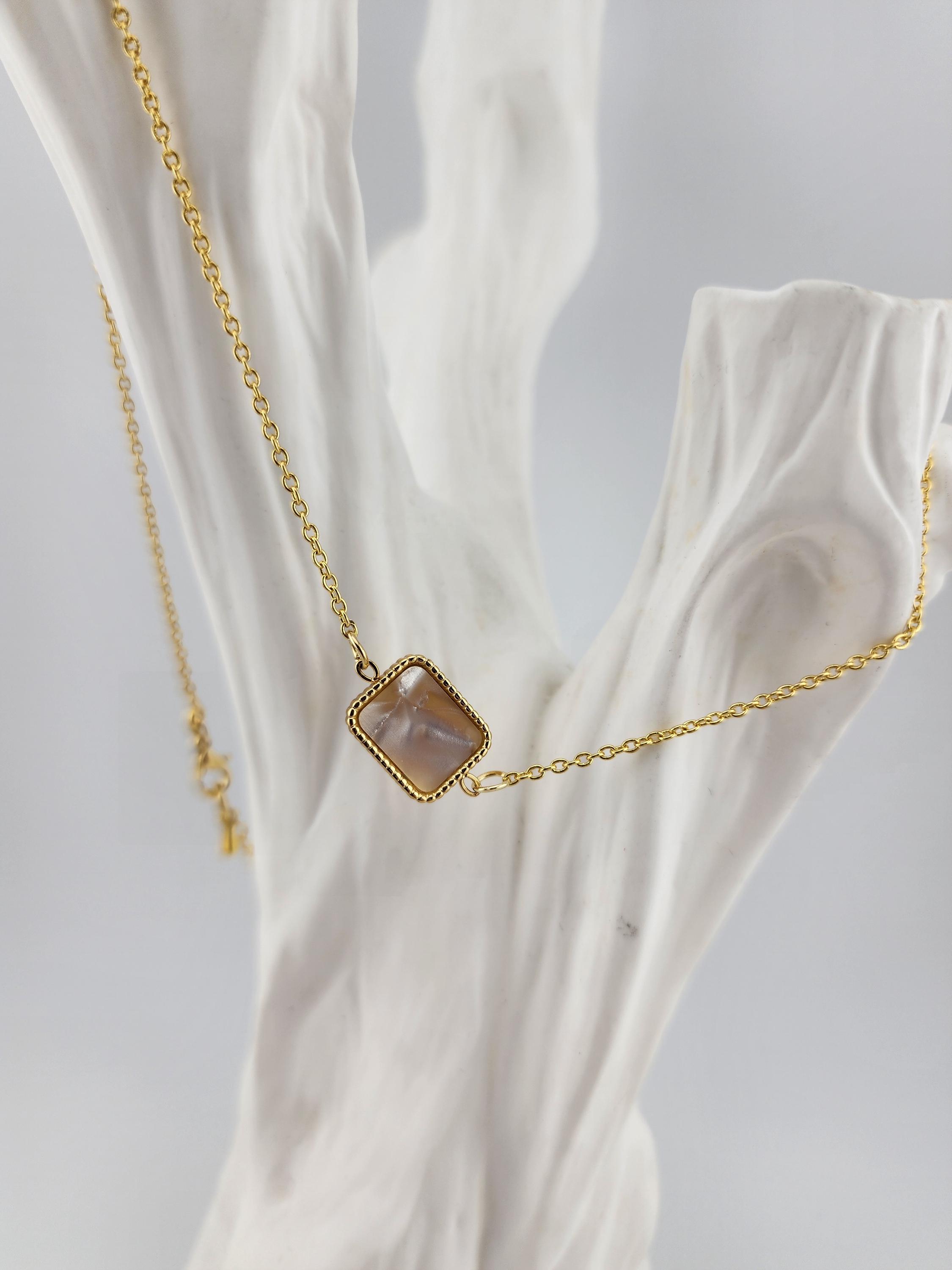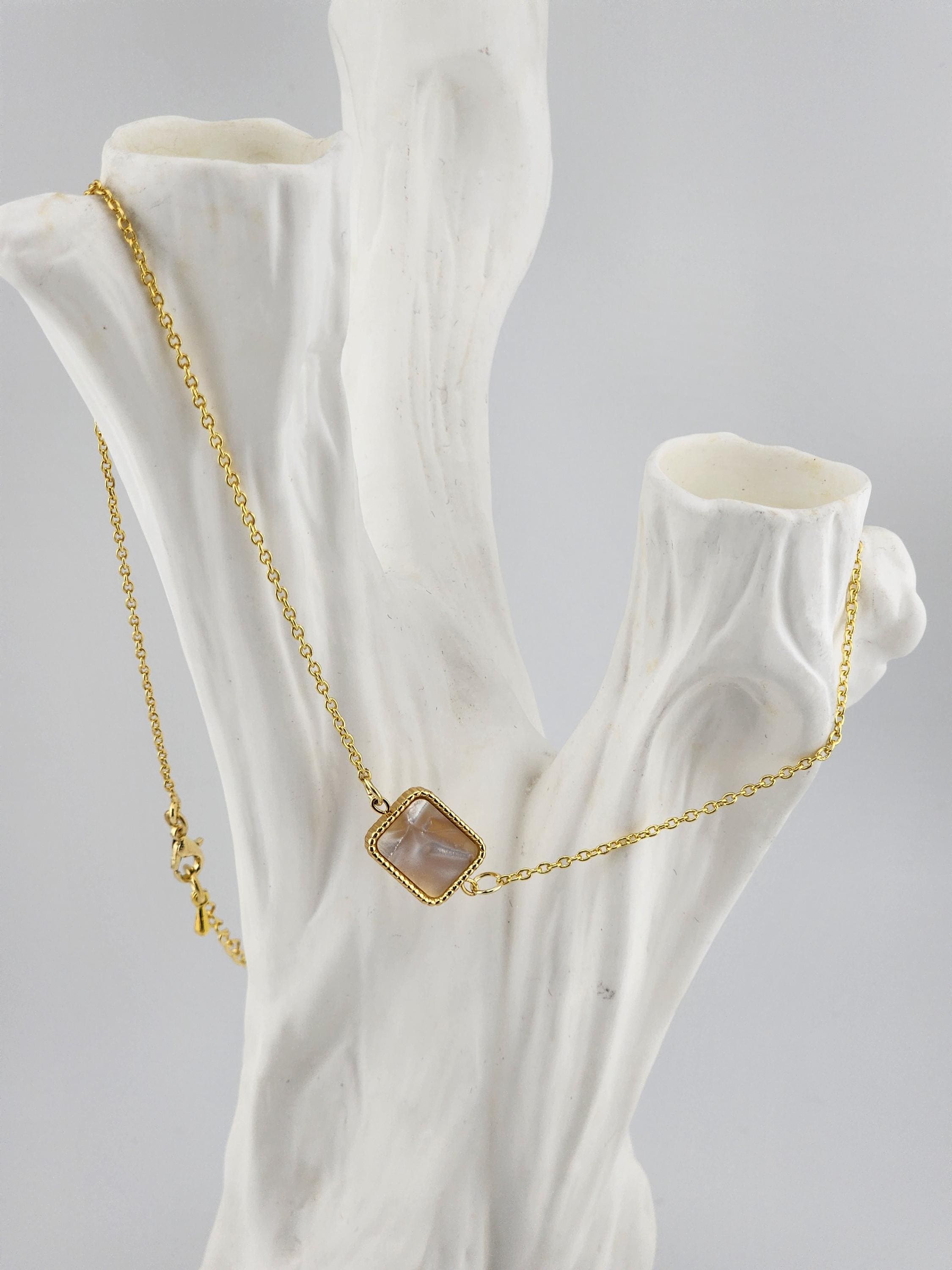 I made this necklace using tarnish resistant 18k gold plated brass chain that has an extender chain, an 18k gold plated clasp and 24k gold plated connecting rings. It has a rectangular shaped peach colored Mother-of-Pearl shell connector. * Your purchase will arrive in pretty packaging * Shipping is free within the U.S.