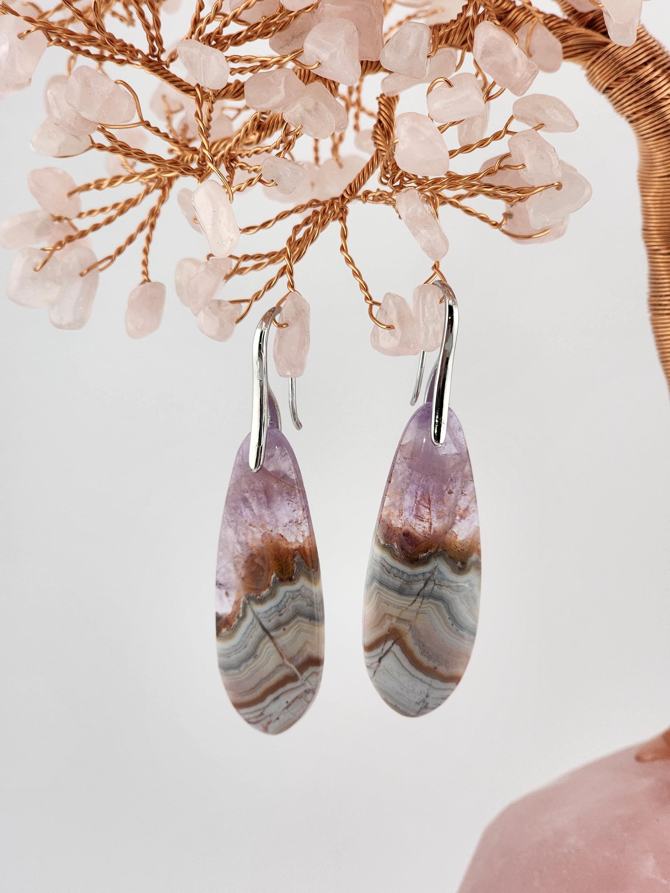 I made these earrings using platinum plated brass hooks and added long teardrop shaped natural Rainbow Amethyst gemstone charms. Each stone being handcrafted differ slightly. They are amazing statement earrings. * Your purchase will arrive in pretty packaging * Shipping is included