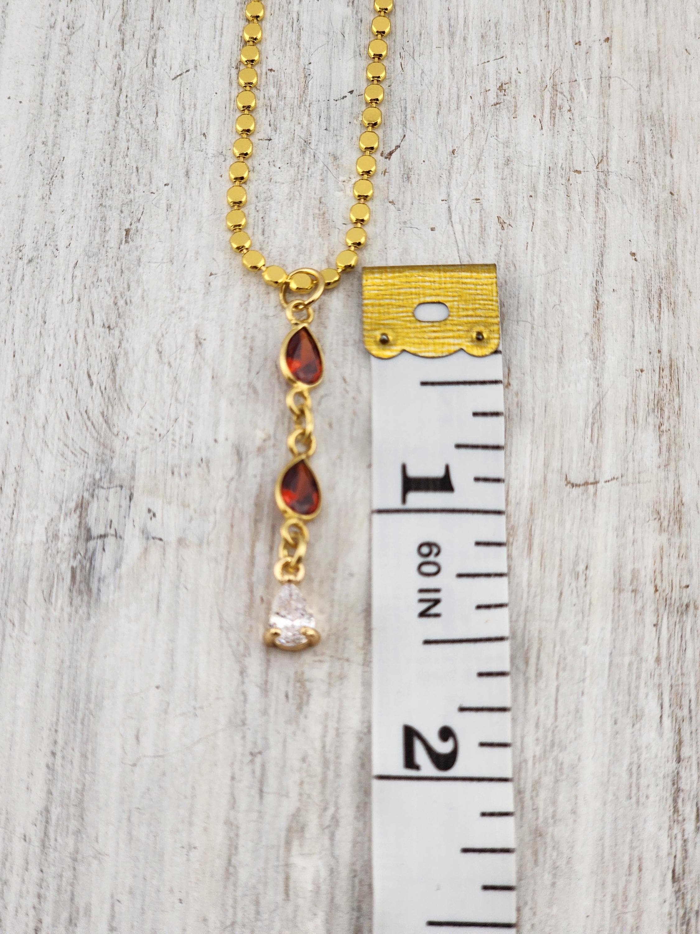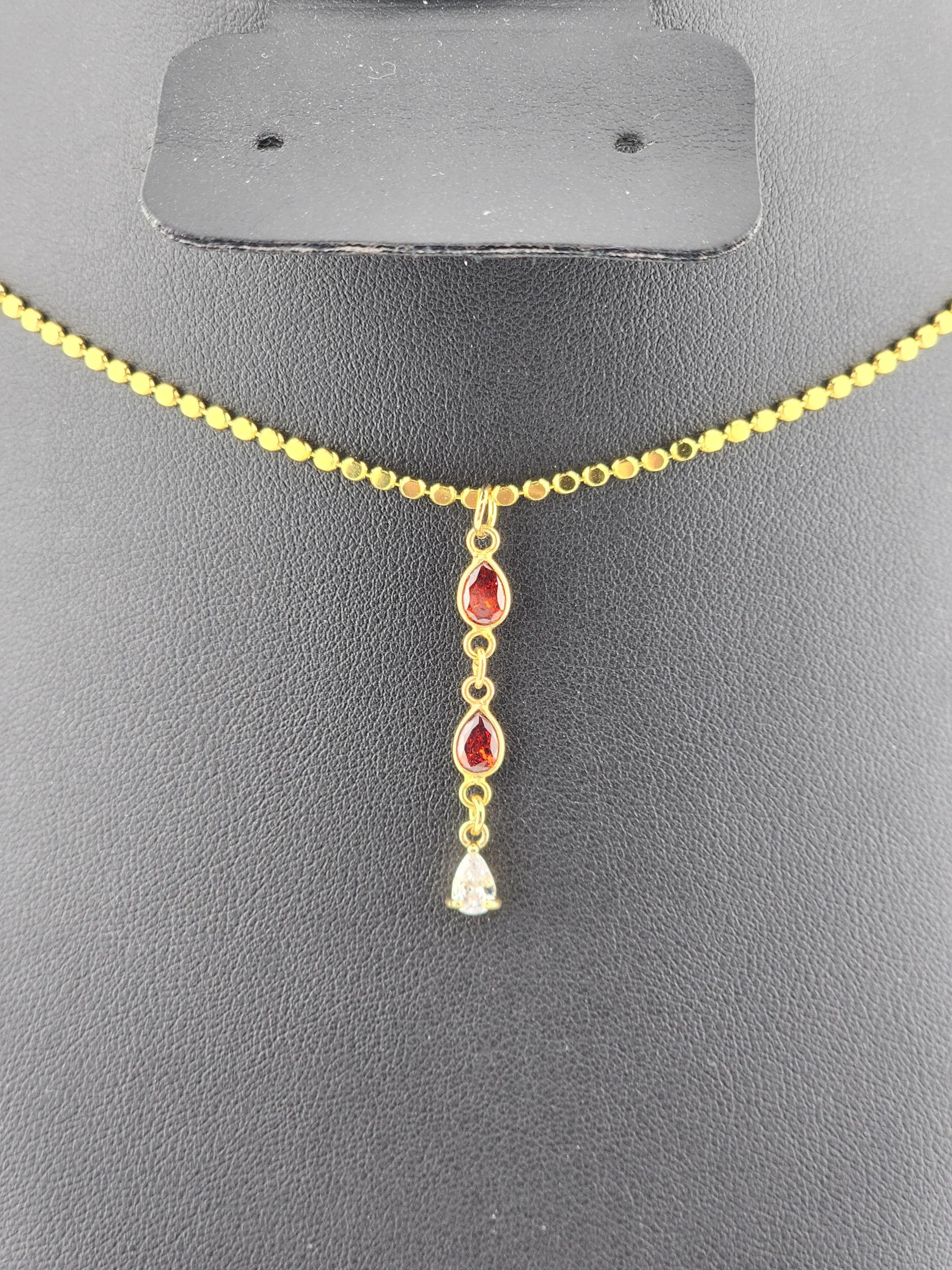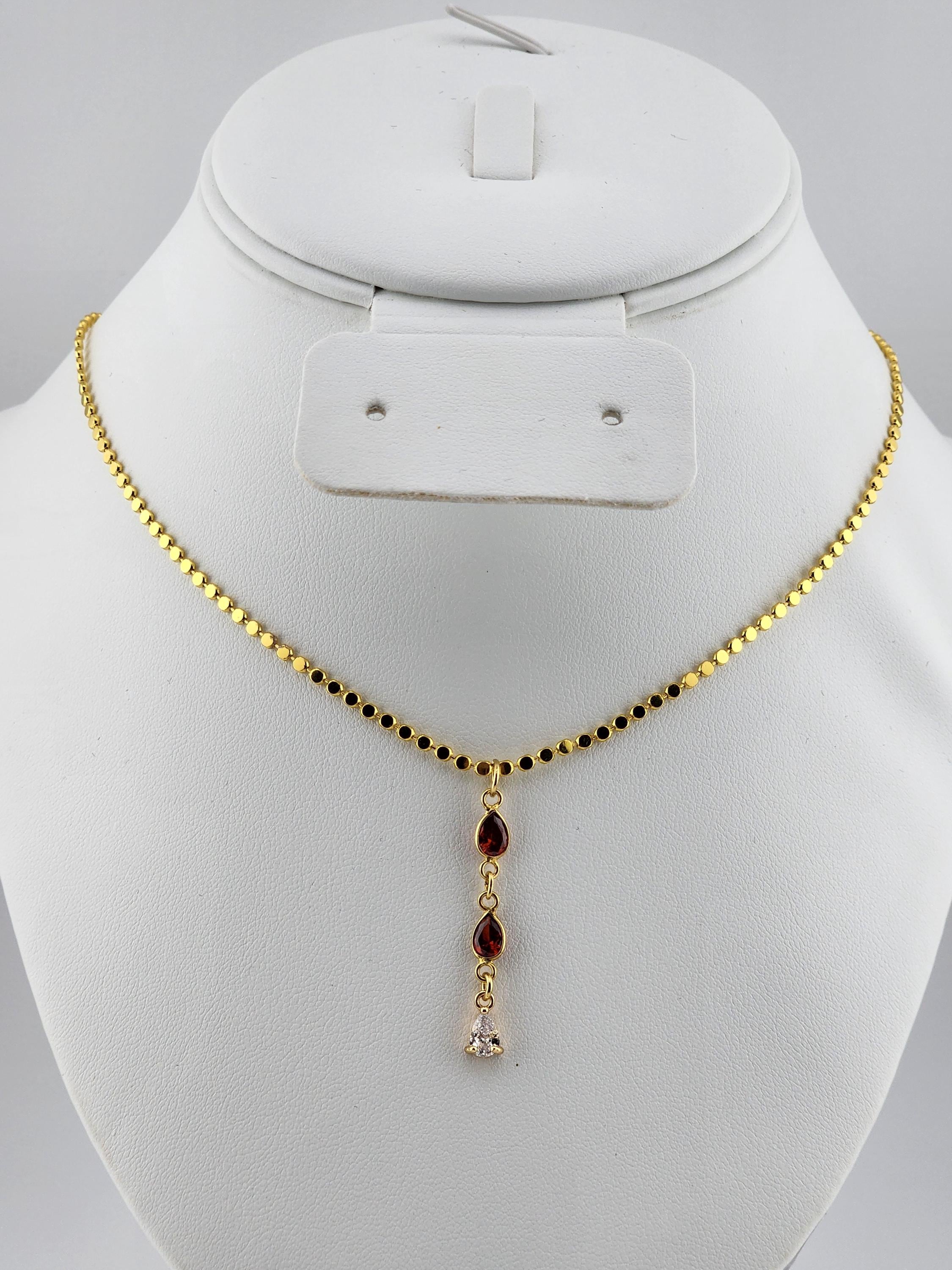 I made this stunning choker necklace using tarnish resistant 18k gold plated brass flat dot chain, an extender chain, a 16k gold plated clasp, and 24k gold plated connecting rings. The pendant are two 22k gold plated pear shaped Garnet stone links handcrafted from India, with a single pear shaped crystal and hangs from a 24k gold plated ring. * Your purchase will arrive in pretty packaging * Shipping is free within the U.S.