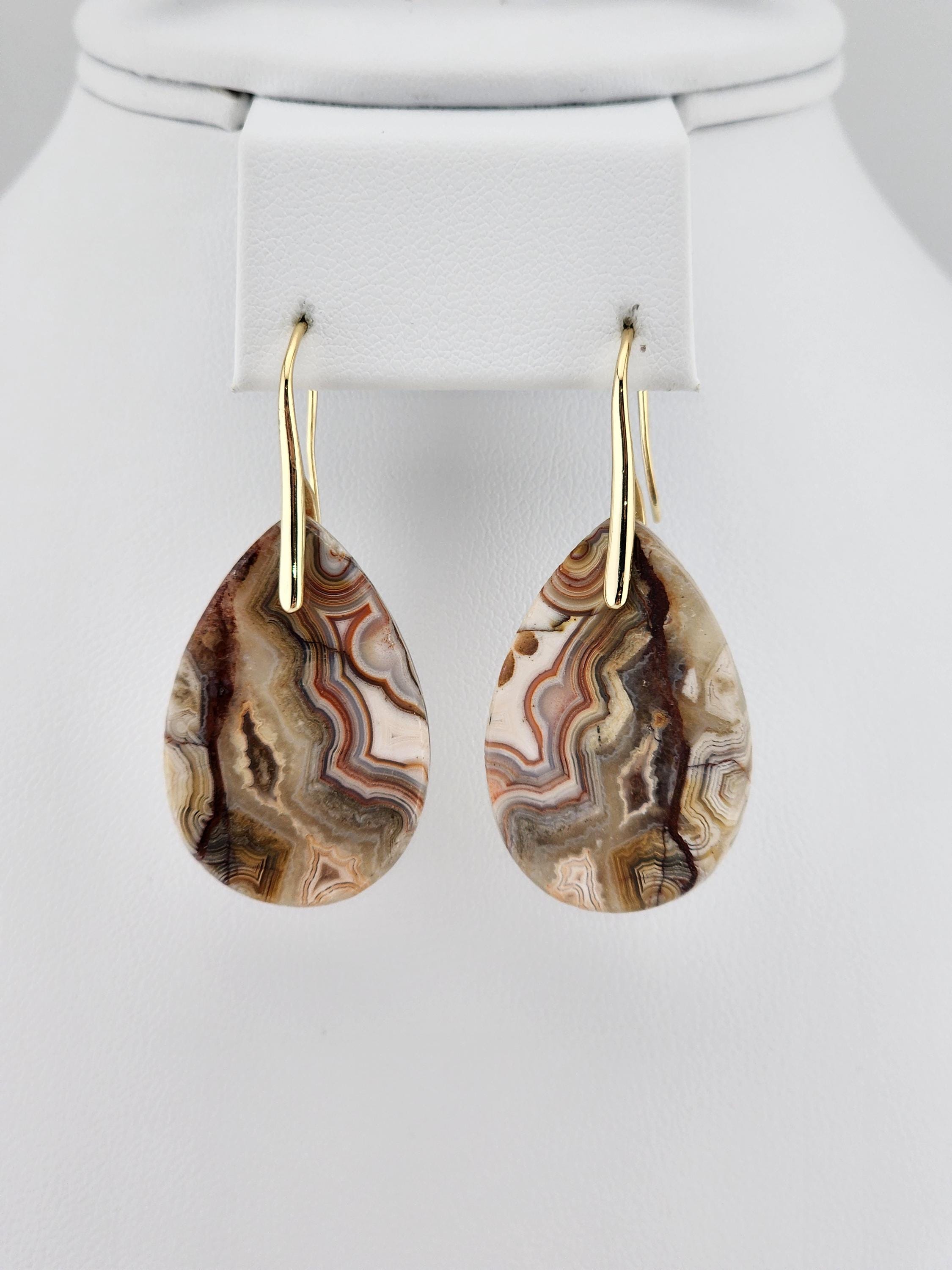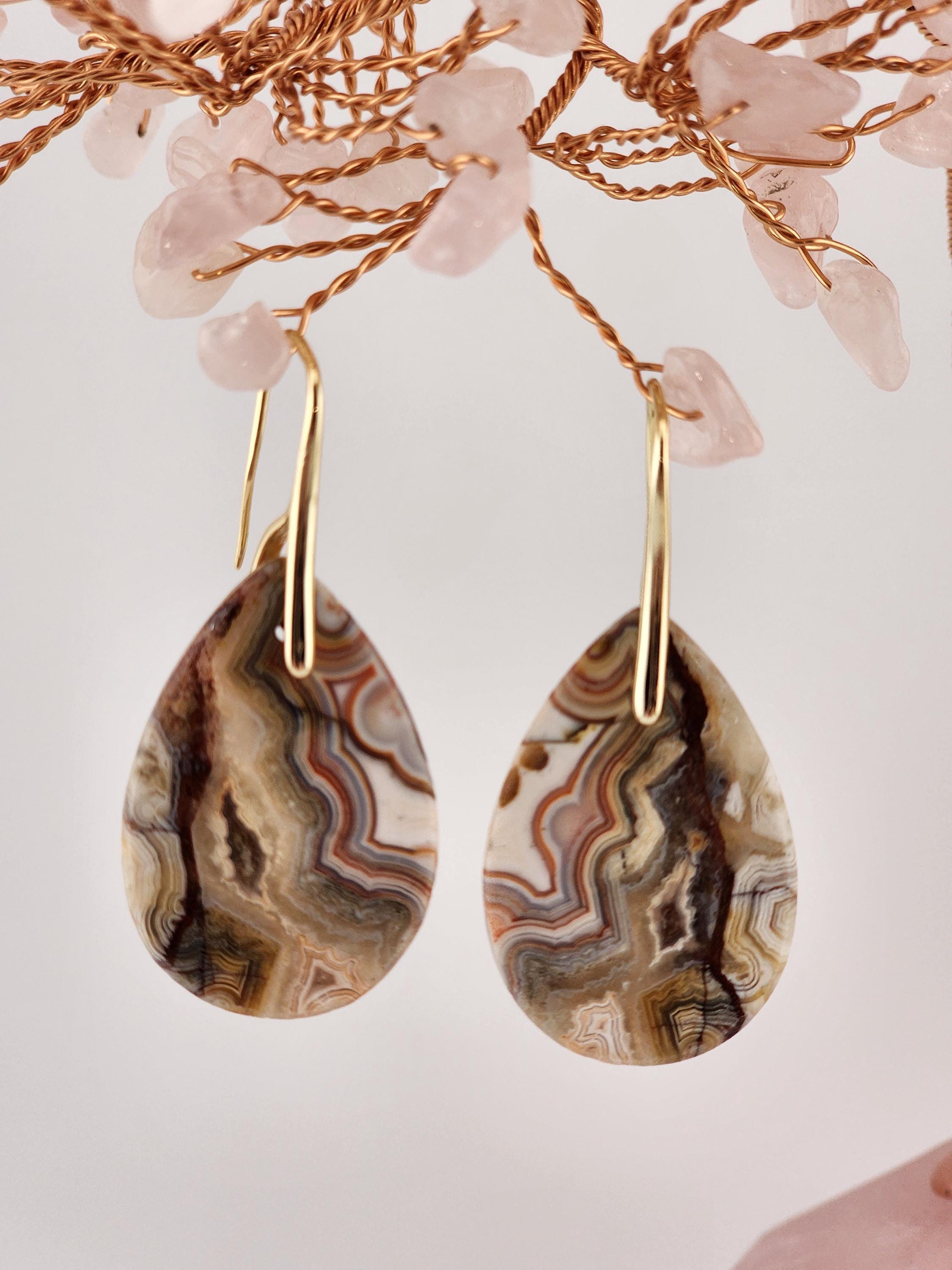 I made these incredible earrings using teardrop shape flat cut natural laguna lace agate slices that come from Mexico and put them on 18k gold plated brass hooks. They are stunning! * Your purchase will arrive in pretty packaging * Shipping is included