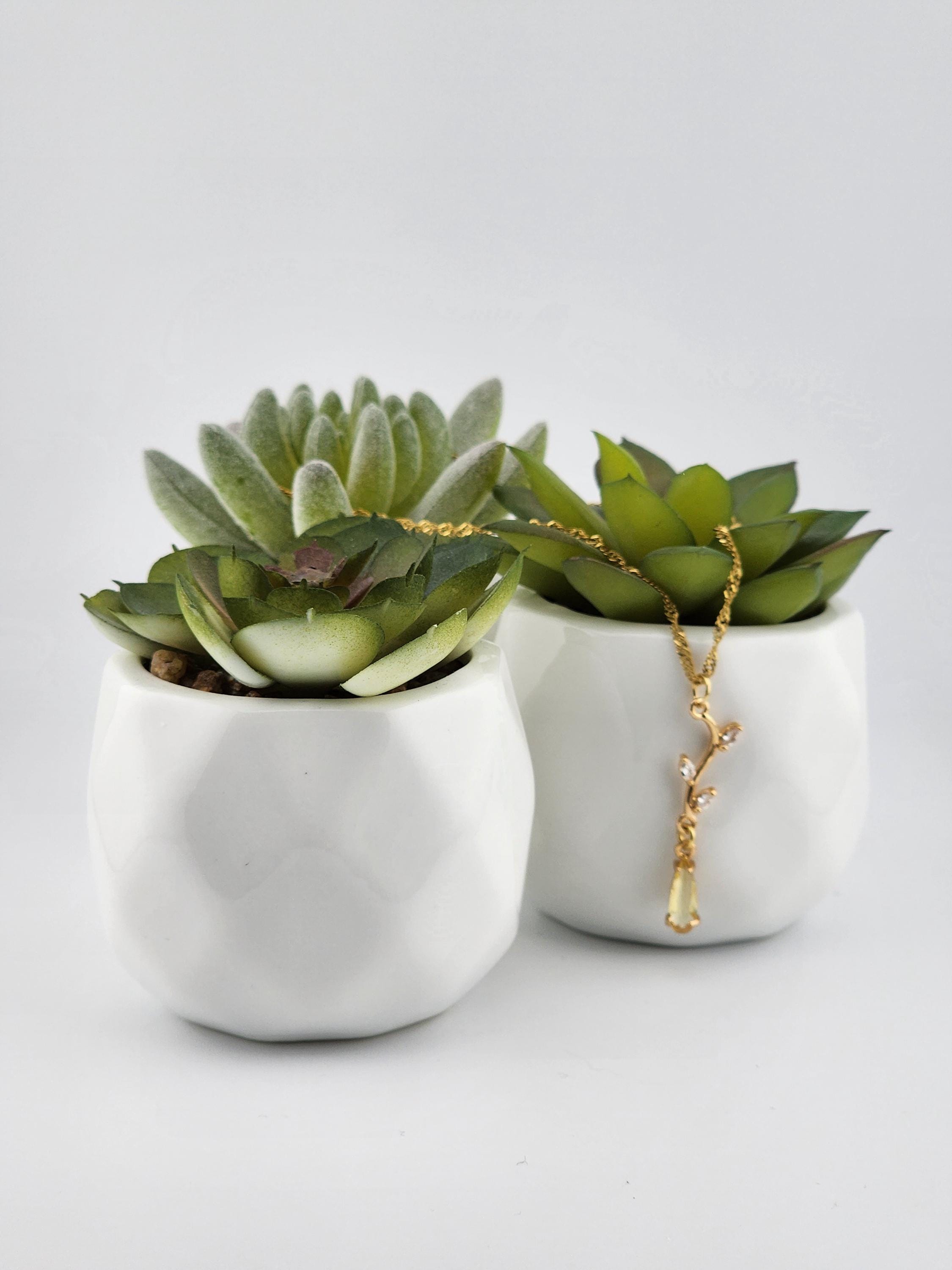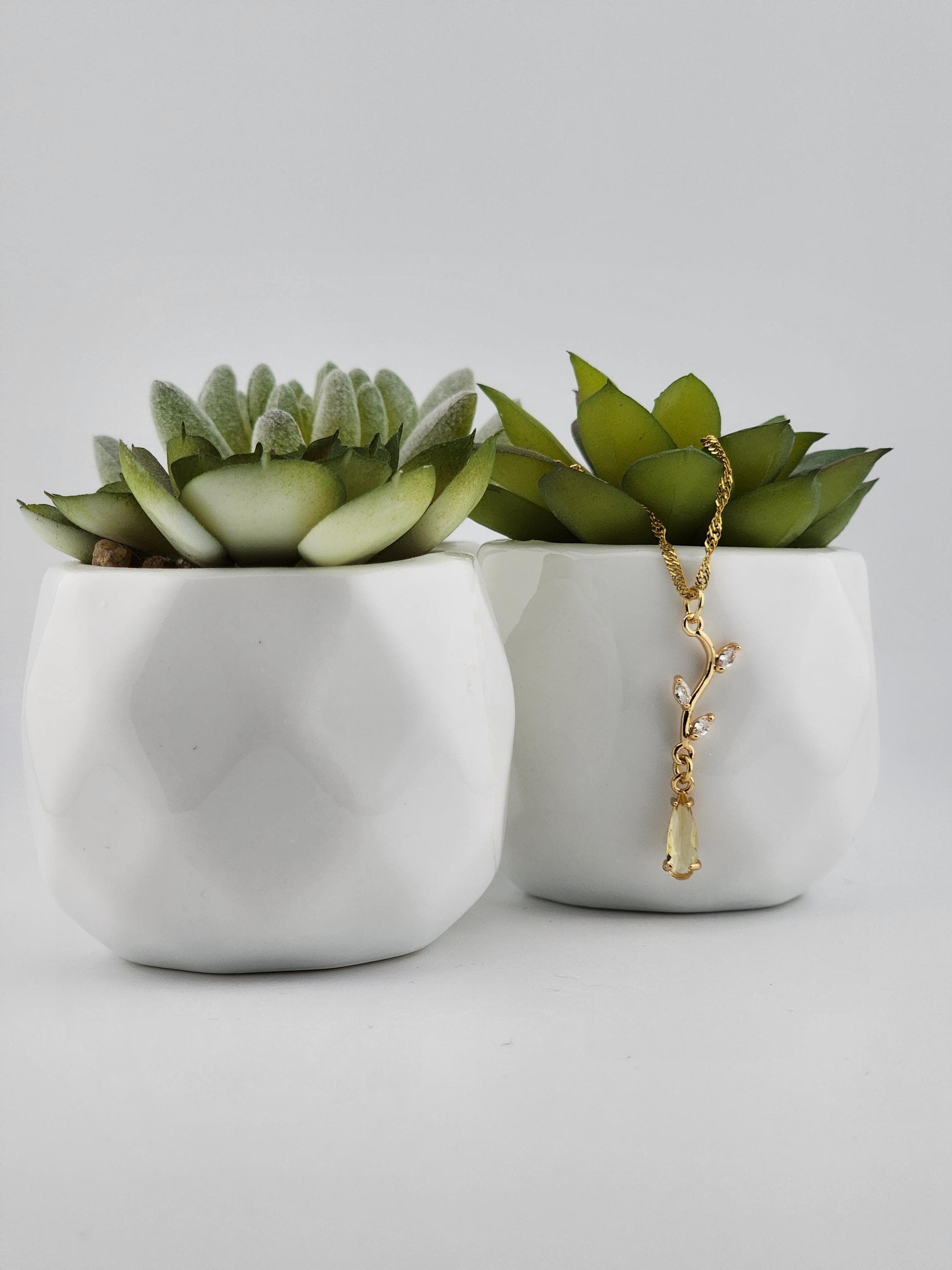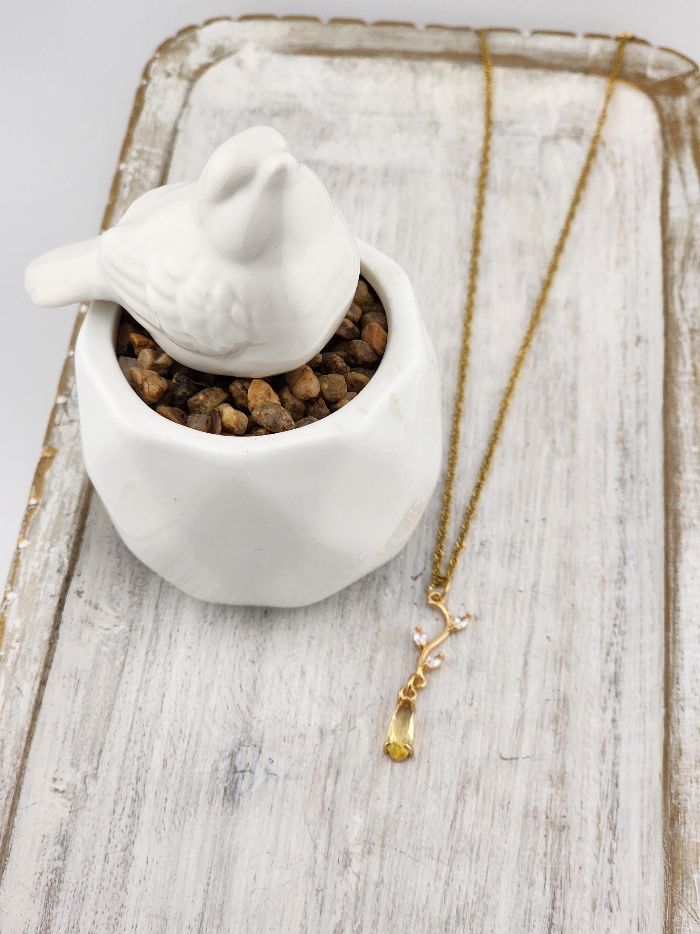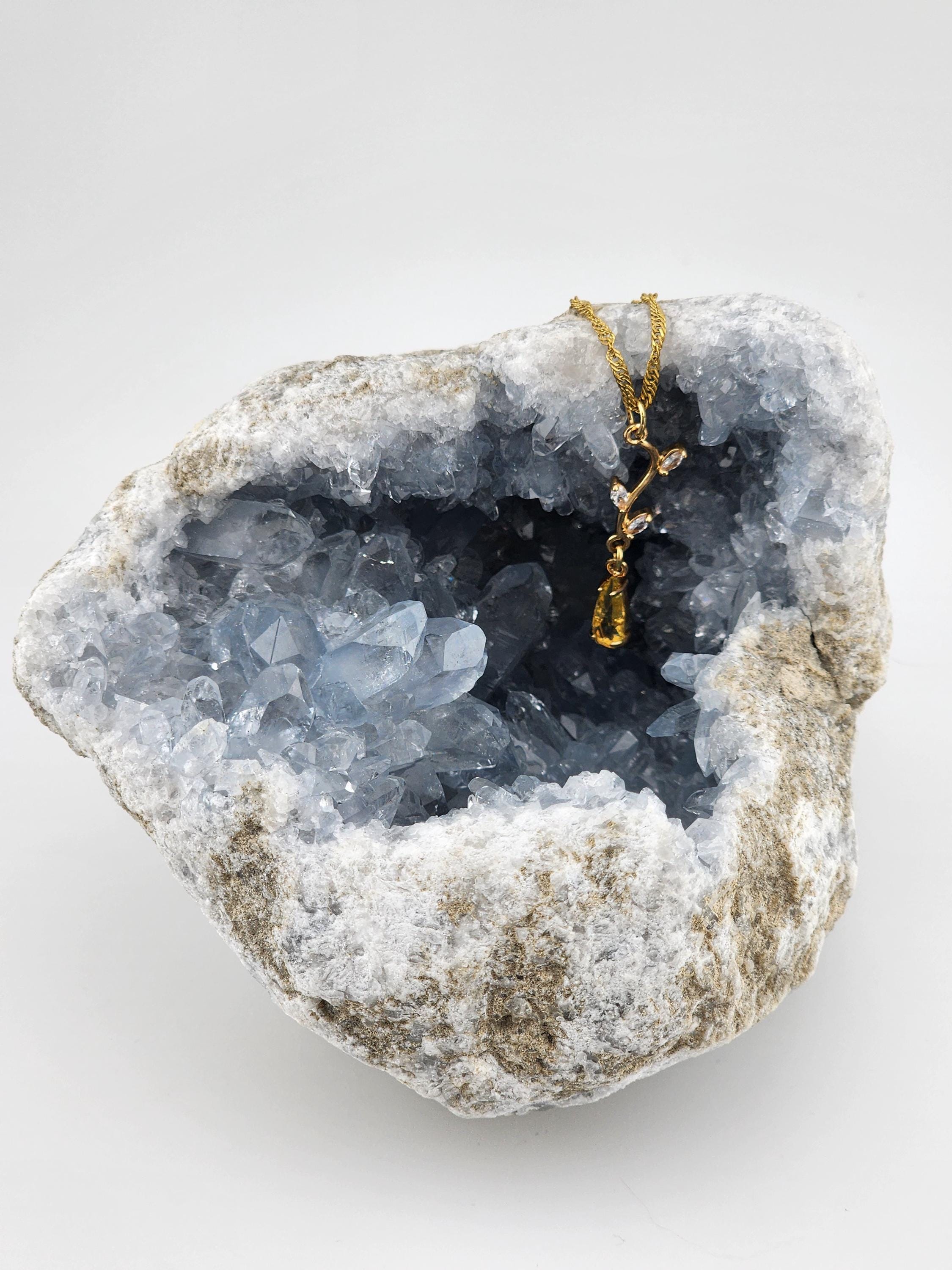 I made this choker using very beautiful vintage twisted Singapore 18k gold plated brass chain that has a 2" extender. It has an 18k gold plated crystal leaf branch connector and a teardrop faceted pale yellow charm. There are 24k gold plated connecting rings.
