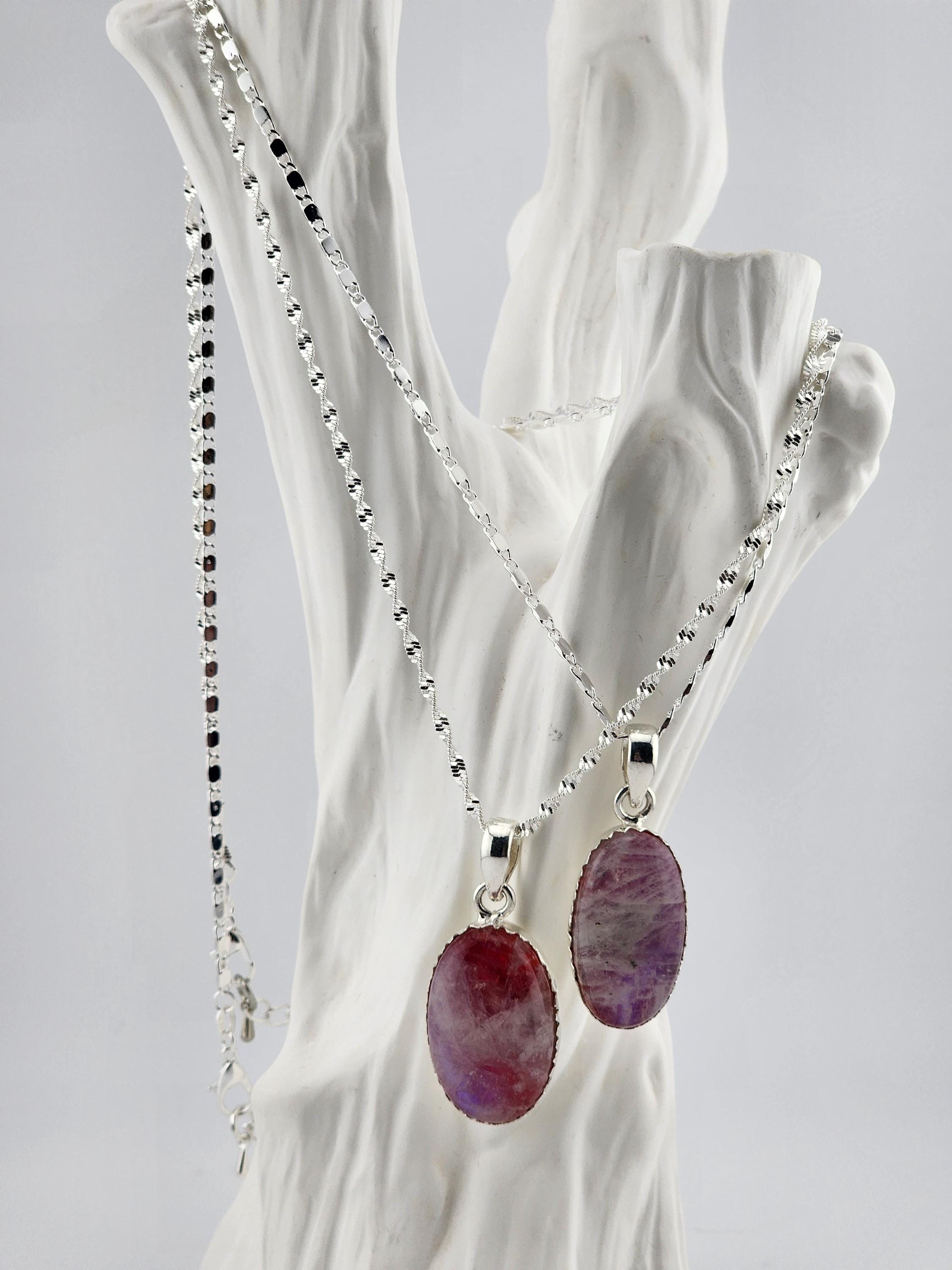I made these necklaces using sterling silver chain with extenders that make them adjustable from 20"-22" in length. Each necklace has a natural, untreated Boho Pink Moonstone pendant set in 925 sterling silver and handcrafted in India. * Your purchase will arrive in pretty packaging >>>>>>>>>>>>>>>>>>>>>>>>>>>>>>>>>>>>>>>>>>>>>>>>>>>>>>>>>>>>>>>>>>>>>>>>>>>>>>>> BENEFITS OF PINK MOONSTONE- * Pink moonstone is associated with enhancing feminine energy, emotional balance, and intuition, as well as promoting self-love and acceptance. >>>>>>>>>>>>>>>>>>>>>>>>>>>>>>>>>>>>>>>>>>>>>>>>>>>>>>>>>>>>>>>>>>>>>>>>>>>>>>> Here's a more detailed look at its potential benefits: * Emotional & Spiritual: * Feminine Energy & Intuition: * Pink moonstone is seen as a stone of the divine feminine, promoting intuition, and psychic abilities. * Emotional Healing & Balance: * It's believed to help calm the mind, soothe emotions, and promote a sense of inner peace, which can be beneficial for emotional healing and stress reduction. * Self-Love & Acceptance: Pink moonstone is said to encourage self-love and acceptance, making it a good choice for those seeking to enhance their relationships or attract new love. Spiritual Growth: *It's thought to assist with spiritual growth and enlightenment, helping you connect with your inner wisdom. OR SO THEY SAY . . .