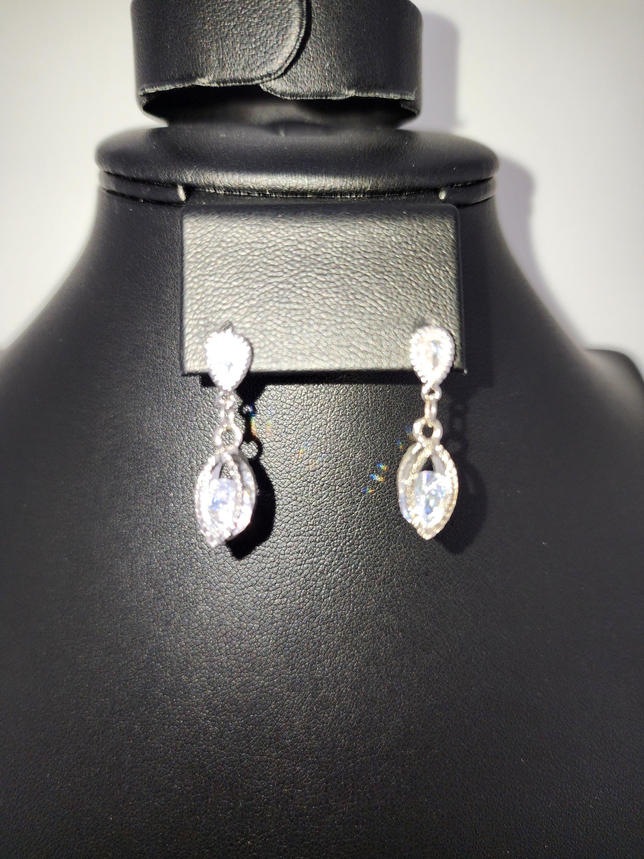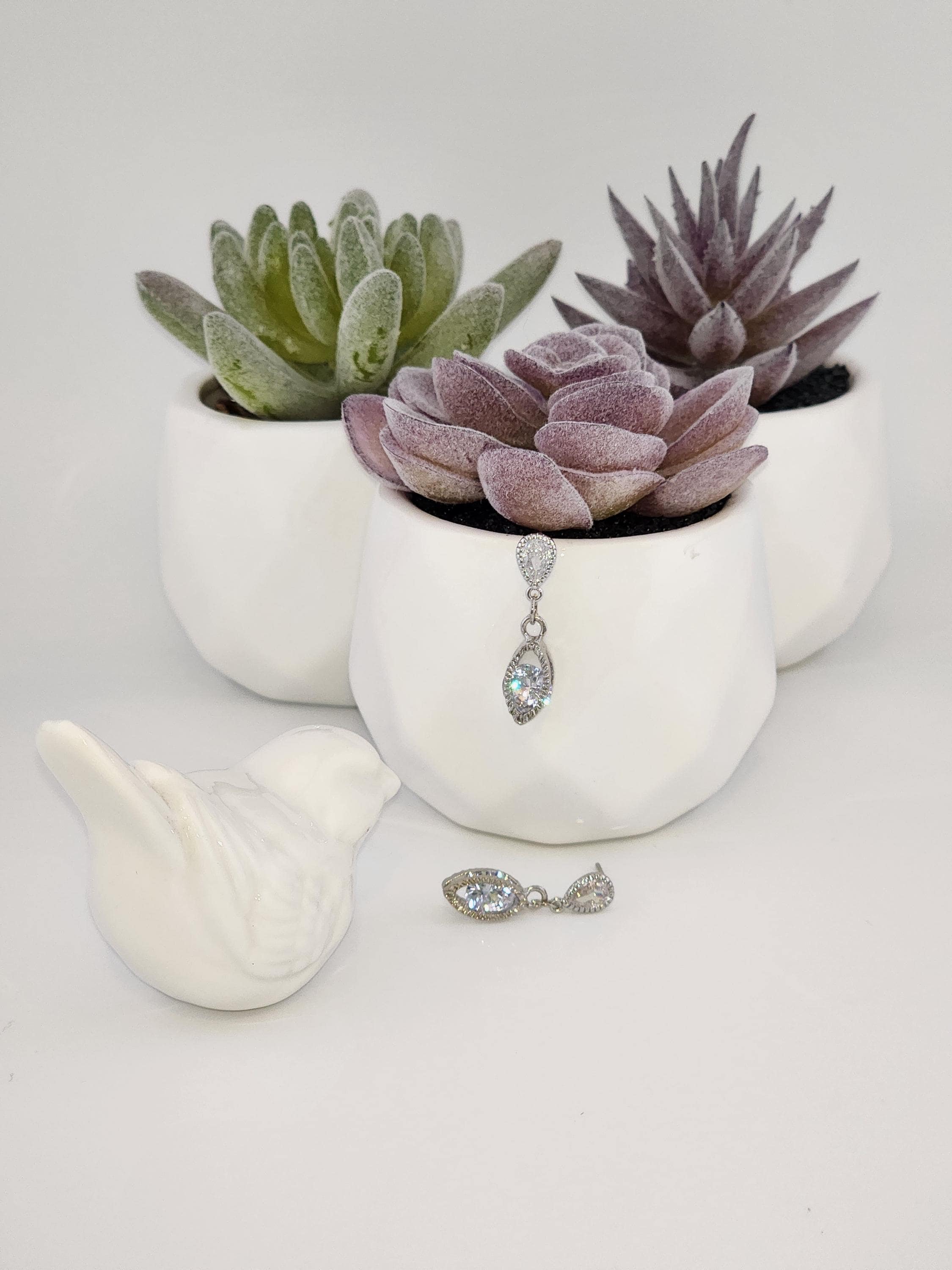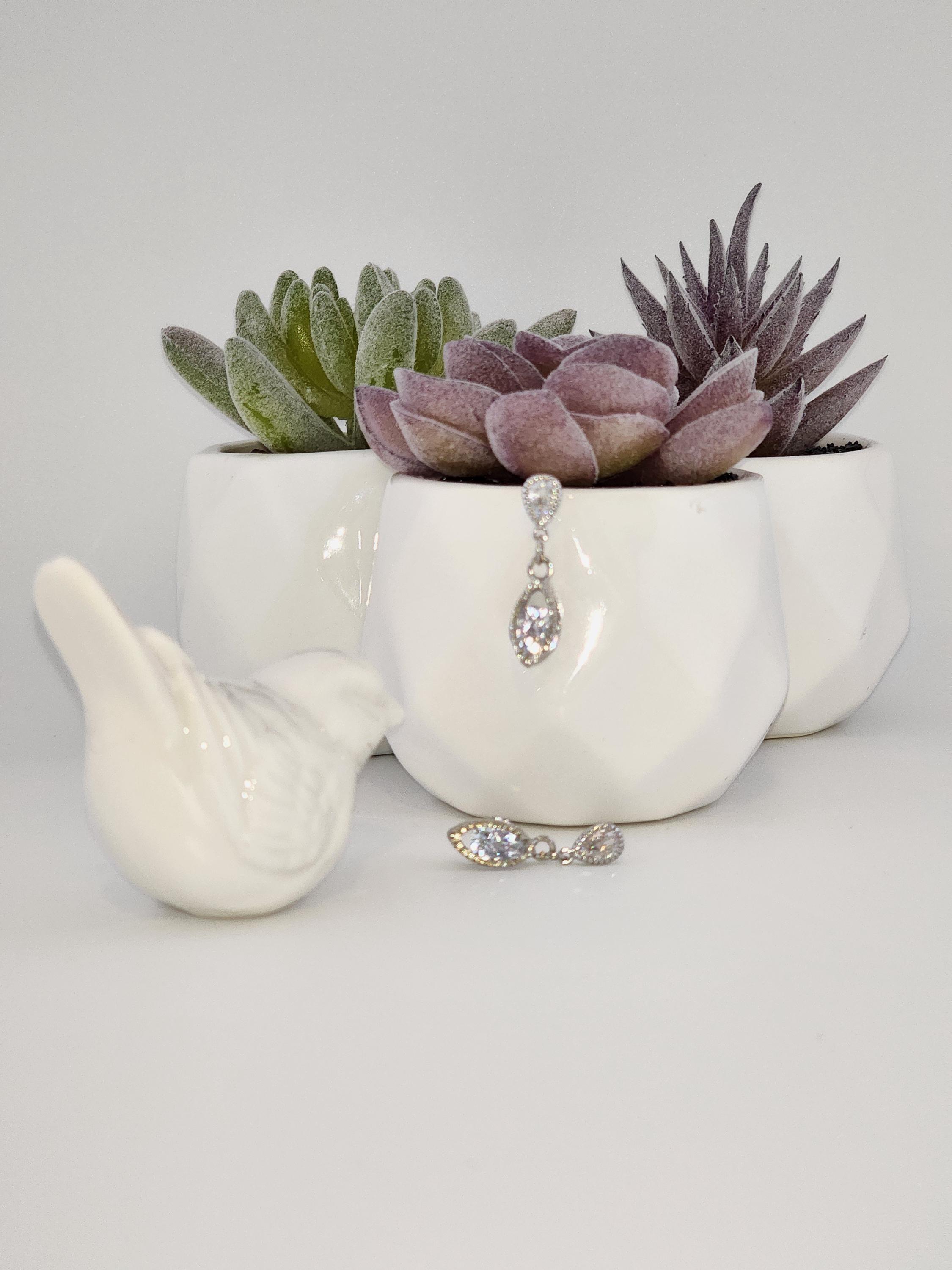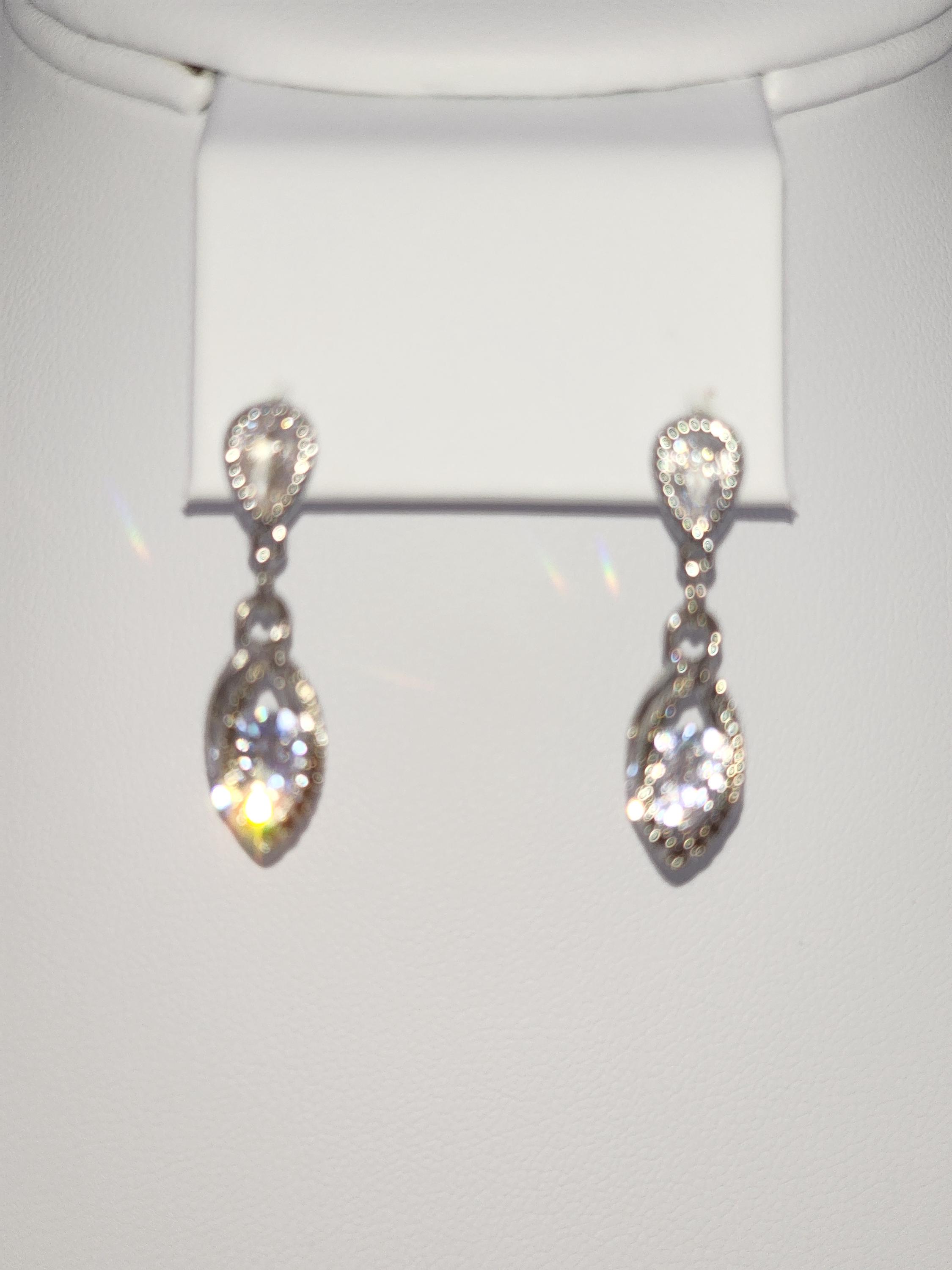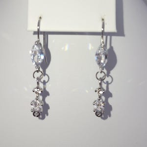 I made these earrings using teardrop platinum plated cubic zirconia studs and added silver plated marquise shape cage charms with round faceted cubic zirconia stones in each. They hang from sterling silver connecting rings. These pictures just don't do them justice. They are very elegant! * Your purchase will arrive in pretty packaging * Shipping is included