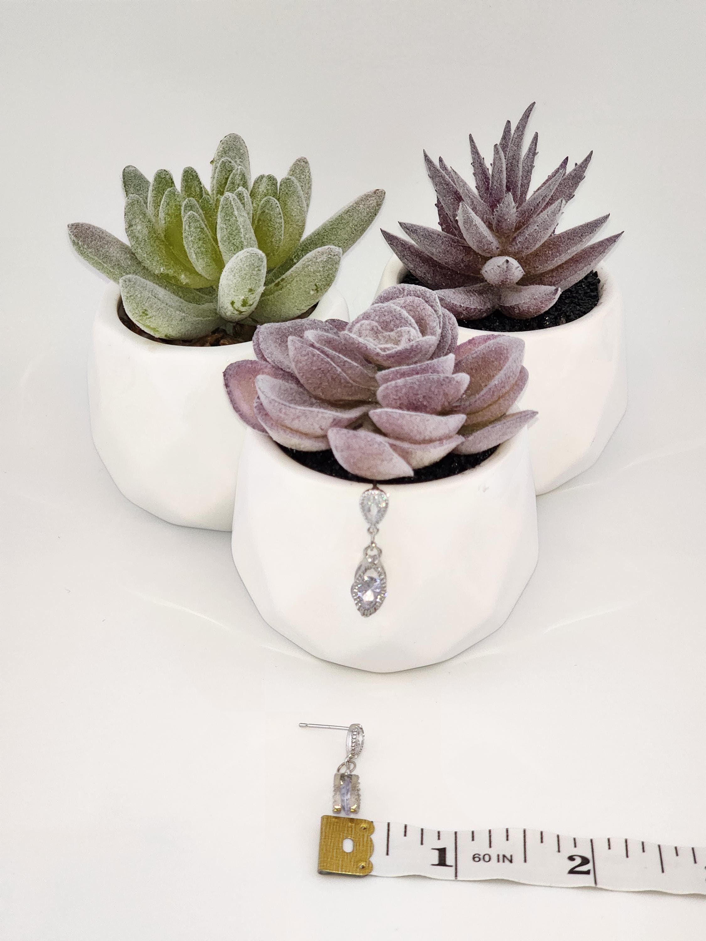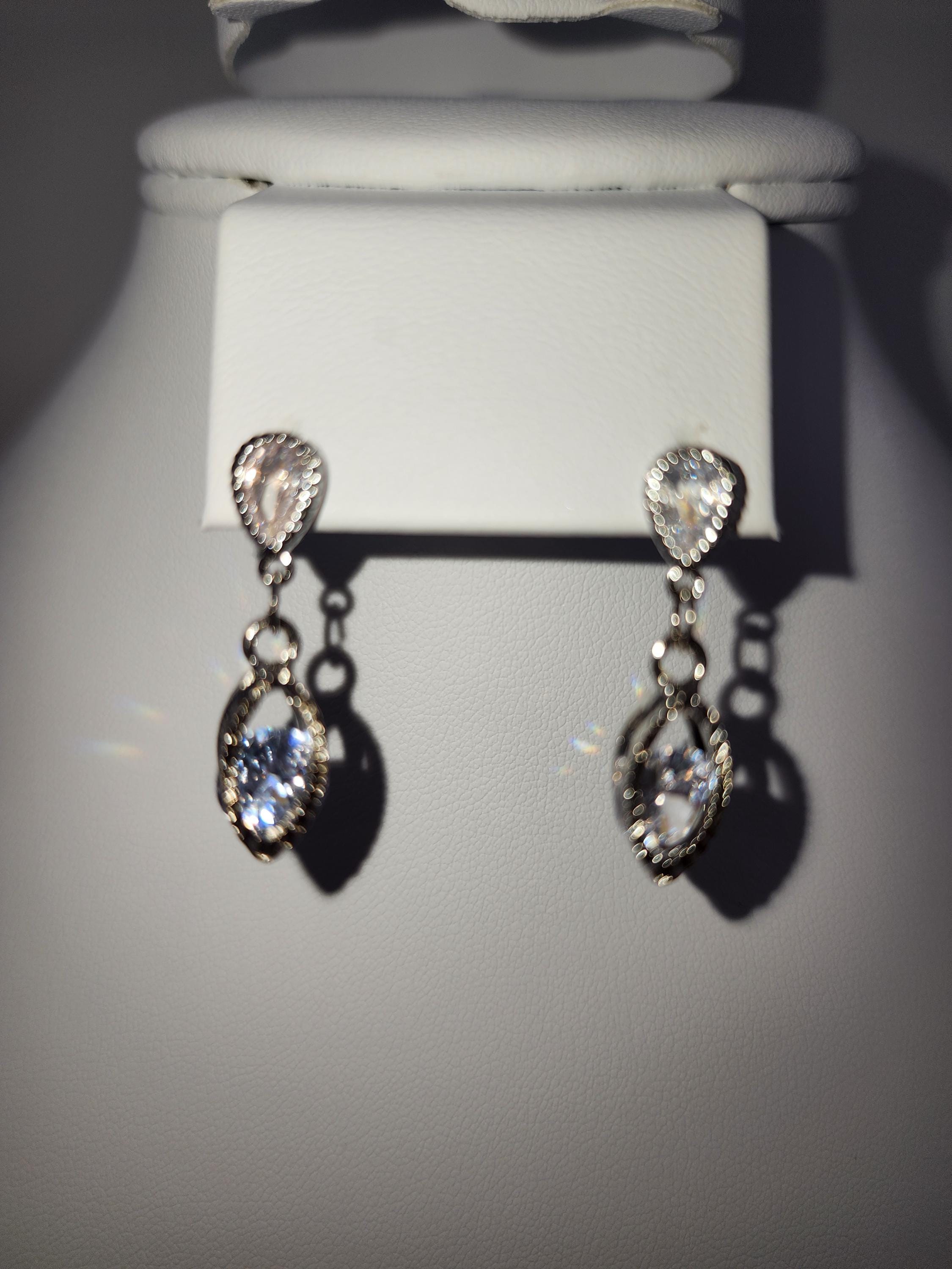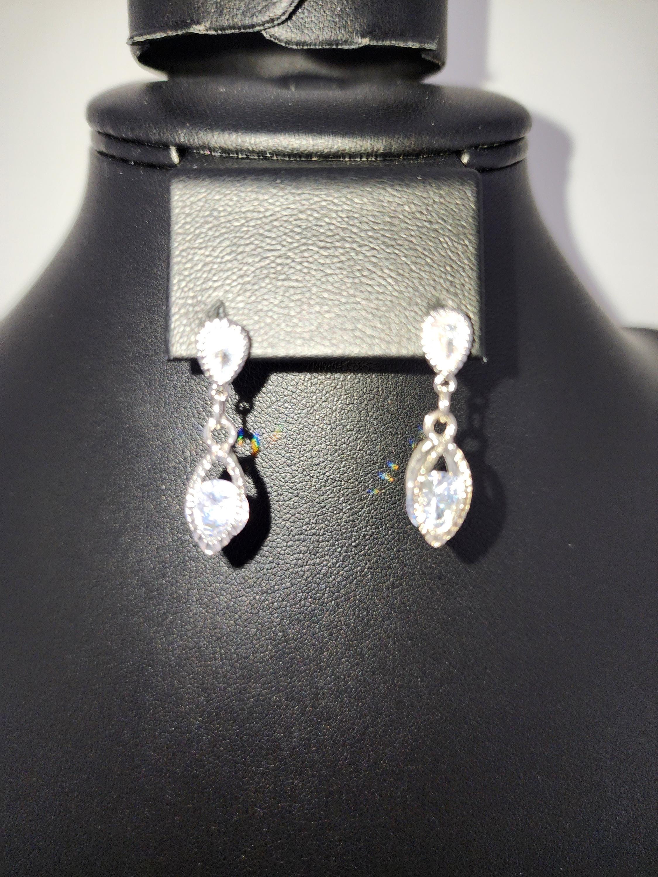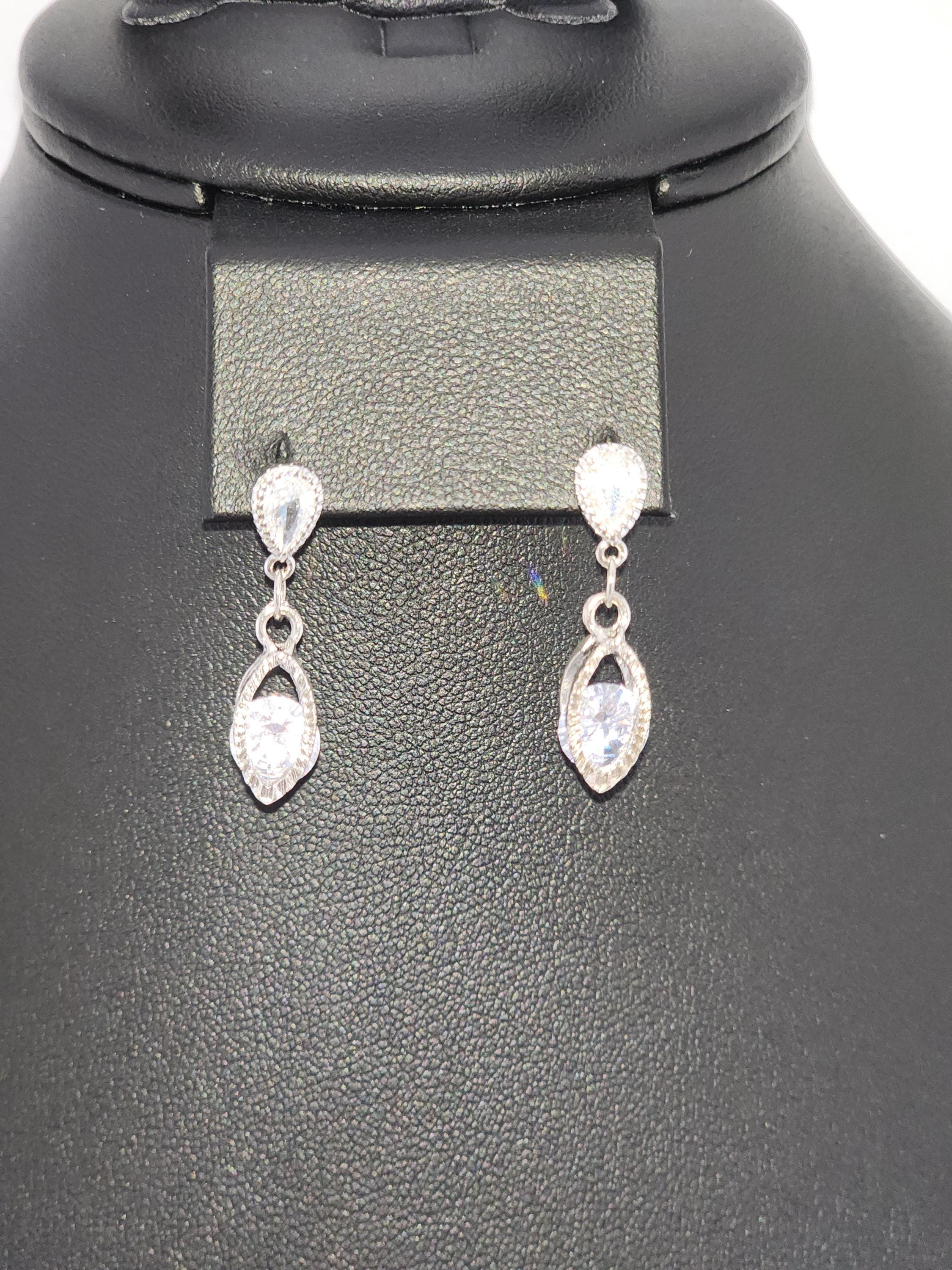 I made these earrings using teardrop platinum plated cubic zirconia studs and added silver plated marquise shape cage charms with round faceted cubic zirconia stones in each. They hang from sterling silver connecting rings. These pictures just don't do them justice. They are very elegant! * Your purchase will arrive in pretty packaging * Shipping is included