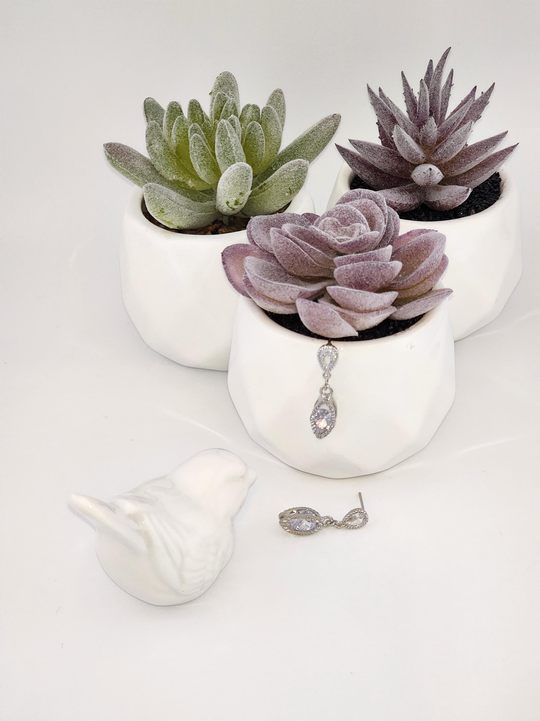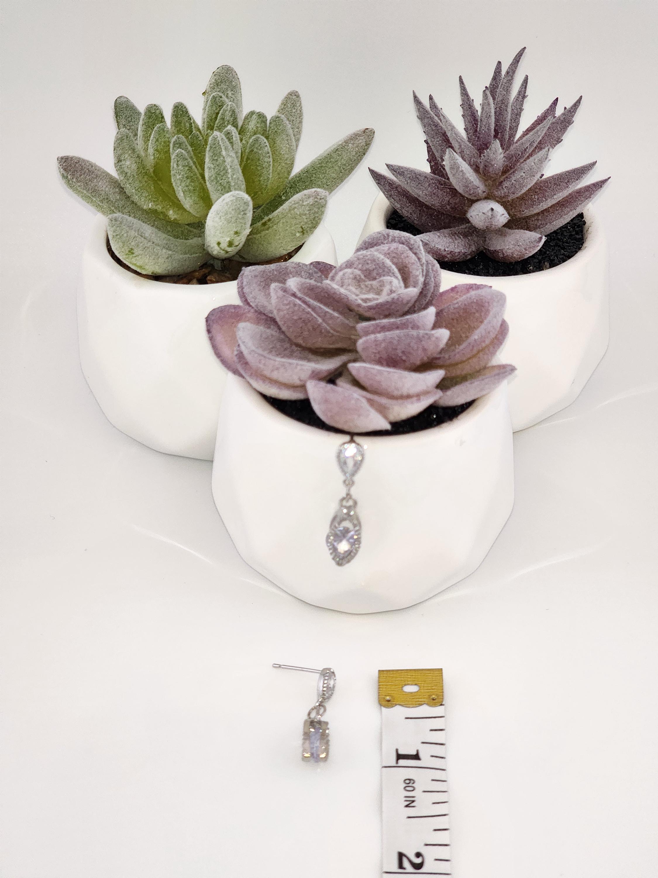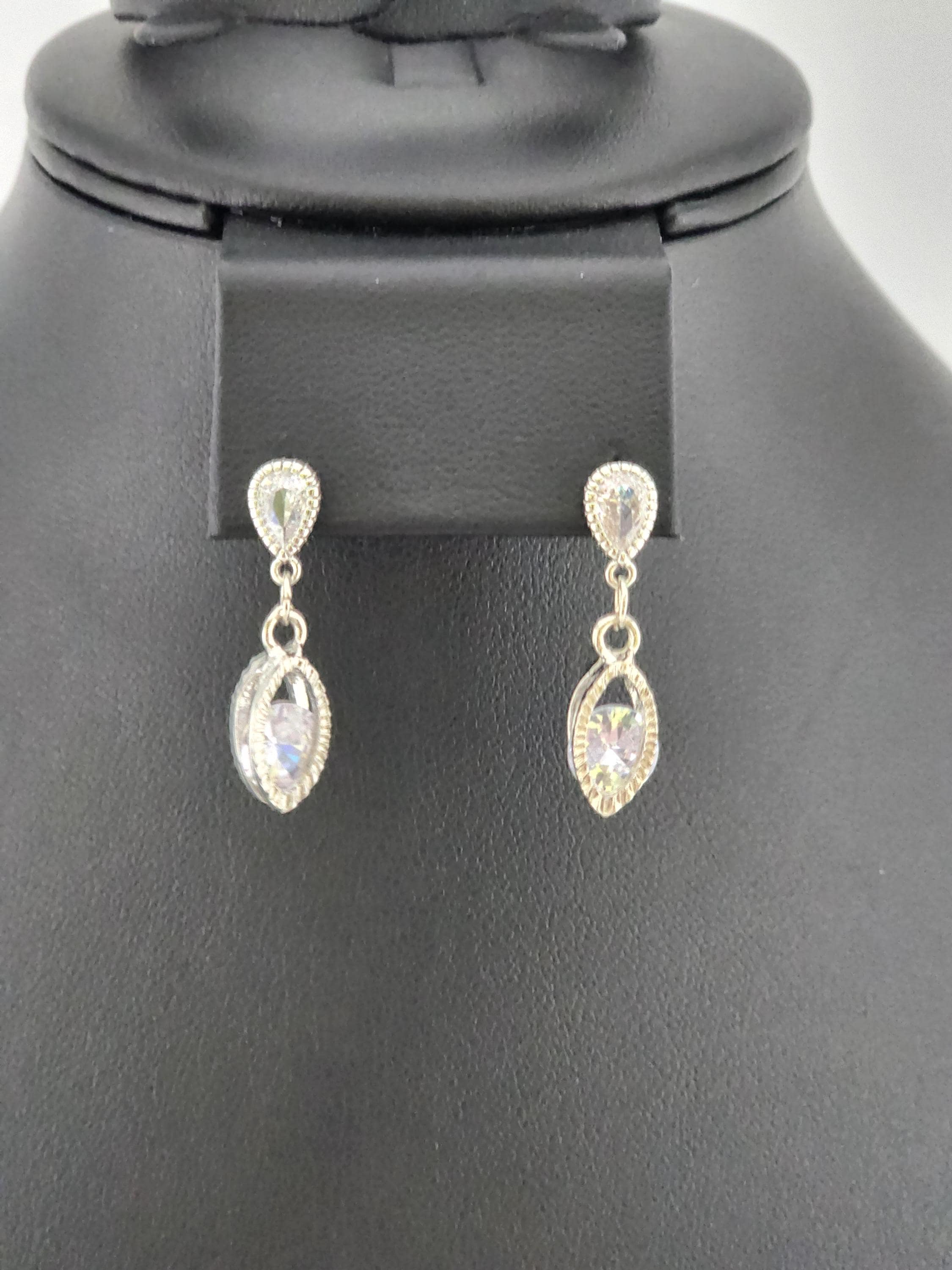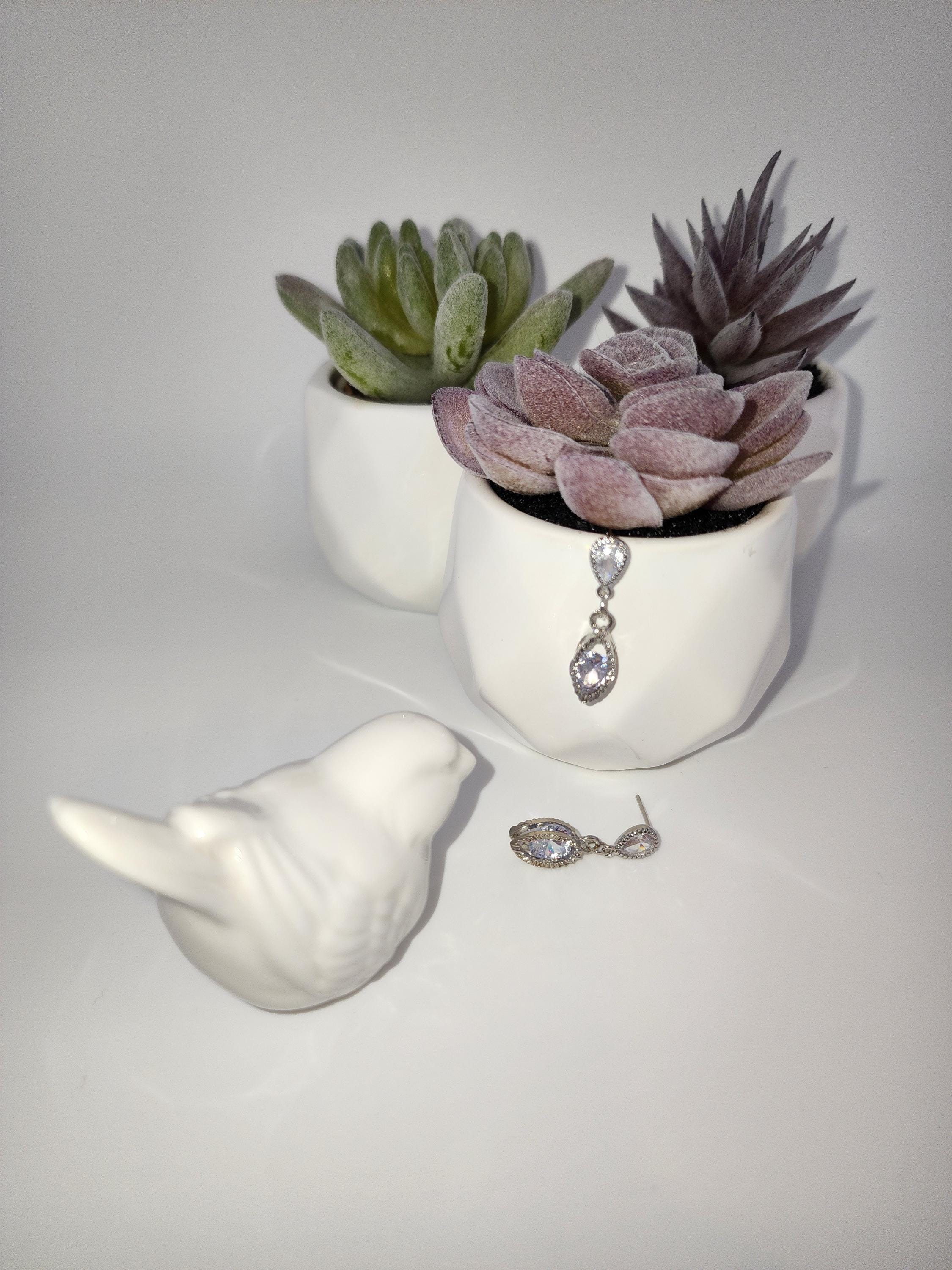 I made these earrings using teardrop platinum plated cubic zirconia studs and added silver plated marquise shape cage charms with round faceted cubic zirconia stones in each. They hang from sterling silver connecting rings. These pictures just don't do them justice. They are very elegant! * Your purchase will arrive in pretty packaging * Shipping is included