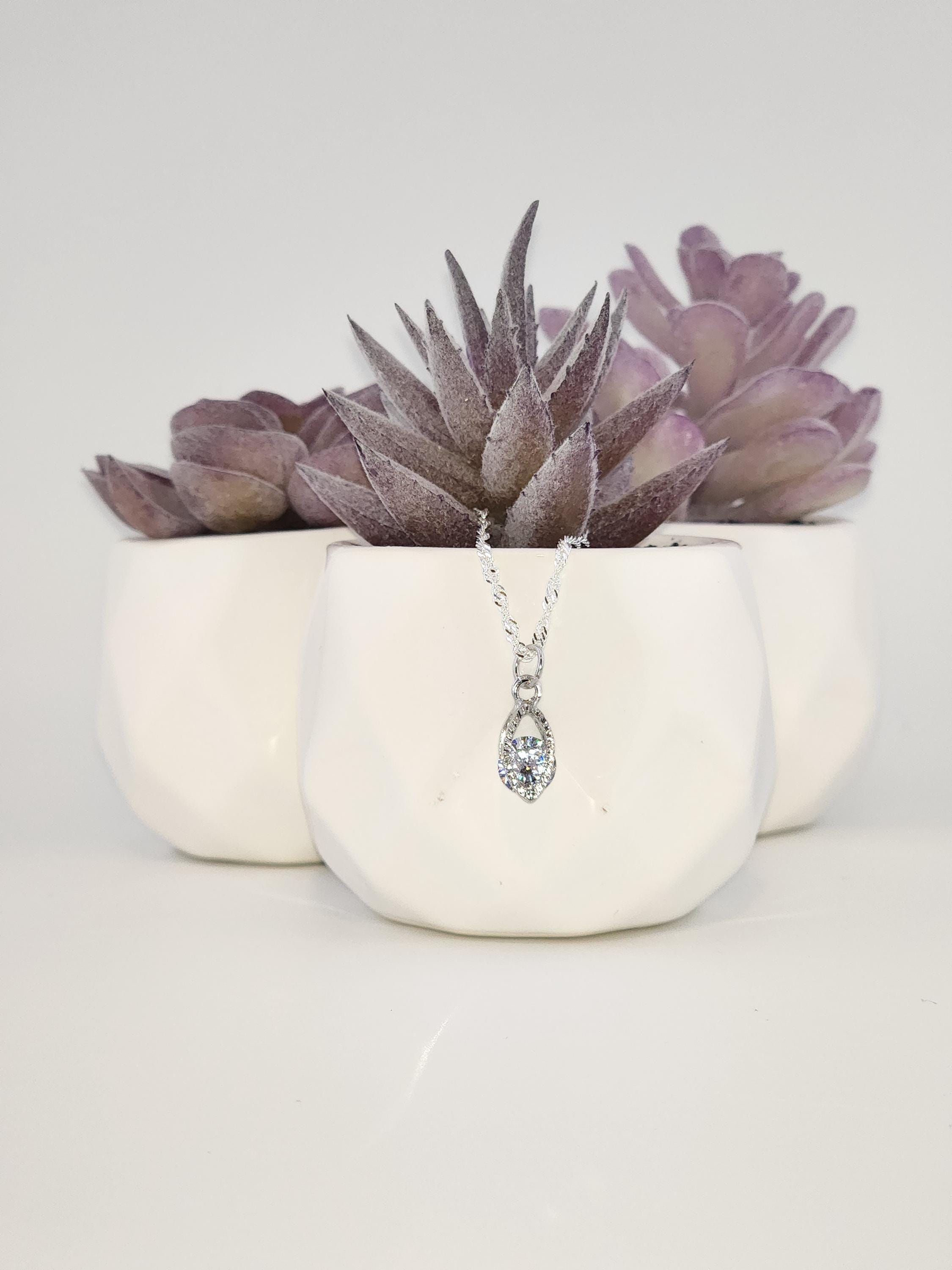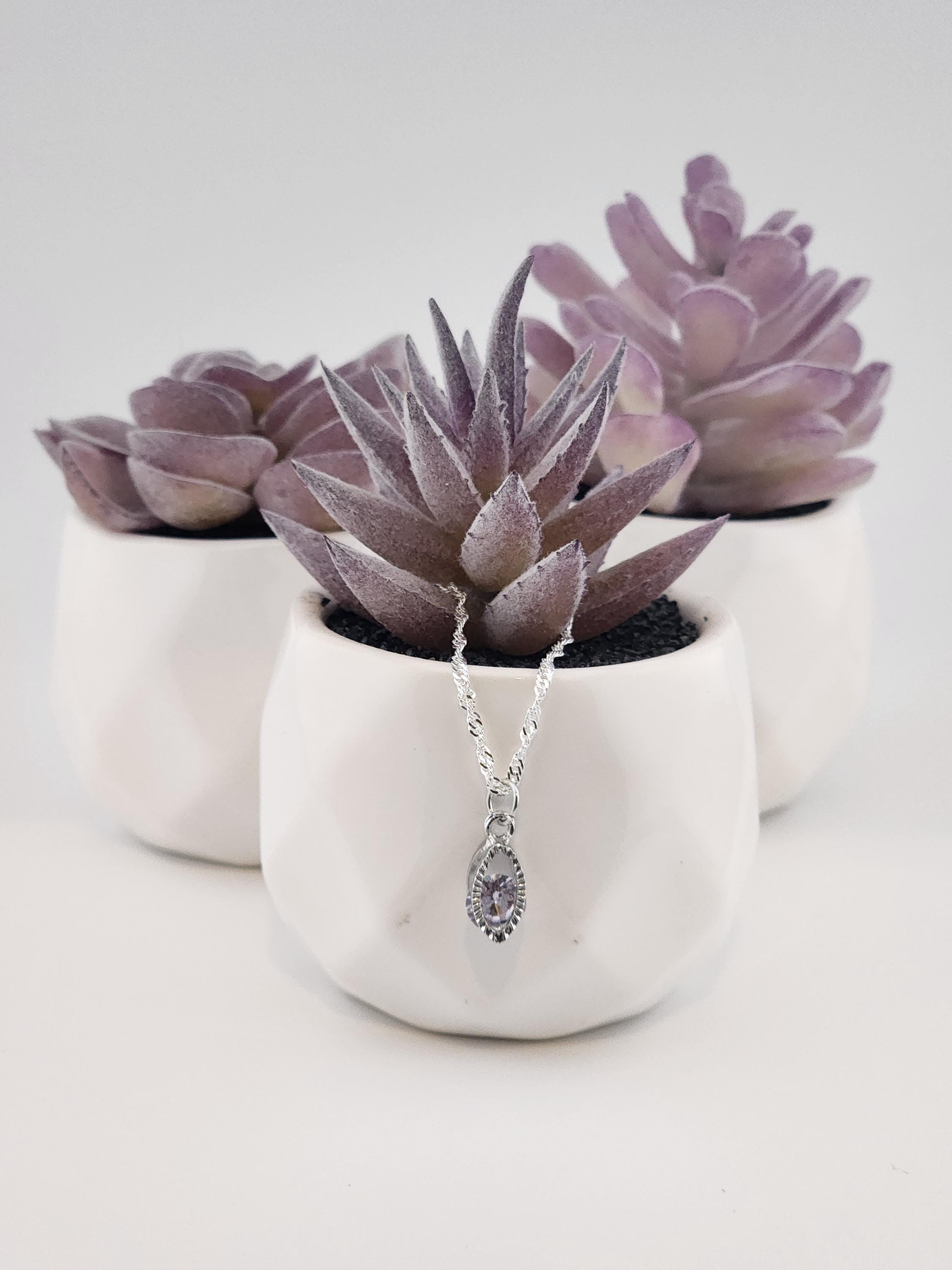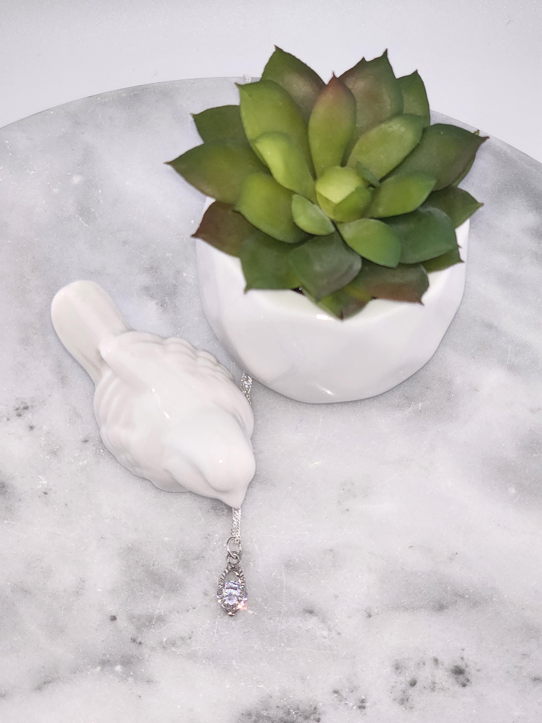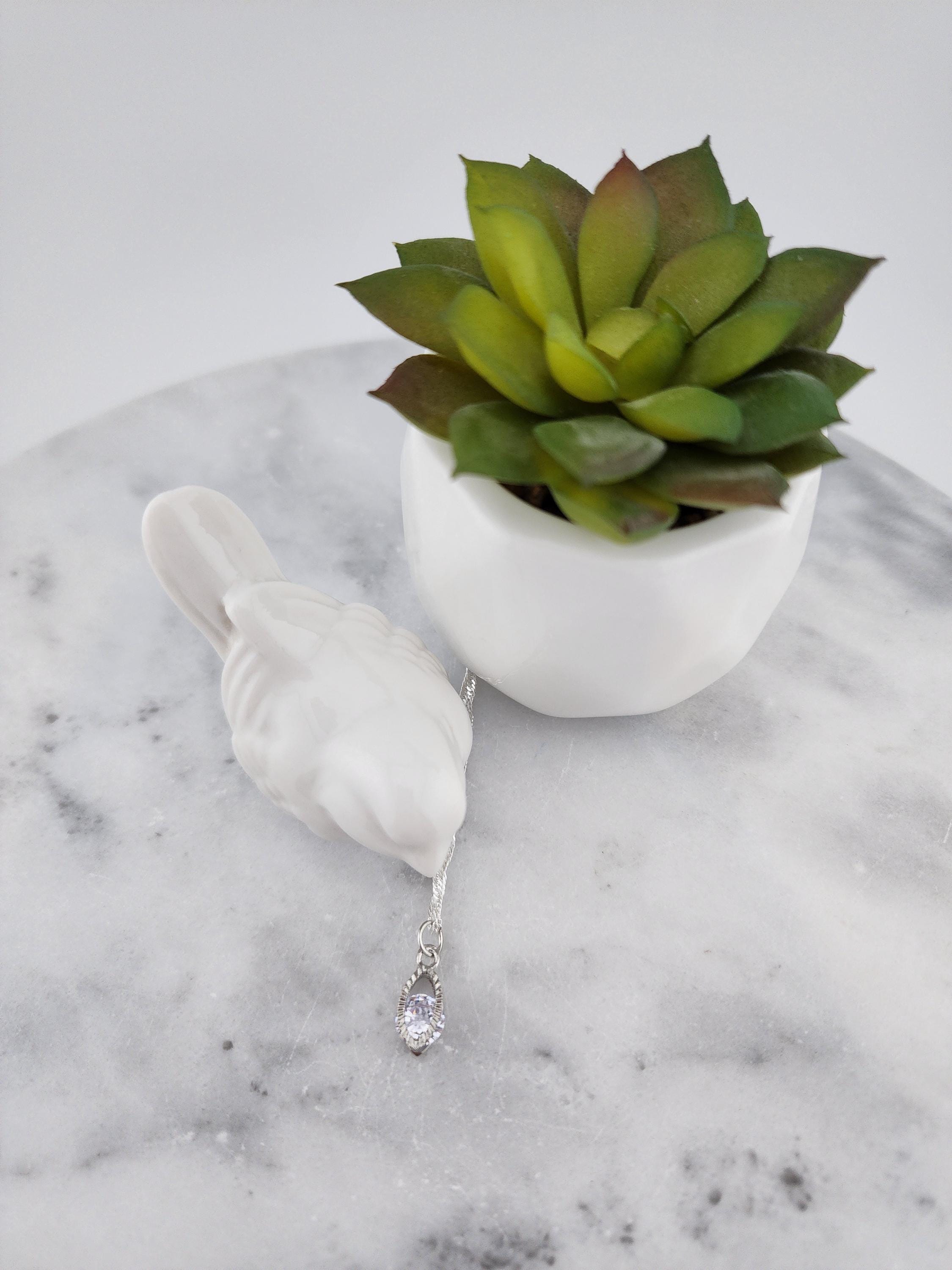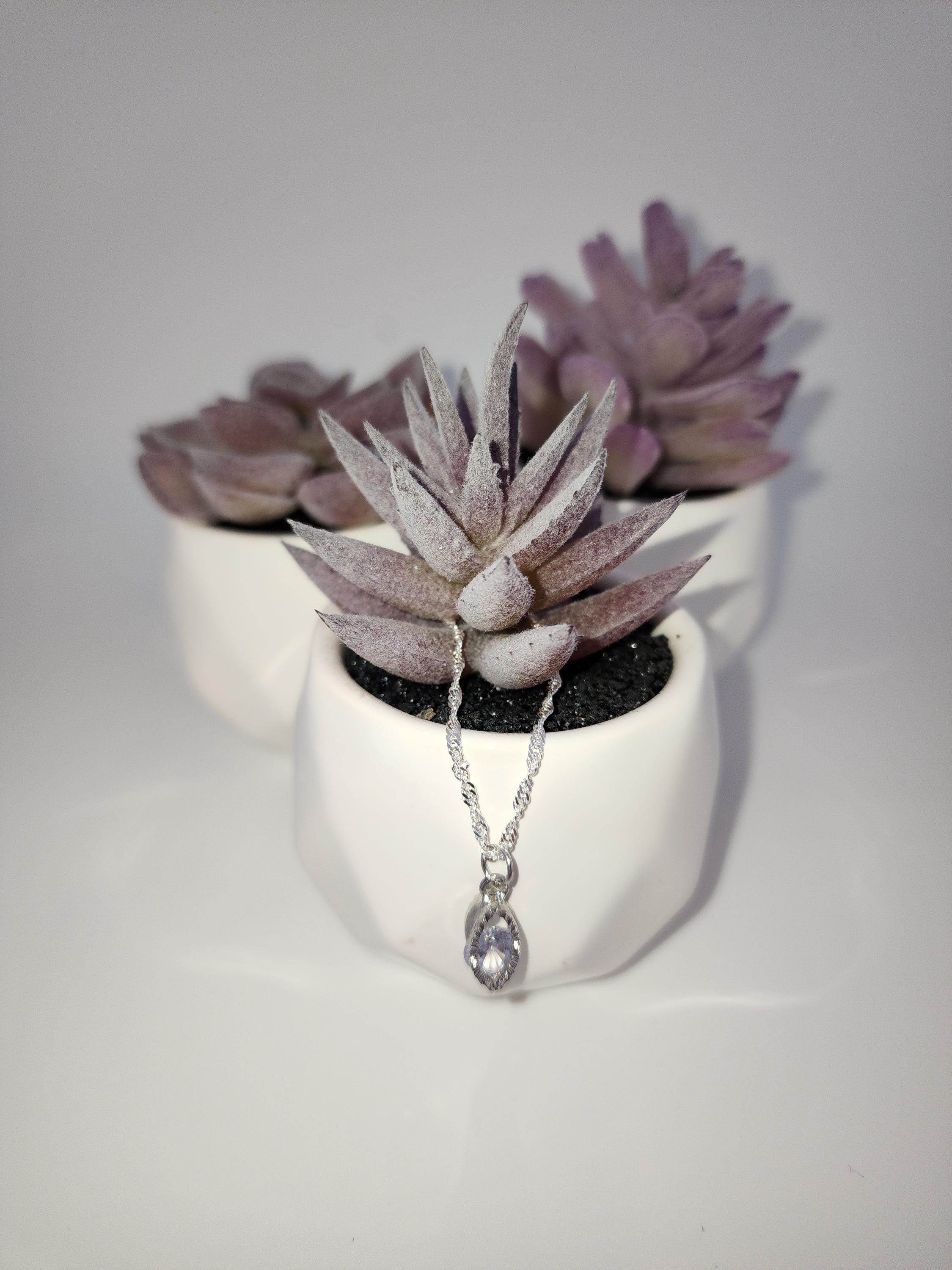 I made this extremely elegant necklace using dainty twisted sterling silver chain. I added a gorgeous silver plated marquise shape cage pendant that has a round cut faceted crystal in its center and hangs from a sterling silver ring. So Pretty! * Your purchase will arrive in pretty packaging * Shipping is included >>>>>>>>>>>>>>>>>>>>>>>>>>>>>>>>>>>>>>>>>>>>>>>>>>>>>>>>>>>>>>>>>>>>>>>>>>>>>>>>>>>>>> HEALTH AND WELLNESS BENEFITS: * Hypoallergenic: Sterling silver is less likely to cause allergic reactions, making it a safe choice for people with sensitive skin. * Antimicrobial properties: Silver has natural antibacterial and antifungal qualities that can help protect against harmful microorganisms. * Temperature regulation: Silver is highly thermally conductive, which may help balance body temperature and provide a cooling sensation in hot weather. * Immune support: Some sources suggest that wearing silver can help boost the immune system and circulation. * Stress reduction: Wearing silver is believed to have a calming effect, helping to reduce stress, anxiety, and improve mood. OR, SO THEY SAY... >>>>>>>>>>>>>>>>>>>>>>>>>>>>>>>>>>>>>>>>>>>>>>>>>>>>>>>>>>>>>>>>>>>>>>>>>>>>>>>>>>>>>> PRACTICAL AND AESTHETIC BENEFITS: * Durability: The addition of other metals like copper makes sterling silver more durable and resistant to scratching and wear than pure silver. * Affordability: It is a more affordable precious metal compared to gold or platinum, offering a luxurious feel at a lower price point. * Versatility: Sterling Silvers' timeless, striking color is flattering on most skin tones and complements a wide variety of styles and outfits. * Easy to maintain: It is relatively low-maintenance and can be cleaned and polished to restore its shine.