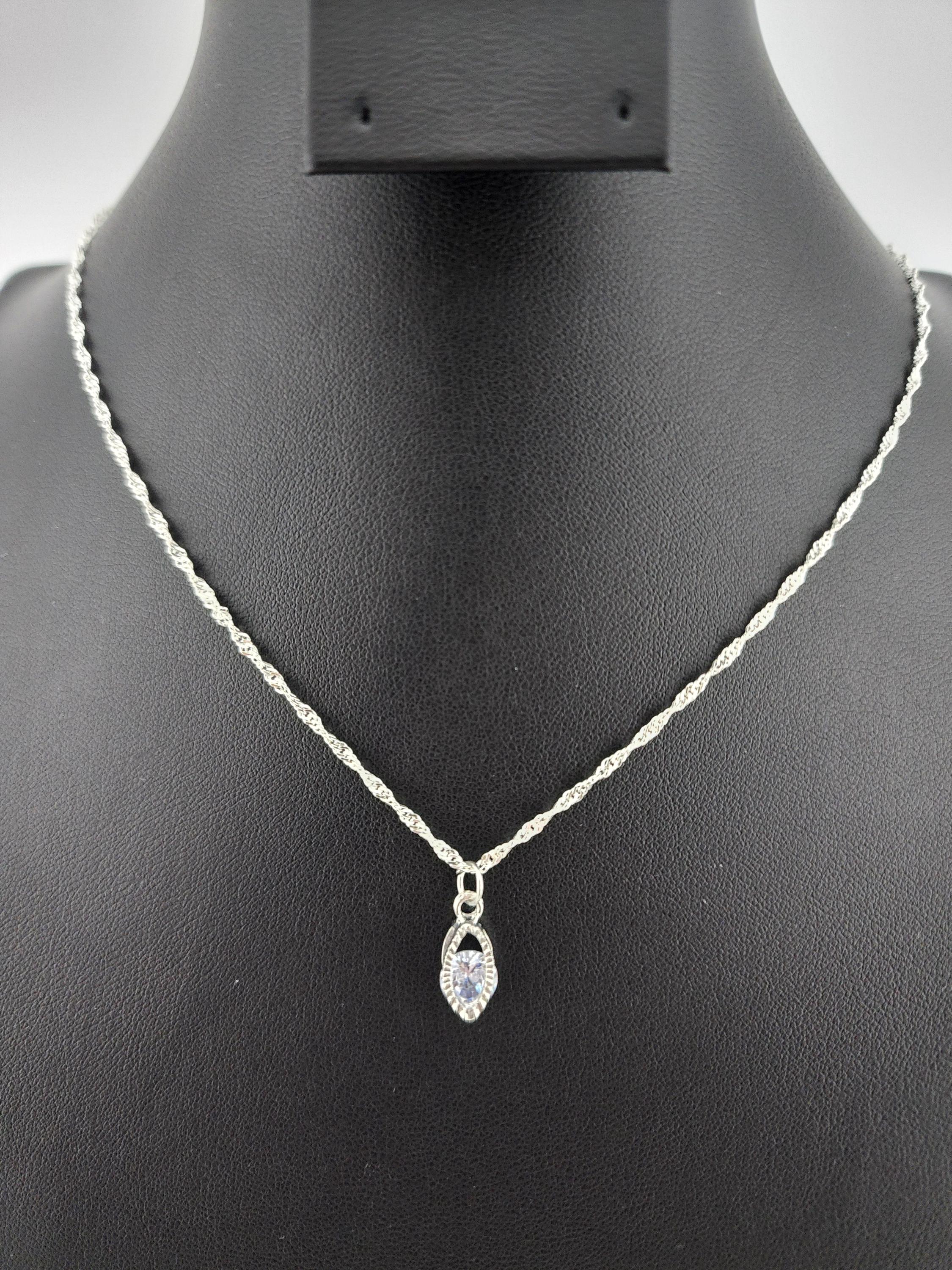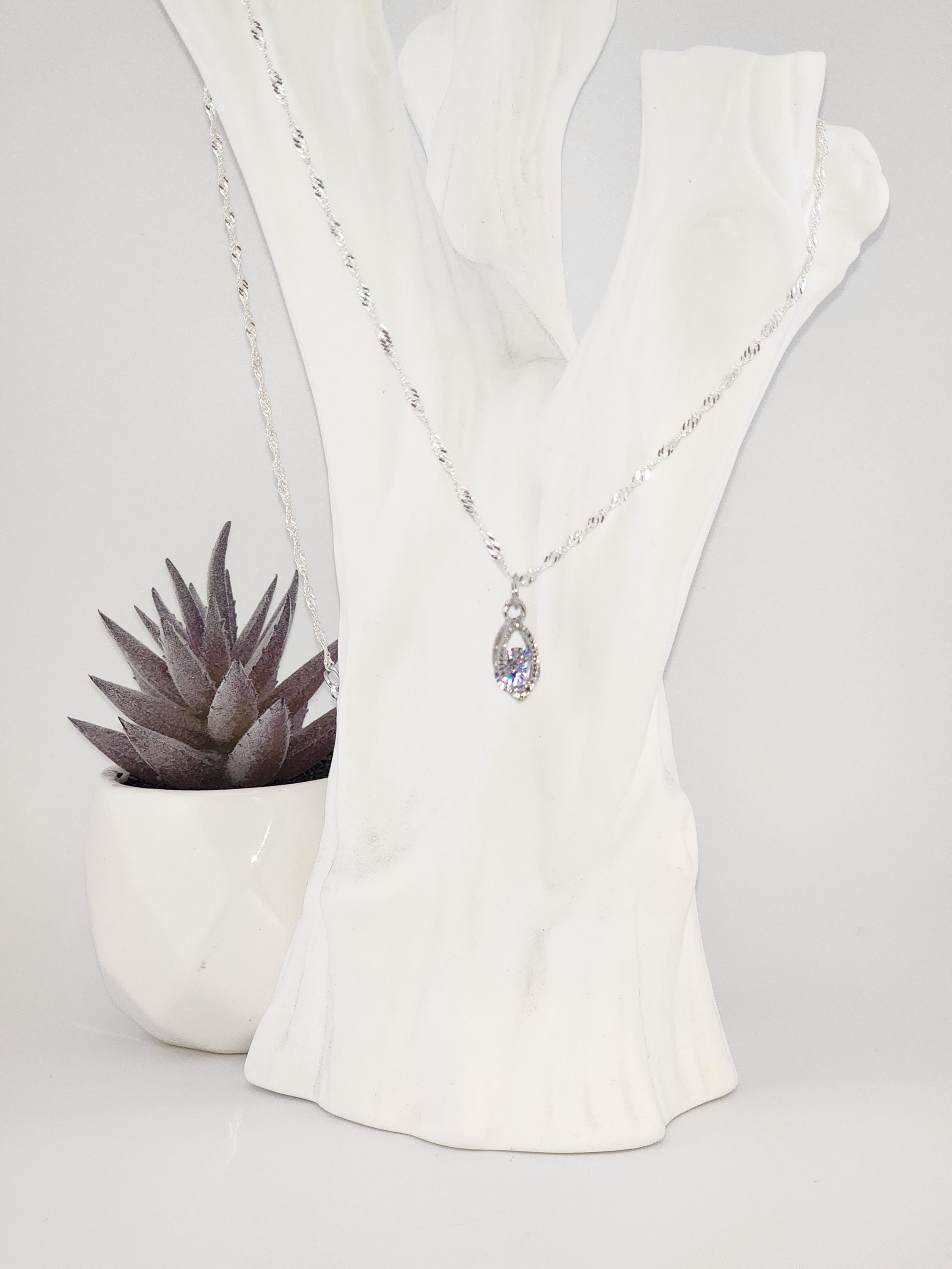 I made this extremely elegant necklace using dainty twisted sterling silver chain. I added a gorgeous silver plated marquise shape cage pendant that has a round cut faceted crystal in its center and hangs from a sterling silver ring. So Pretty! * Your purchase will arrive in pretty packaging >>>>>>>>>>>>>>>>>>>>>>>>>>>>>>>>>>>>>>>>>>>>>>>>>>>>>>>>>>>>>>>>>>>>>>>>>>>>>>>>>>>>>> HEALTH AND WELLNESS BENEFITS: * Hypoallergenic: Sterling silver is less likely to cause allergic reactions, making it a safe choice for people with sensitive skin. * Antimicrobial properties: Silver has natural antibacterial and antifungal qualities that can help protect against harmful microorganisms. * Temperature regulation: Silver is highly thermally conductive, which may help balance body temperature and provide a cooling sensation in hot weather. * Immune support: Some sources suggest that wearing silver can help boost the immune system and circulation. * Stress reduction: Wearing silver is believed to have a calming effect, helping to reduce stress, anxiety, and improve mood. OR, SO THEY SAY... >>>>>>>>>>>>>>>>>>>>>>>>>>>>>>>>>>>>>>>>>>>>>>>>>>>>>>>>>>>>>>>>>>>>>>>>>>>>>>>>>>>>>> PRACTICAL AND AESTHETIC BENEFITS: * Durability: The addition of other metals like copper makes sterling silver more durable and resistant to scratching and wear than pure silver. * Affordability: It is a more affordable precious metal compared to gold or platinum, offering a luxurious feel at a lower price point. * Versatility: Sterling Silvers' timeless, striking color is flattering on most skin tones and complements a wide variety of styles and outfits. * Easy to maintain: It is relatively low-maintenance and can be cleaned and polished to restore its shine.